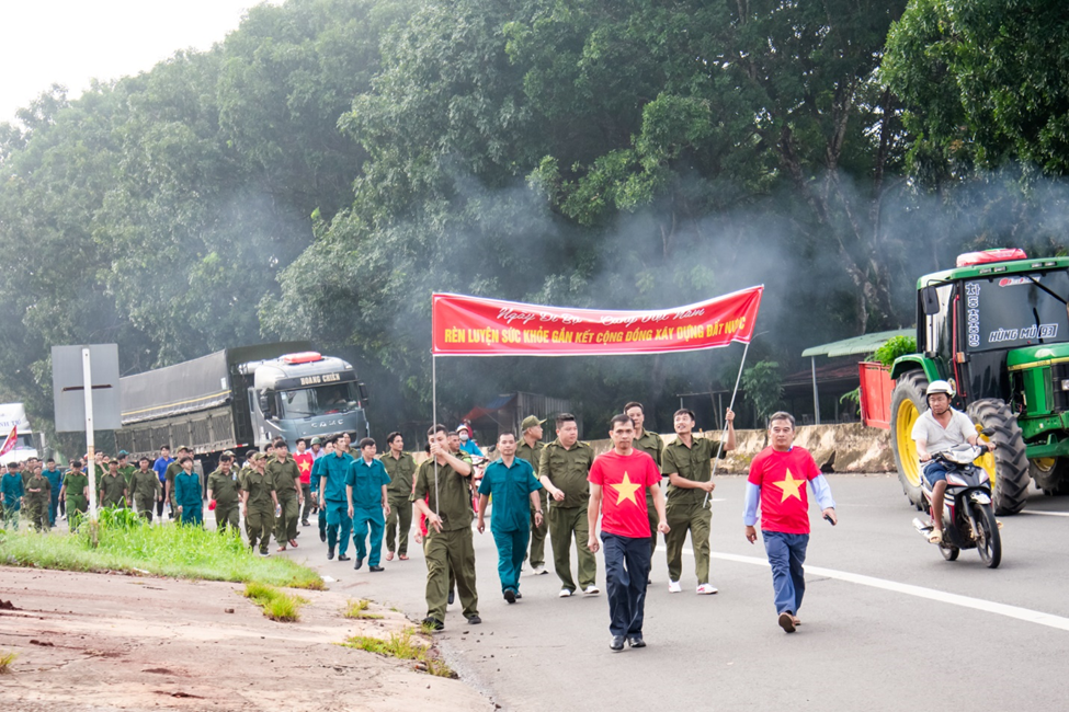 Tại điểm cầu phường An Lộc, chương trình được kết nối trực tiếp với điểm cầu trung tâm tại Hà Nội, cùng hòa chung không khí cả nước qua Lễ thượng cờ trang nghiêm tại Quảng trường Ba Đình, xem clip giới thiệu chương trình và lắng nghe phát động đi bộ của lãnh đạo Bộ Công an. Ngay sau hiệu lệnh, hơn 300 cán bộ, chiến sĩ, đoàn viên và người dân đã đồng loạt tham gia đi bộ trên lộ trình dài từ 2–3 km, tạo nên một không khí sôi nổi, đoàn kết và phấn khởi. Song song với hoạt động thể thao, Ban tổ chức còn lồng ghép các nội dung tuyên truyền, phổ biến pháp luật về phòng chống tội phạm, giữ gìn an ninh trật tự và phong trào Toàn dân bảo vệ an ninh Tổ quốc. Qua đó, góp phần nâng cao nhận thức của nhân dân, phát huy sức mạnh đoàn kết giữa lực lượng Công an nhân dân và cộng đồng dân cư.