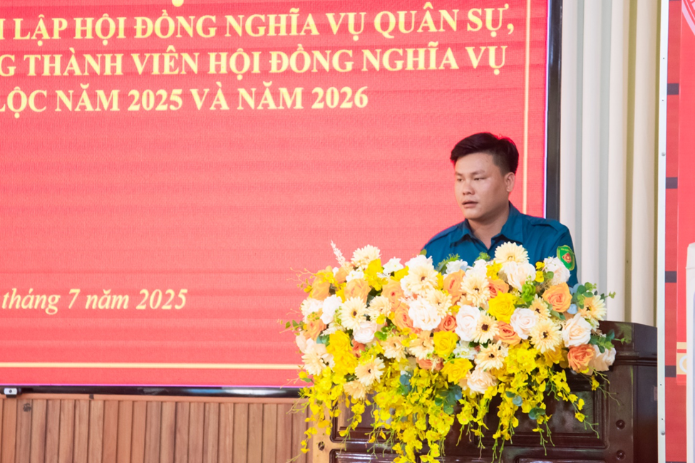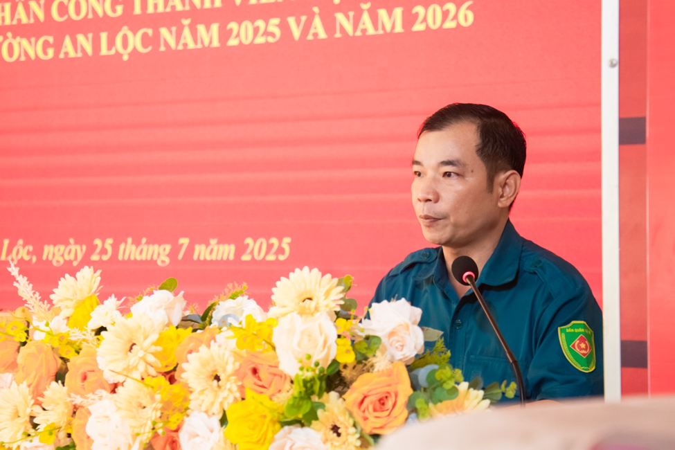 Ngày 25/7, Hội đồng Nghĩa vụ quân sự (HĐNVQS) phường An Lộc tổ chức Hội nghị thông qua Quyết định thành lập HĐNVQS, quy chế hoạt động và kế hoạch phân công nhiệm vụ các thành viên HĐNVQS phường An Lộc giai đoạn 2025–2026. Dự và chủ trì hội nghị có Phó Bí thư Đảng ủy, Chủ tịch UBND phường, Chủ tịch HĐNVQS – Phan Minh Hiển; cùng tham dự có Ủy viên Ban Thường vụ Đảng ủy, Phó Chủ tịch HĐND phường – Võ Khắc Hổ, Ban Chỉ huy Quân sự phường, lãnh đạo các phòng, ban chuyên môn của phường, các đồng chí bí thư chi bộ, trưởng khu phố và khu đội trưởng của 29 khu phố trên địa bàn.