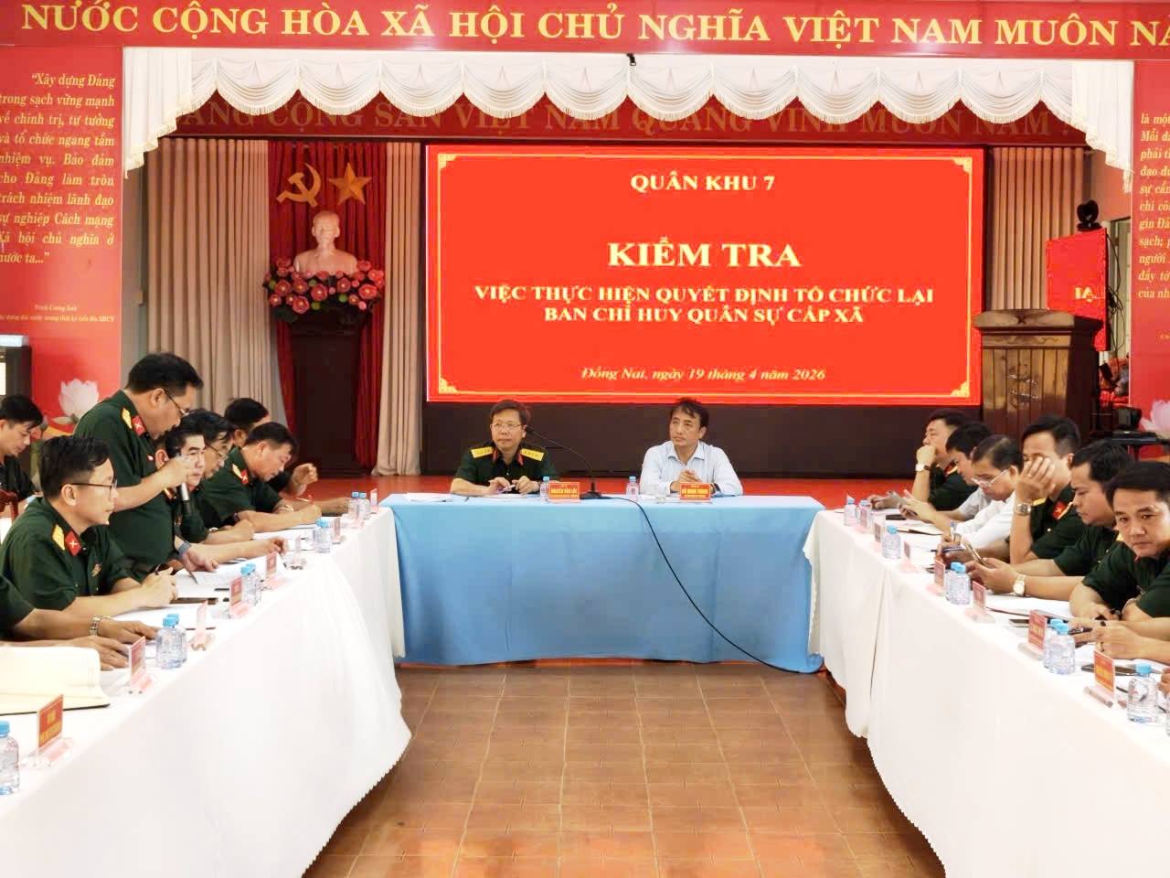 Sáng ngày 19/4/2026, Đoàn kiểm tra của Quân khu 7 về kiểm tra kết quả triển khai, thực hiện quyết định tổ chức lại Ban Chỉ huy Quân sự phường An Lộc.