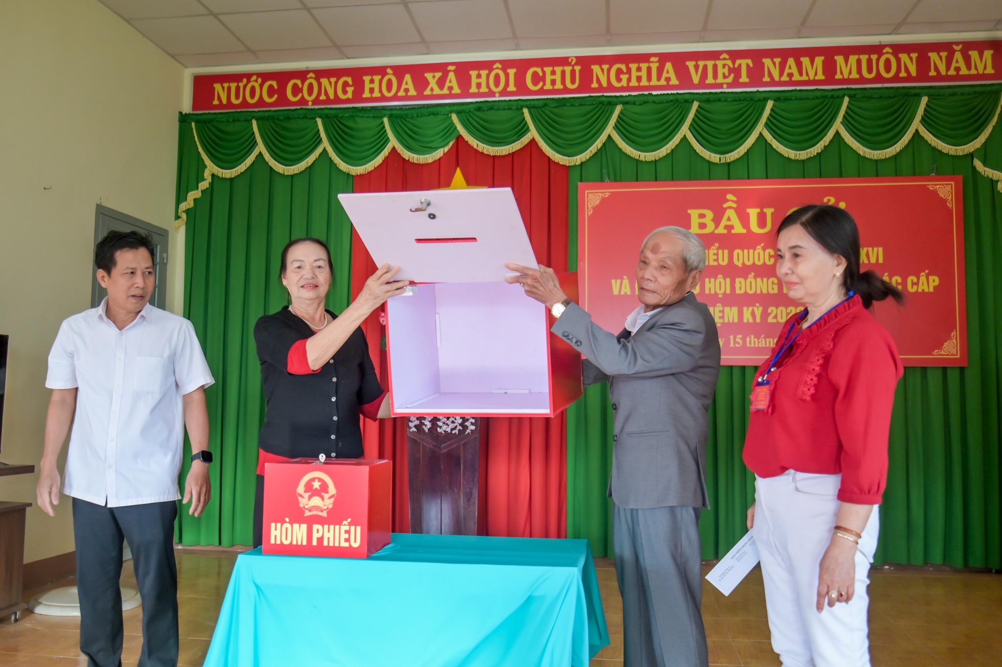 Ngay từ sáng sớm, các điểm bỏ phiếu được trang trí cờ hoa rực rỡ, công tác chuẩn bị được thực hiện chu đáo, đúng quy định. Đông đảo cử tri đã có mặt tham dự lễ khai mạc và thực hiện quyền, nghĩa vụ công dân của mình.