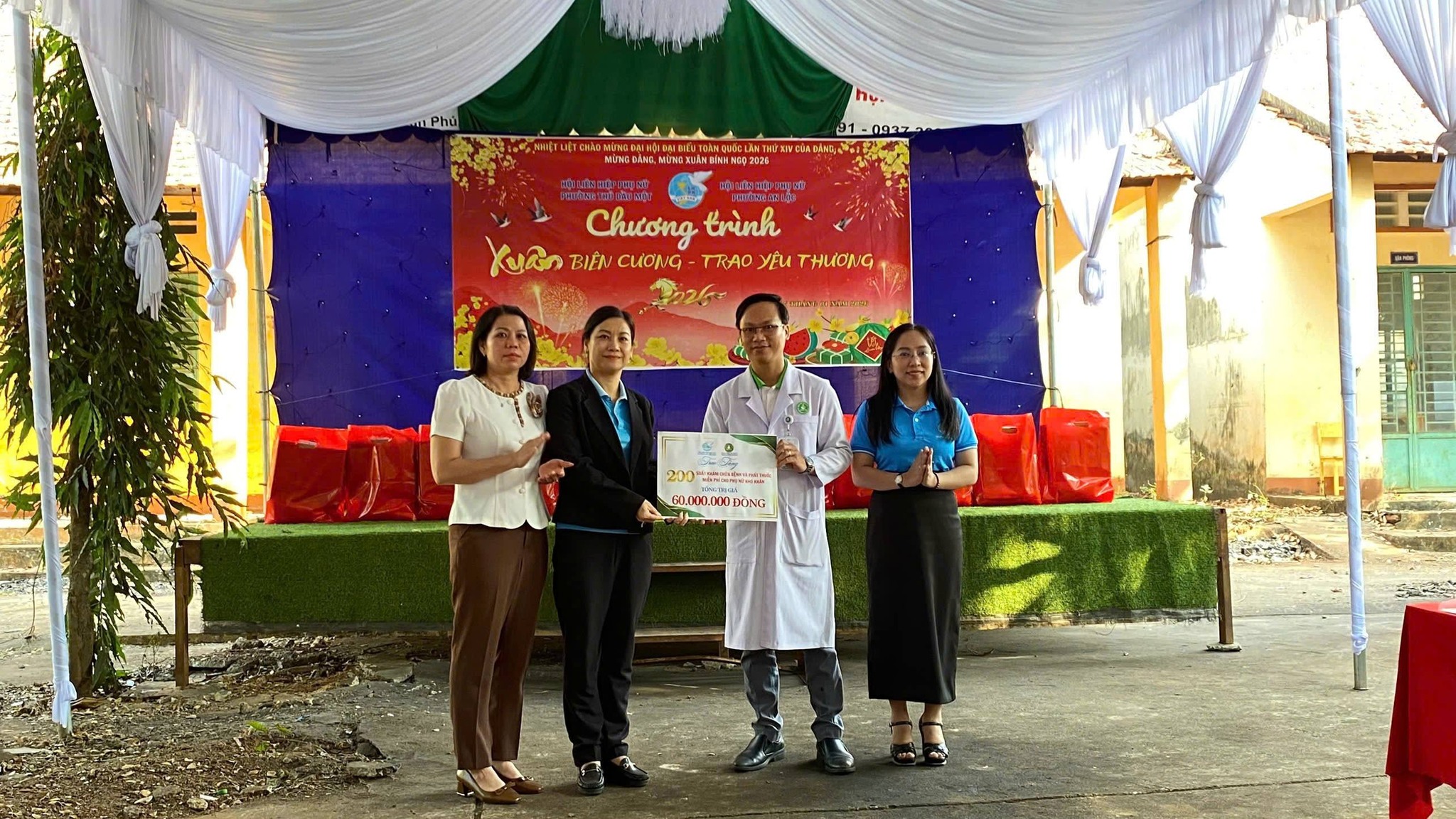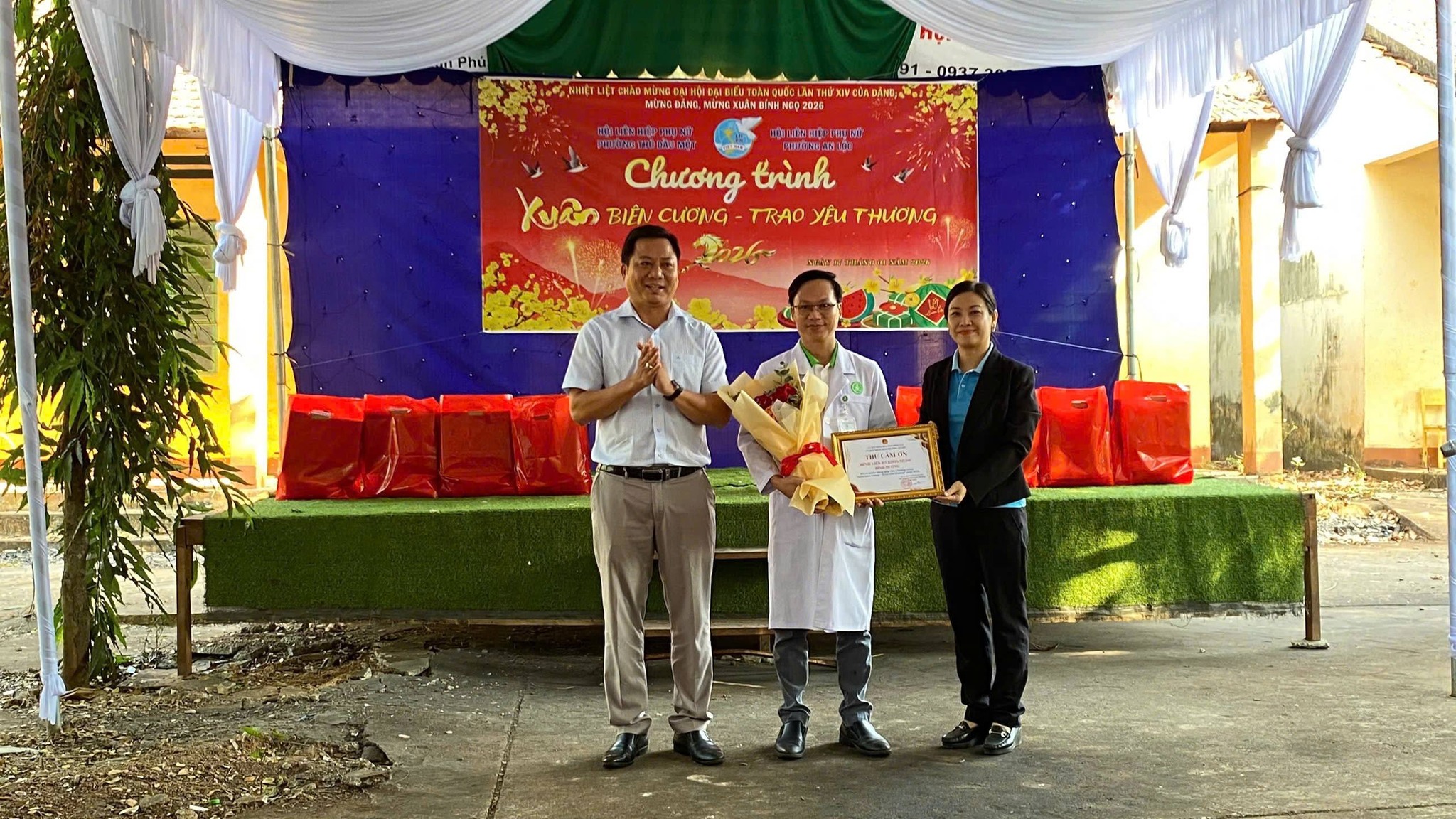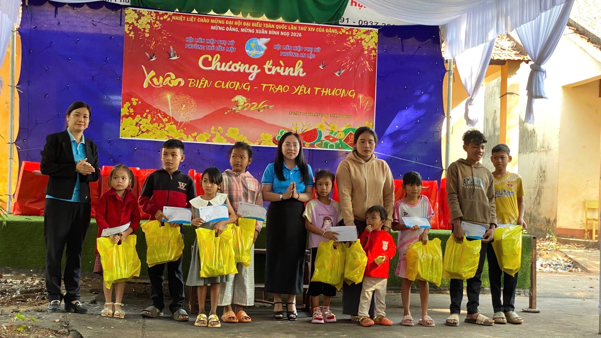 Trong không khí rộn ràng của những ngày giáp Tết, ngày 17/01, Hội LHPN phường An Lộc đã phối hợp cùng Hội LHPN phường Thủ Dầu Một (tp Hồ Chí Minh) tổ chức chương trình “Xuân Biên Cương – Trao Yêu Thương”. Đây là hoạt động ý nghĩa nhằm chăm lo đời sống, sức khỏe cho hội viên phụ nữ và trẻ em có hoàn cảnh khó khăn tại khu phố Sóc Giếng.