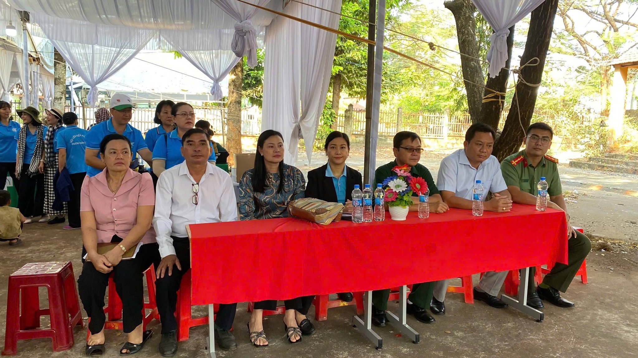 Về phía đơn vị phối hợp, có sự hiện diện của bà Lê Thị Thuý Hà - Phó Chủ tịch UBMTTQVN phường Thủ Dầu Một; bác sĩ Phạm Văn Quyết - Trưởng đoàn khám sức khỏe Bệnh viện Medic Bình Dương, cùng các mạnh thường quân và hơn 300 người dân, thiếu nhi địa phương.