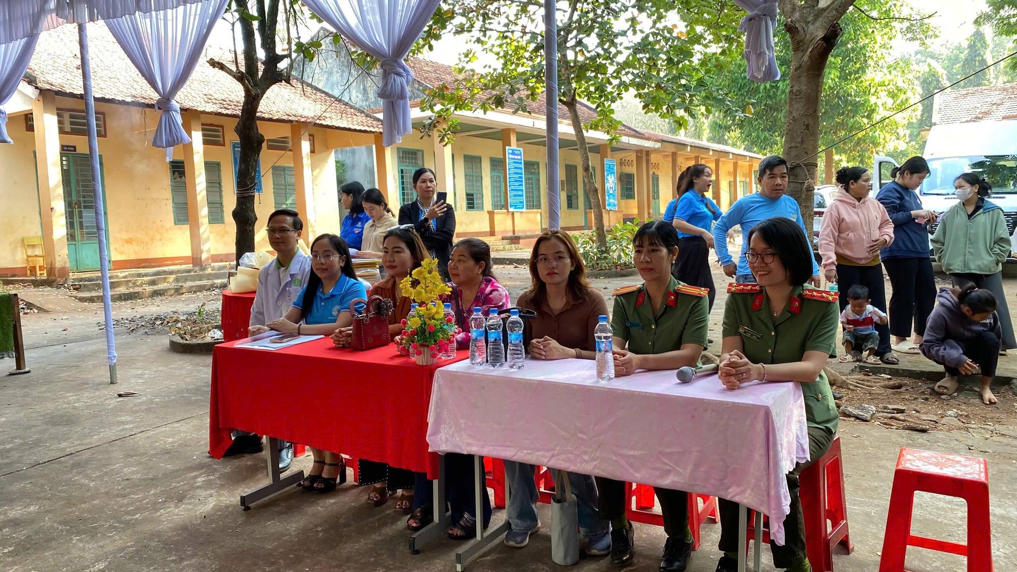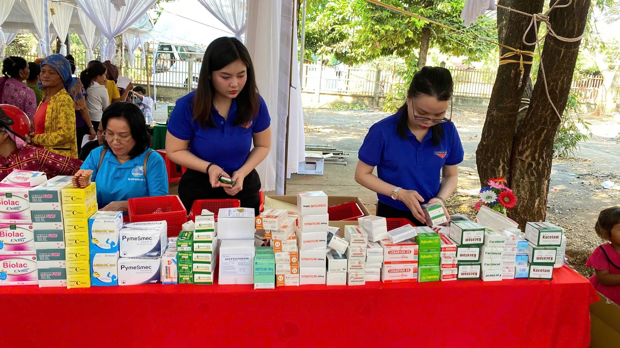 * Chăm sóc sức khỏe: Đoàn y bác sĩ từ Bệnh viện Medic Bình Dương đã tiến hành khám bệnh, tư vấn sức khỏe và phát thuốc miễn phí cho người dân và trẻ em.