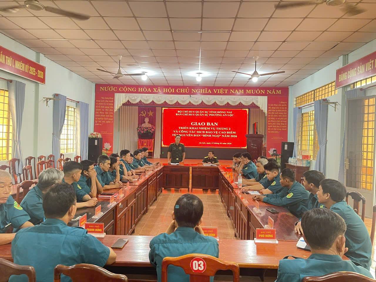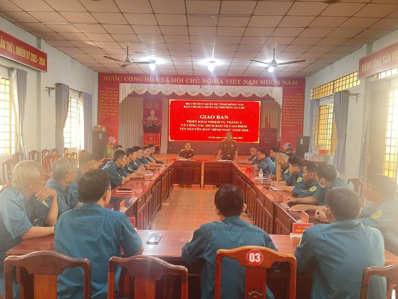 Ban chỉ huy Quân sự phường An Lộc tổ chức giao ban và triển khai công tác SSCĐ bảo vệ an toàn cao điểm tết Nguyên đán Bính Ngọ năm 2026