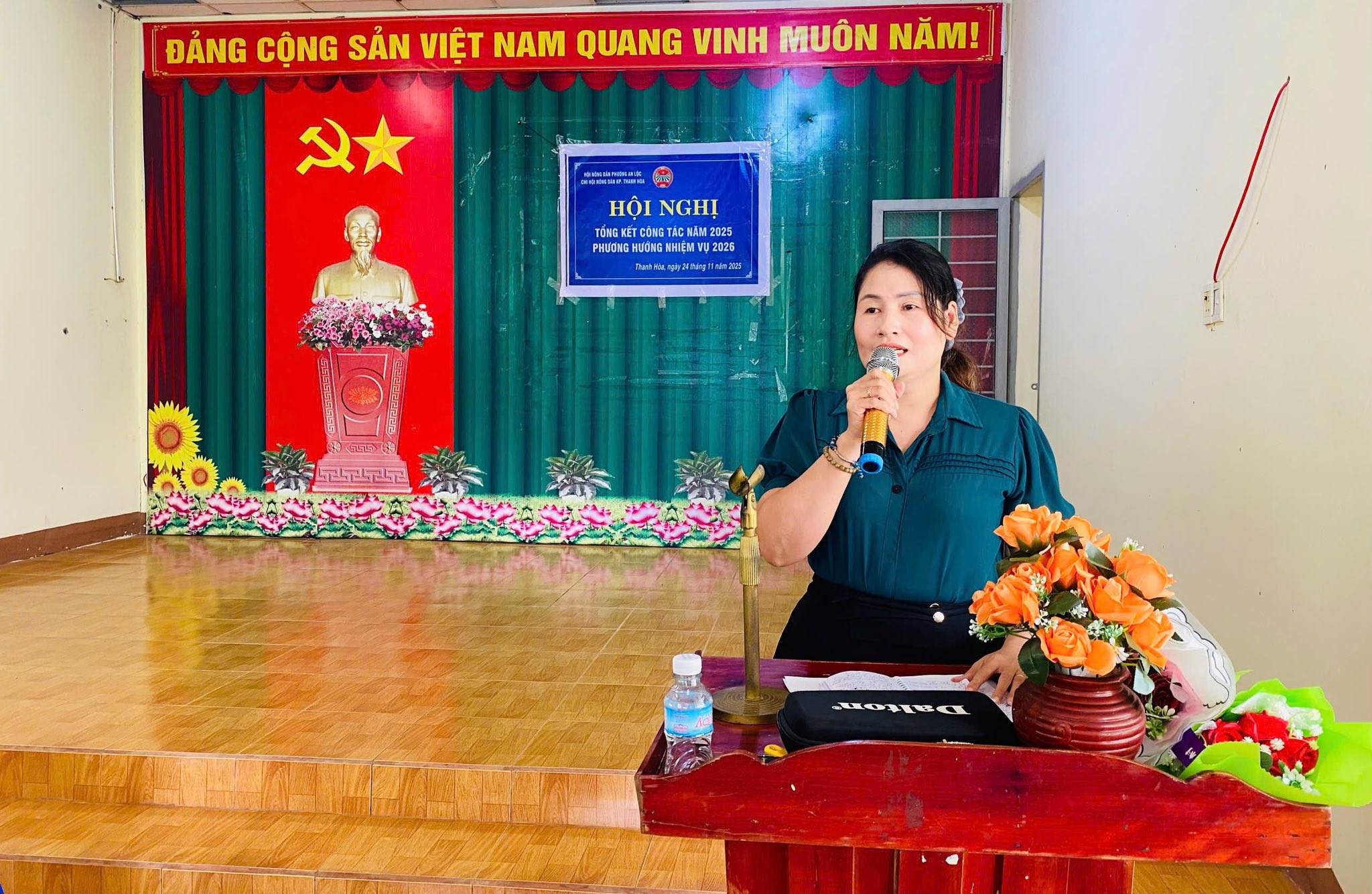 Tại Hội nghị, Chi hội báo cáo tình hình nông nghiệp, nông dân nông thôn ,đánh giá về kết quả công tác và phong trào nông dân, công tác vận động nông dân phát triển nông nghiệp, xây dựng nông thôn mới, đô thị văn minh và giảm nghèo bền vững, công tác tham gia xây dựng Đảng, chính quyền trong sạch vững mạnh phát huy sức mạnh của khối đại đoàn kết toàn dân tộc trong phát triển nông nghiệp, xây dựng nông thôn mới đạt 100%. Hội viên chi hội khu phố Thanh Hoà tích cực đóng góp ý hoàn thiện phương hướng hoạt động năm 2026, chia sẽ kinh nghiệm trong lao động sản xuất.