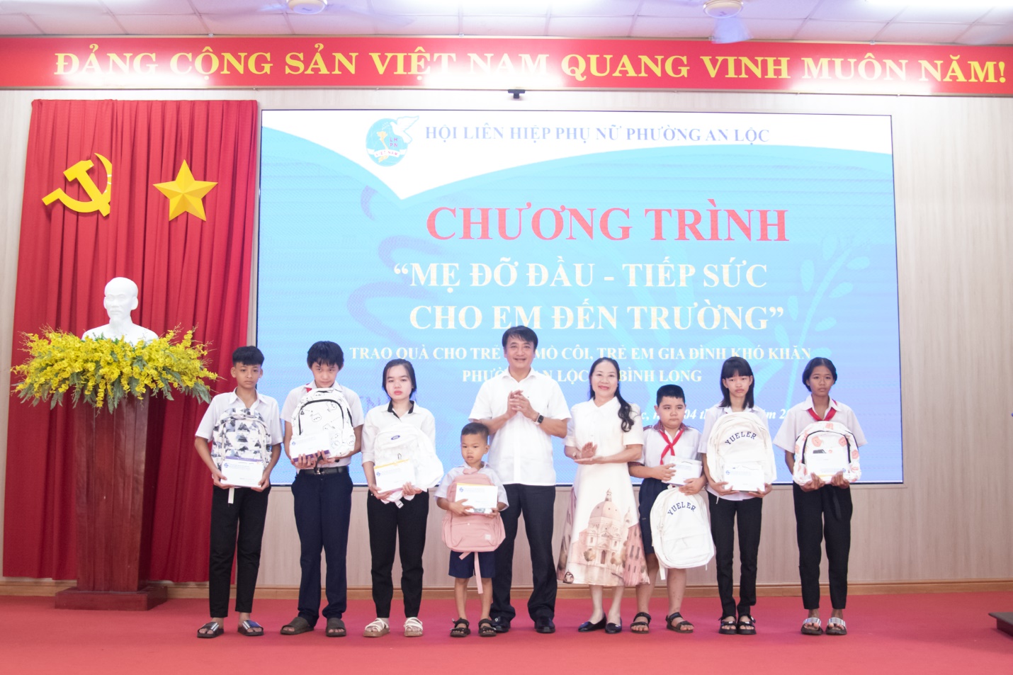 Phát biểu tại chương trình, Đồng chí Đỗ Minh Trung - Bí thư Đảng ủy, Chủ tịch HĐND phường An Lộc ghi nhận và đánh giá cao ý nghĩa nhân văn sâu sắc của hoạt động “Mẹ đỡ đầu – tiếp sức cho em đến trường”. Đồng chí nhấn mạnh, sự đồng hành của các mạnh thường quân, tổ chức, cá nhân không chỉ mang đến nguồn hỗ trợ thiết thực mà còn tiếp thêm niềm tin, động lực cho các em nhỏ vượt qua khó khăn, vươn lên trong học tập và trong cuộc sống, đồng thời hy vọng chương trình sẽ tiếp tục được duy trì, nhân rộng để ngày càng có nhiều trẻ em được sẻ chia, chắp cánh ước mơ đến trường.