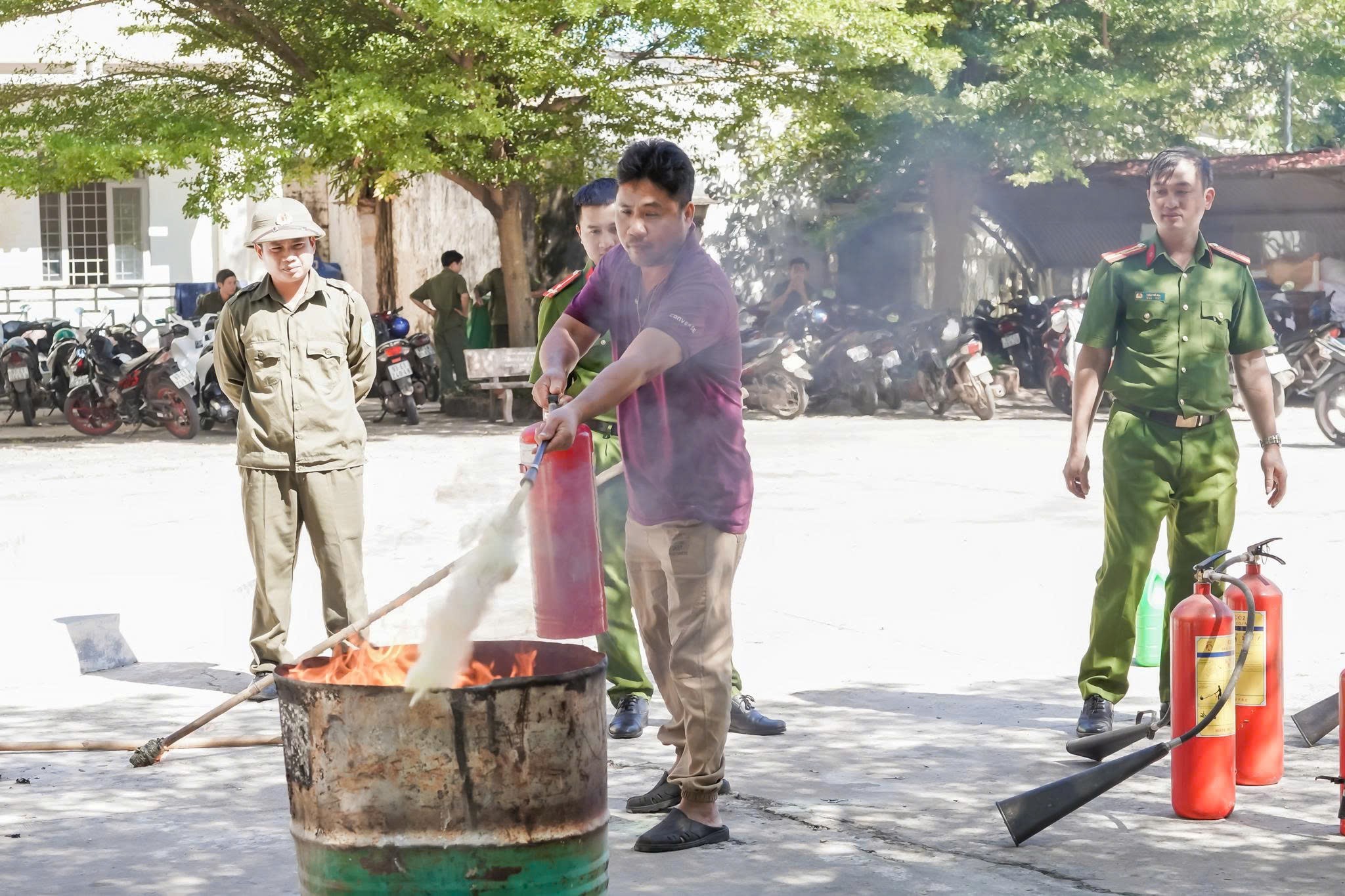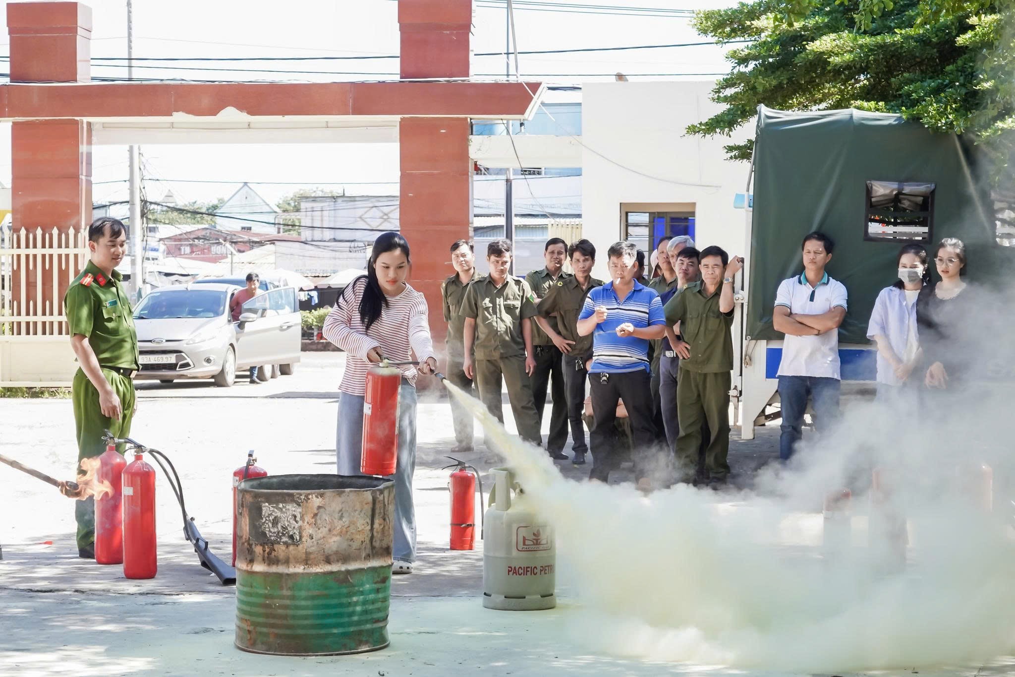 Phần thực hành thu hút sự tham gia sôi nổi của các học viên. Các tình huống giả định về cháy tại quầy hàng, sự cố rò rỉ khí gas, cháy thiết bị điện được đưa ra để người tham dự trực tiếp thao tác cách tiếp cận đám cháy nhỏ, kỹ thuật sử dụng bình chữa cháy cầm tay, quy trình xử lý khi phát hiện gas rò rỉ, cách di chuyển hàng hóa để tạo lối thoát hiểm… Qua đó, các tiểu thương và hộ kinh doanh được rèn luyện phản xạ xử lý nhanh, đúng kỹ thuật và an toàn.