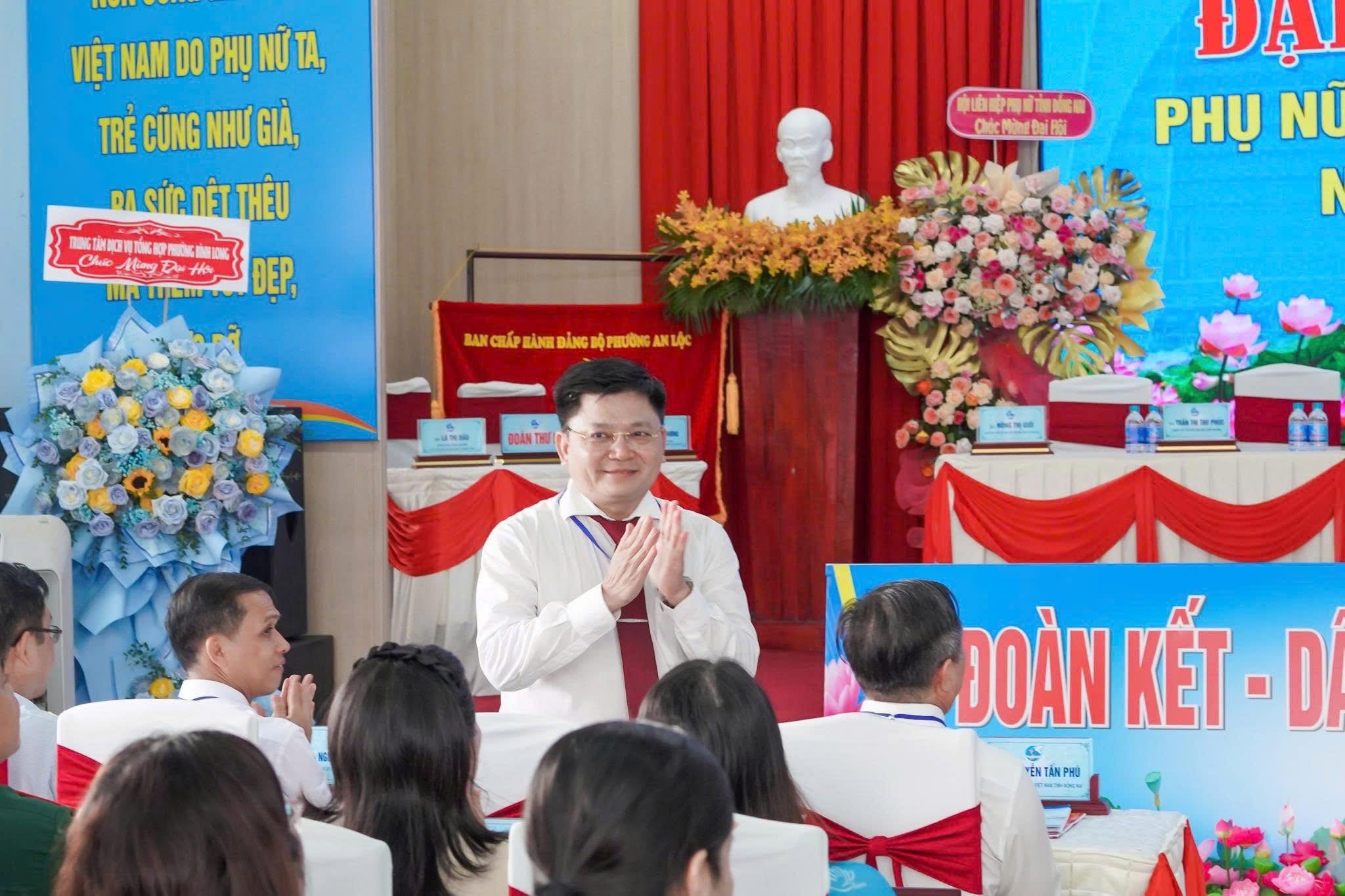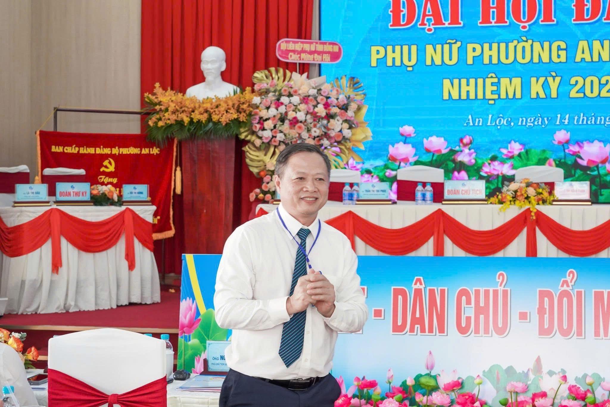 Phát biểu chỉ đạo tại Đại hội, đồng chí Nguyễn Tấn Phú - Phó Chủ tịch Ủy ban MTTQ Việt Nam tỉnh Đồng Nai biểu dương những kết quả nổi bật mà Hội Liên hiệp Phụ nữ phường An Lộc đạt được trong nhiệm kỳ qua, định hướng một số nhiệm vụ trọng tâm trong thời gian tới về hỗ trợ phụ nữ khởi nghiệp, tham gia chuyển đổi số, xây dựng gia đình no ấm, tiến bộ, hạnh phúc, văn minh.