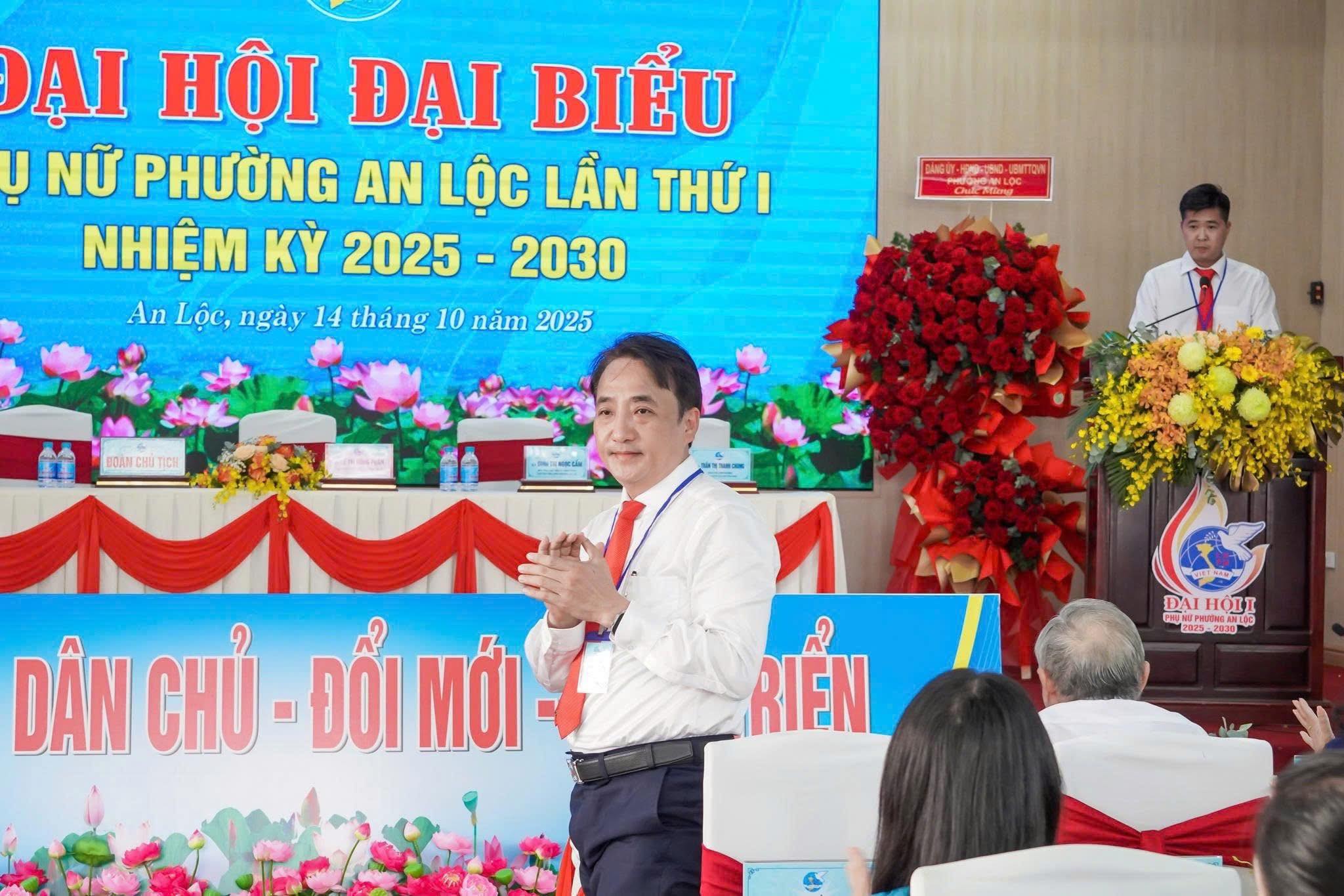 Đồng chí Đỗ Minh Trung - Bí thư Đảng ủy, Chủ tịch HĐND phường An Lộc đề nghị Đại hội cần cụ thể hóa các nội dung vào chương trình hành động của nhiệm kỳ mới; chú trọng đổi mới phương thức hoạt động, tăng cường ứng dụng công nghệ thông tin, chuyển đổi số trong công tác Hội; phát huy vai trò của phụ nữ trong xây dựng đô thị văn minh, góp phần thực hiện thắng lợi các mục tiêu phát triển kinh tế - xã hội của phường.