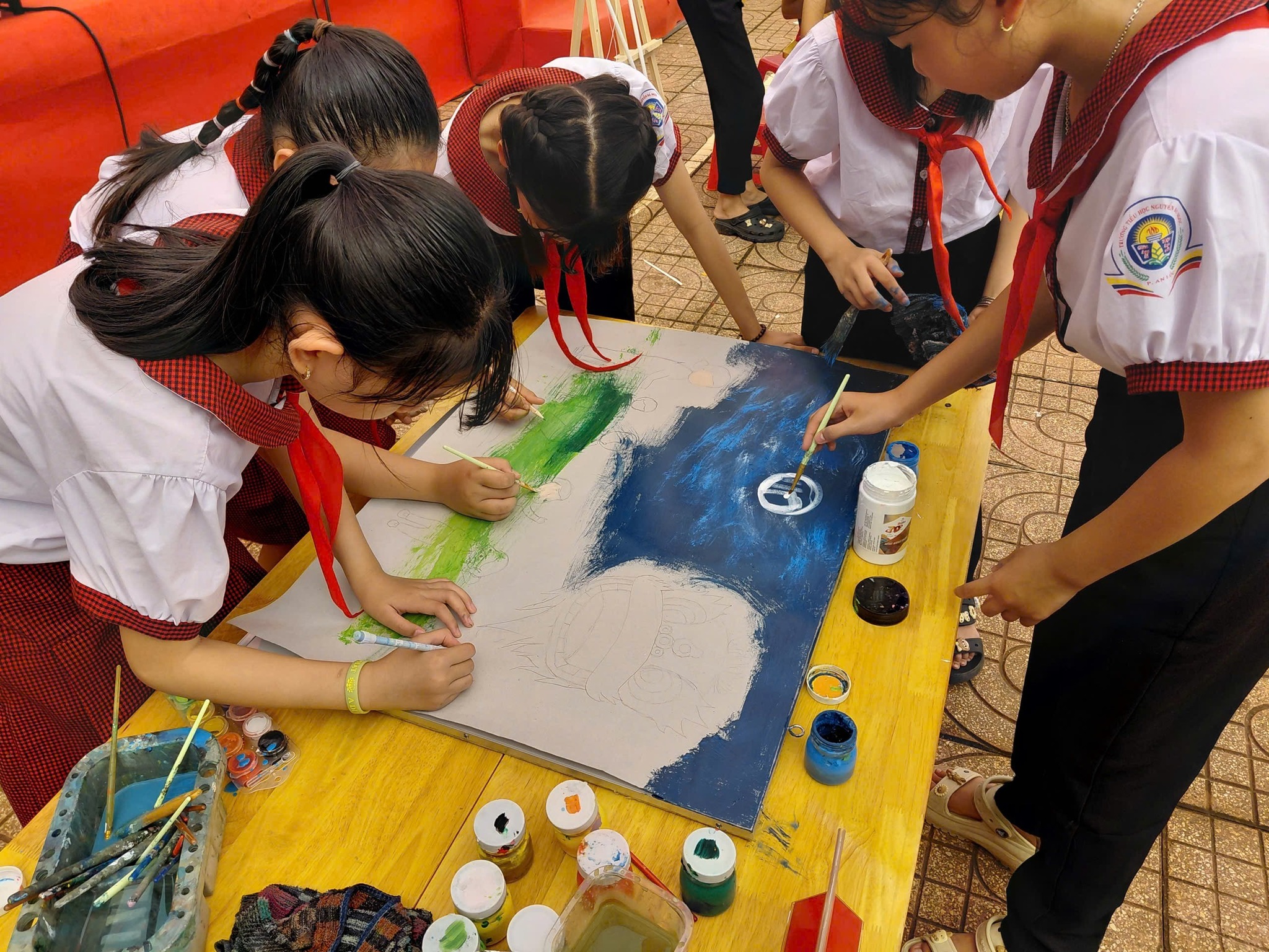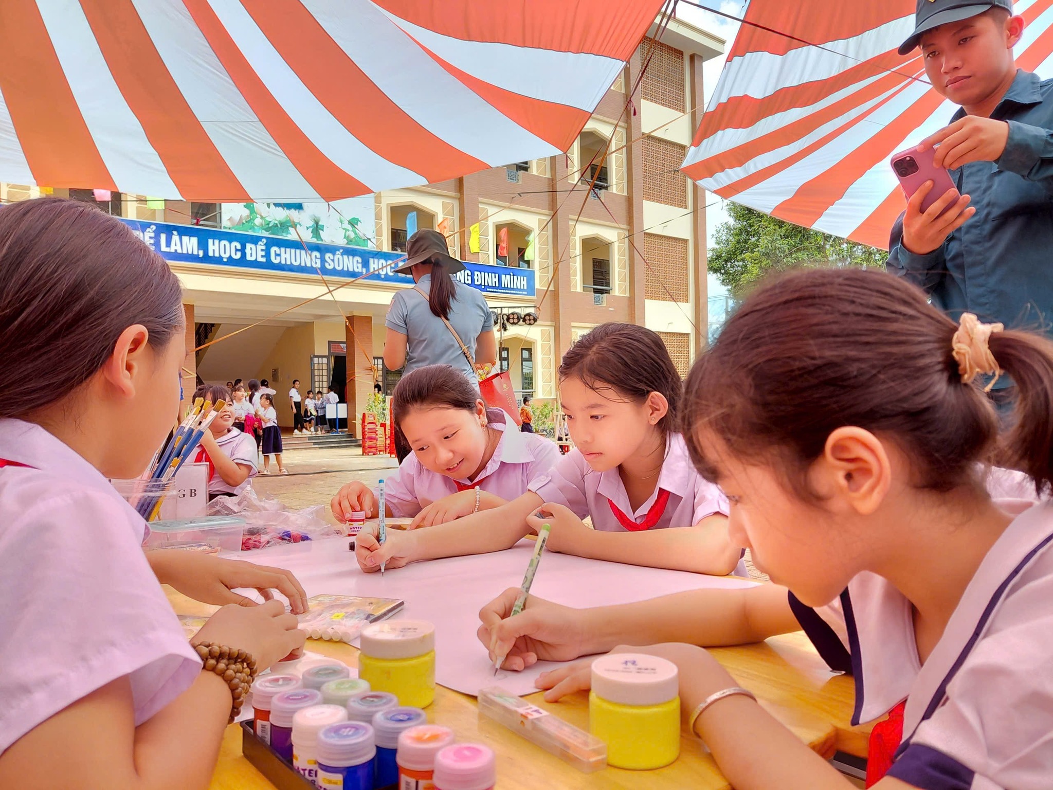 Hội thi đang diễn ra trong không khí vui tươi, sôi nổi và tràn đầy sắc màu tuổi thơ.