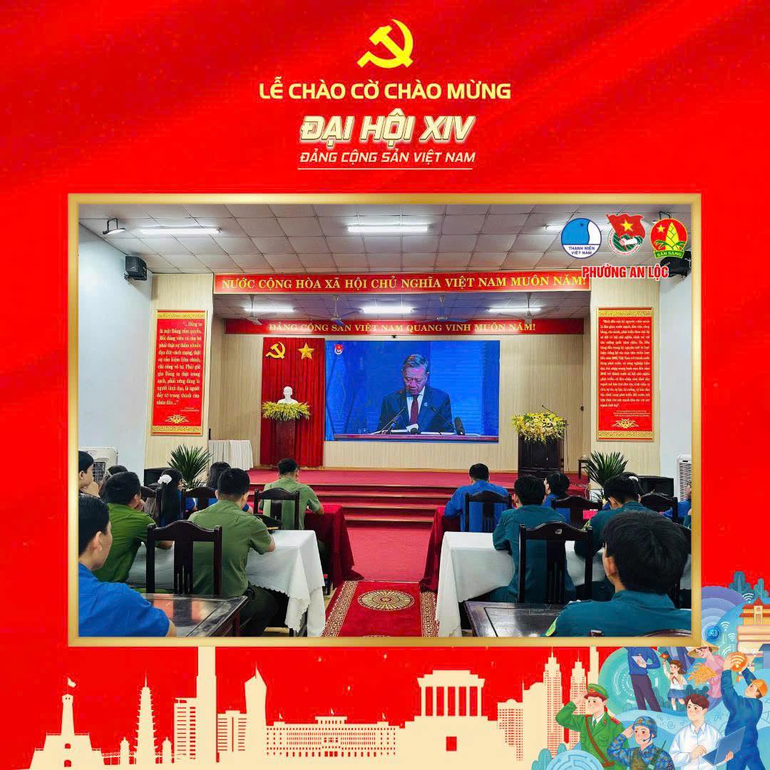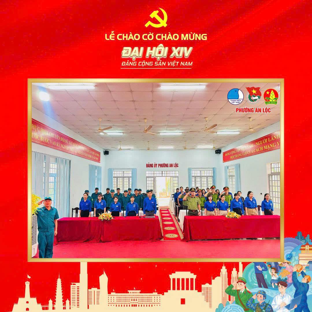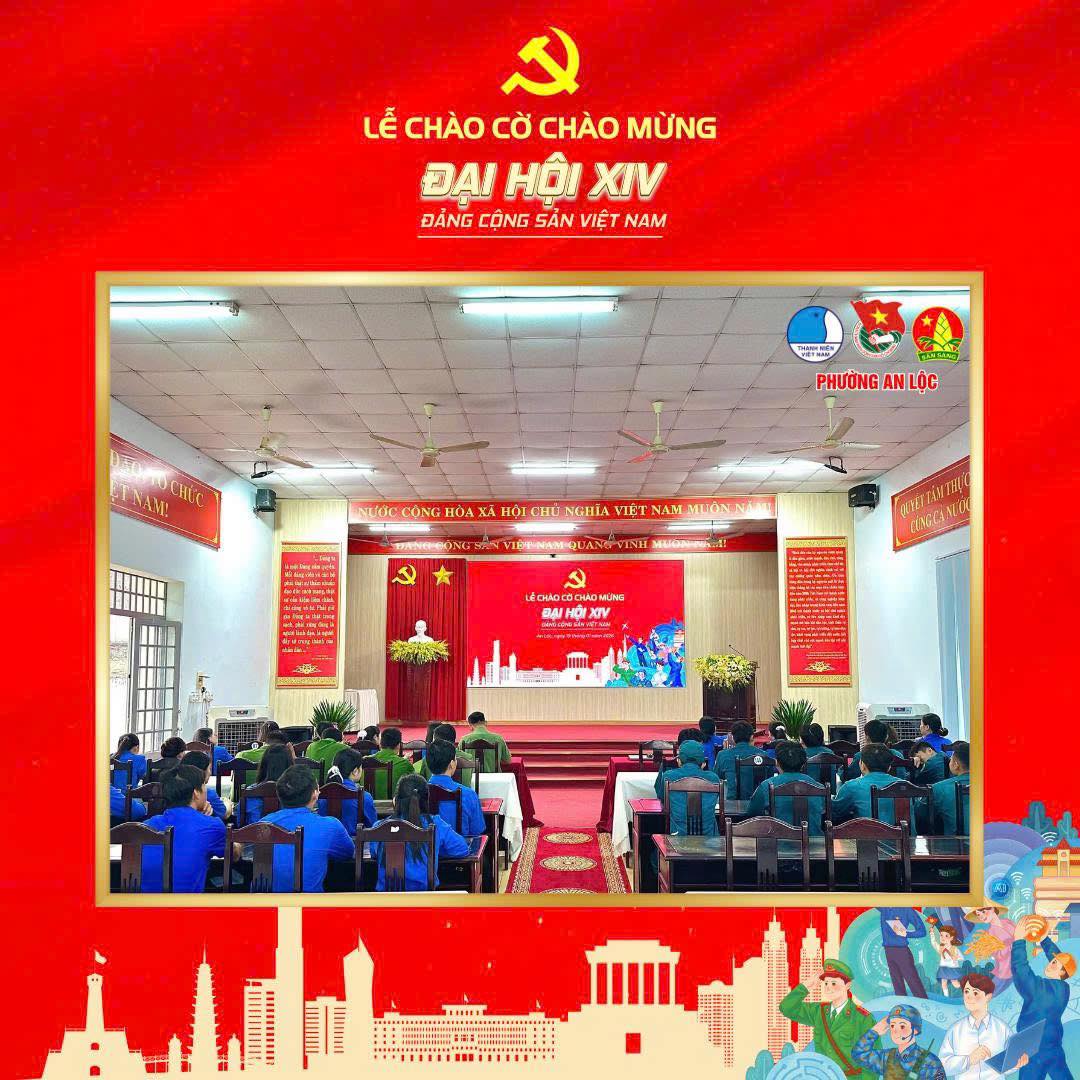 Hòa trong không khí phấn khởi, tự hào của cán bộ, đảng viên và Nhân dân cả nước hướng về Đại hội đại biểu toàn quốc lần thứ XIV của Đảng, sáng ngày 19/01/2026, Đoàn TNCS Hồ Chí Minh phường An Lộc đã long trọng tổ chức Lễ Chào cờ chào mừng Đại hội XIV của Đảng tại trụ sở làm việc, với sự tham gia của đông đảo cán bộ Đoàn, đoàn viên, thanh niên trên địa bàn phường.
