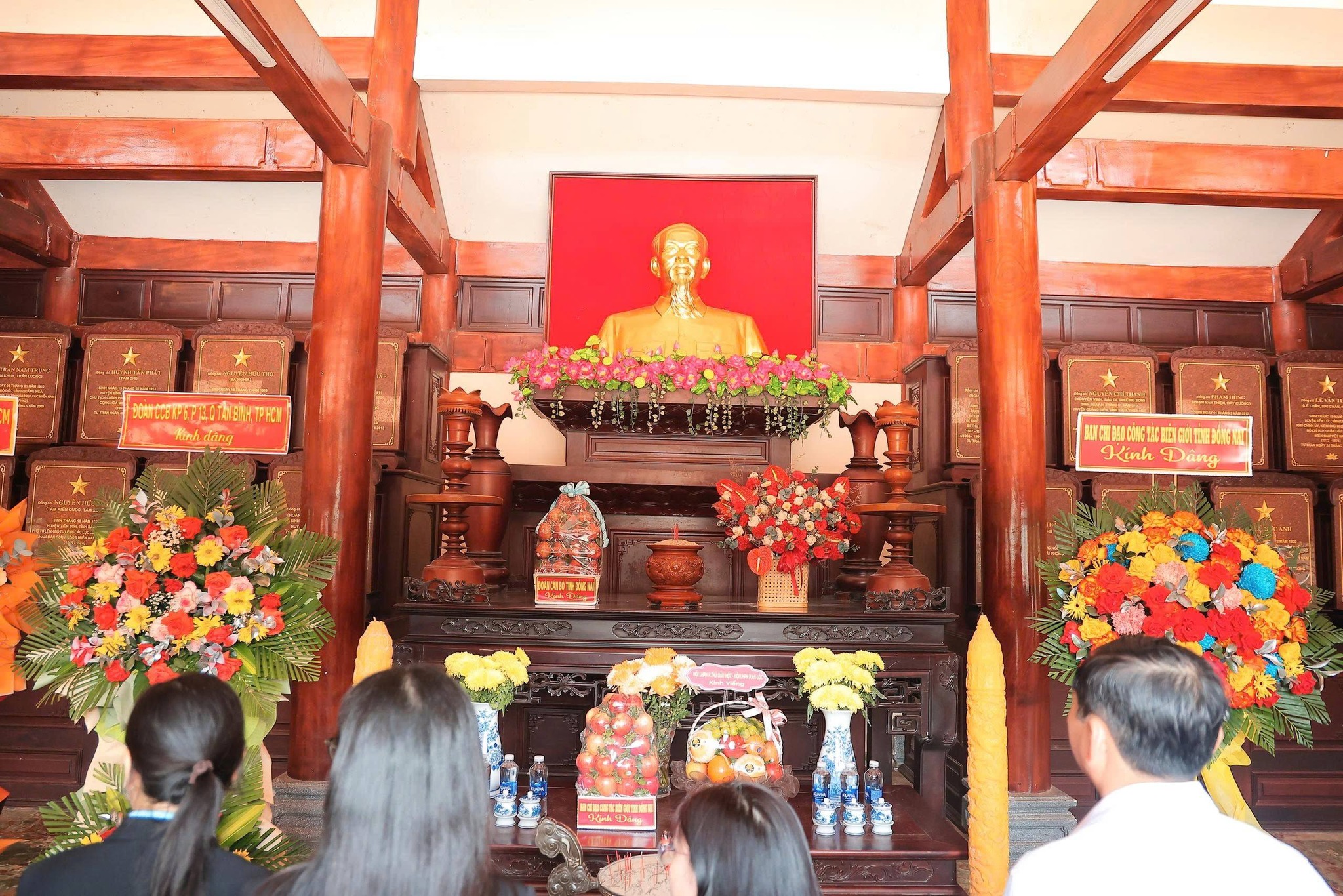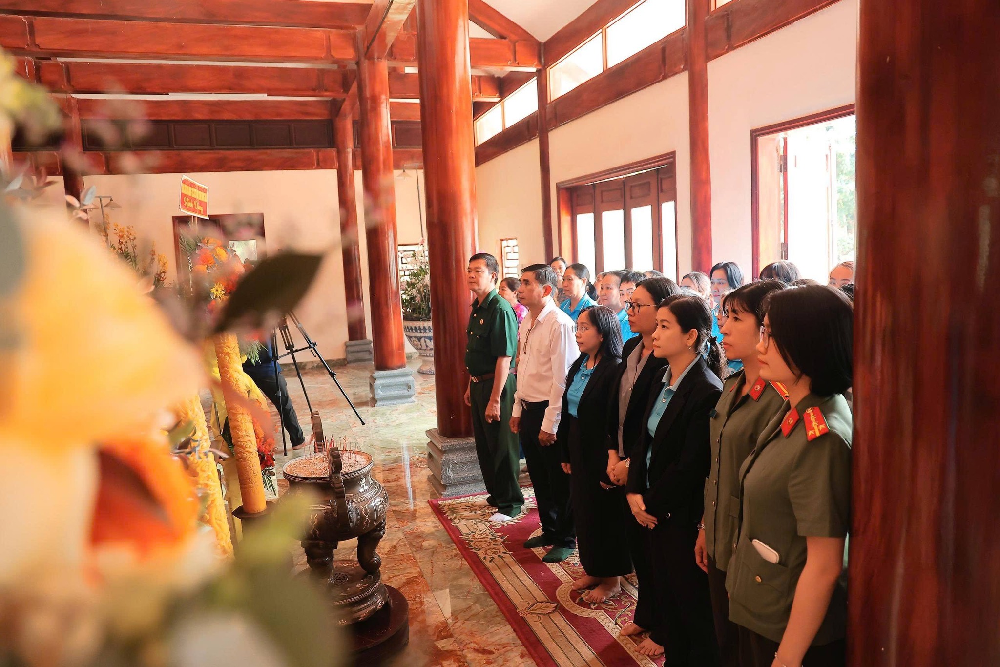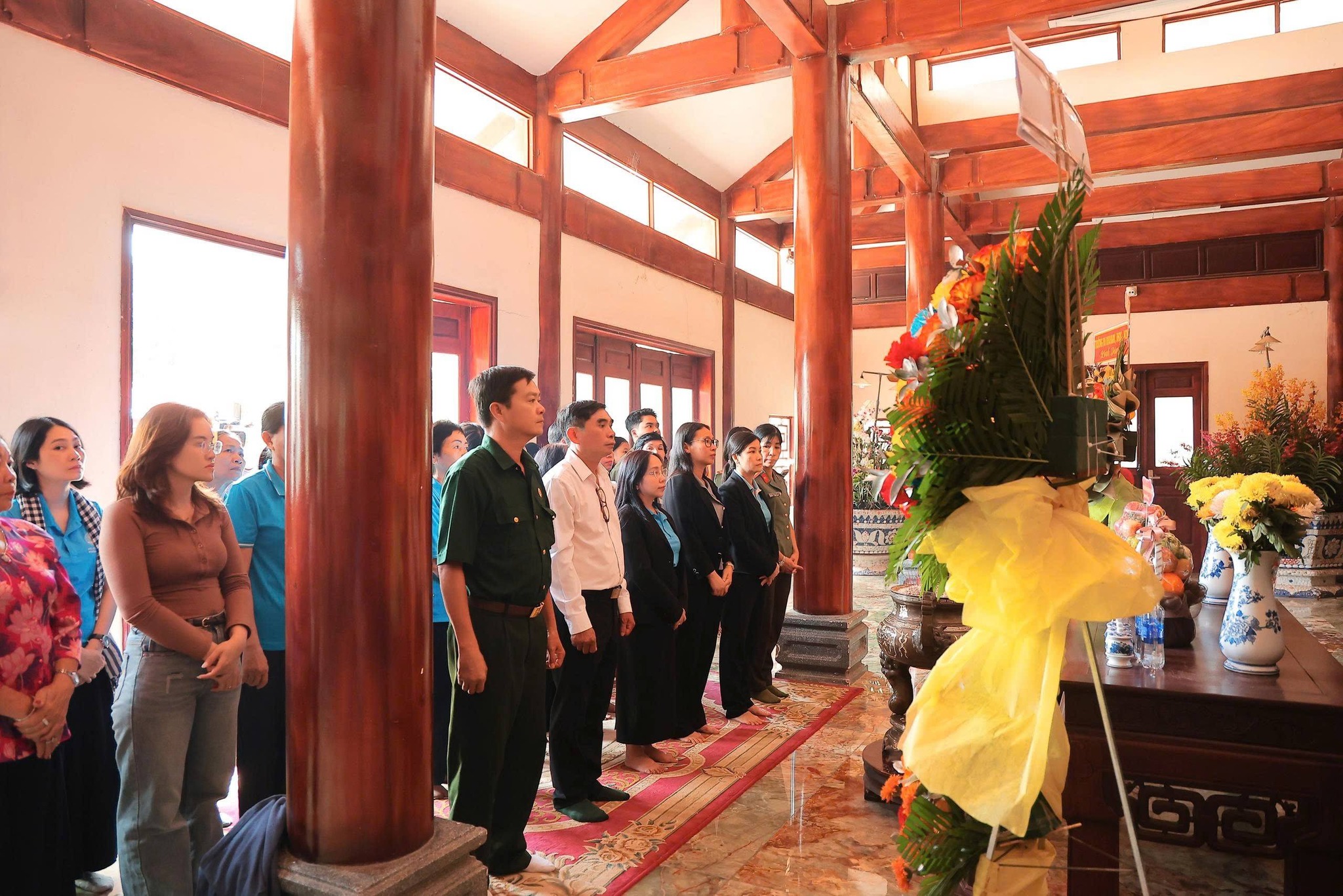 Trong không khí trang nghiêm tại vùng đất lịch sử, đoàn đã đến dâng hoa, dâng hương tại Đền thờ chính để bày tỏ lòng thành kính và tri ân sâu sắc đối với các anh hùng liệt sĩ, các bậc tiền bối cách mạng đã hy sinh vì độc lập, tự do của Tổ quốc.