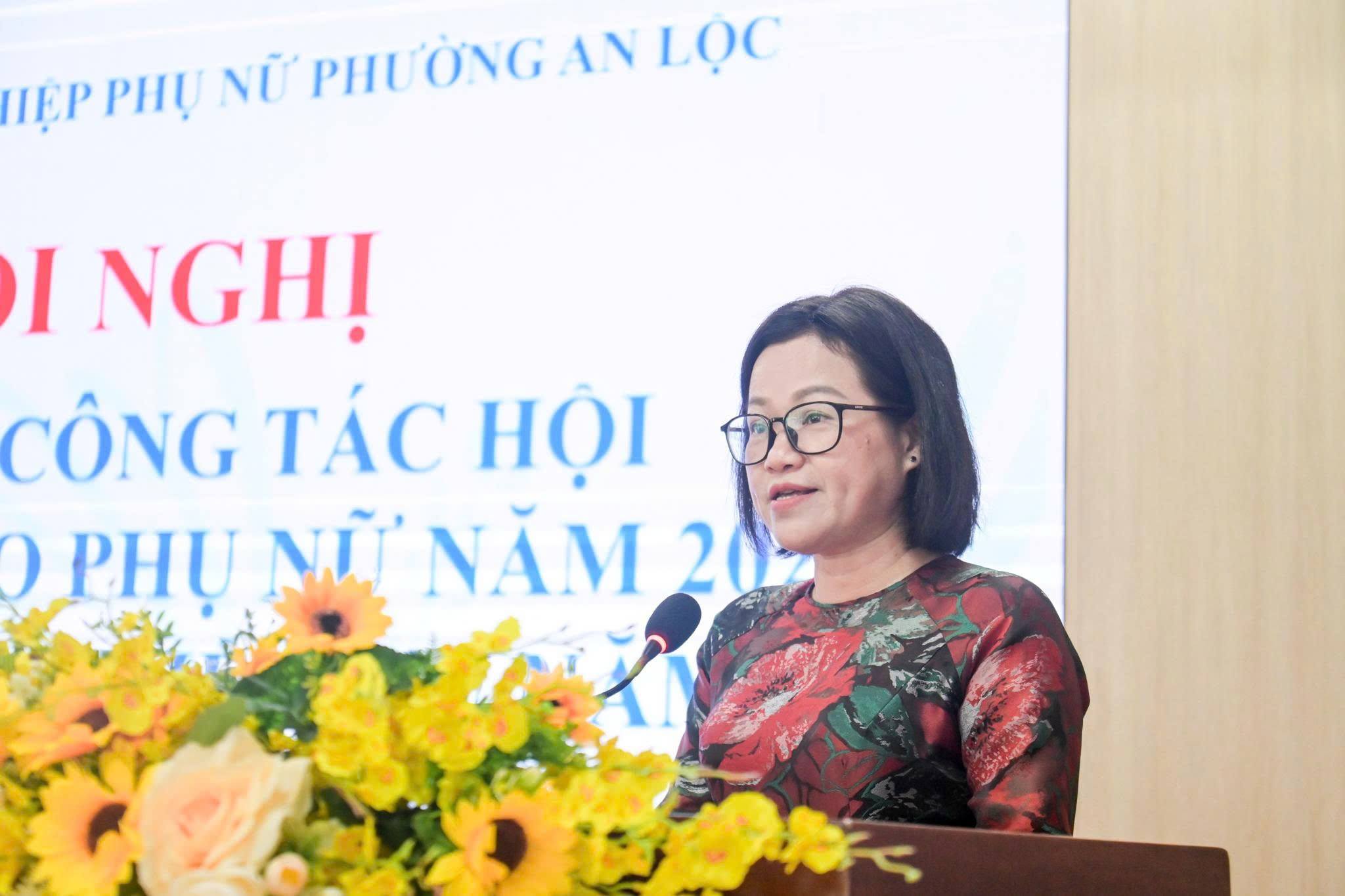 Phát biểu tại hội nghị, đồng chí Bùi Thị Hạnh - Phó Chủ tịch Hội LHPN tỉnh Đồng Nai, Trưởng ban Công tác phụ nữ ghi nhận và biểu dương những kết quả mà Hội LHPN phường An Lộc đã đạt được trong thời gian qua; đề nghị Hội tiếp tục đổi mới nội dung, phương thức hoạt động, nâng cao chất lượng phong trào phụ nữ ở cơ sở, chú trọng các hoạt động hỗ trợ phụ nữ khởi nghiệp, khởi sự kinh doanh, chăm lo đời sống vật chất, tinh thần cho hội viên, phụ nữ.