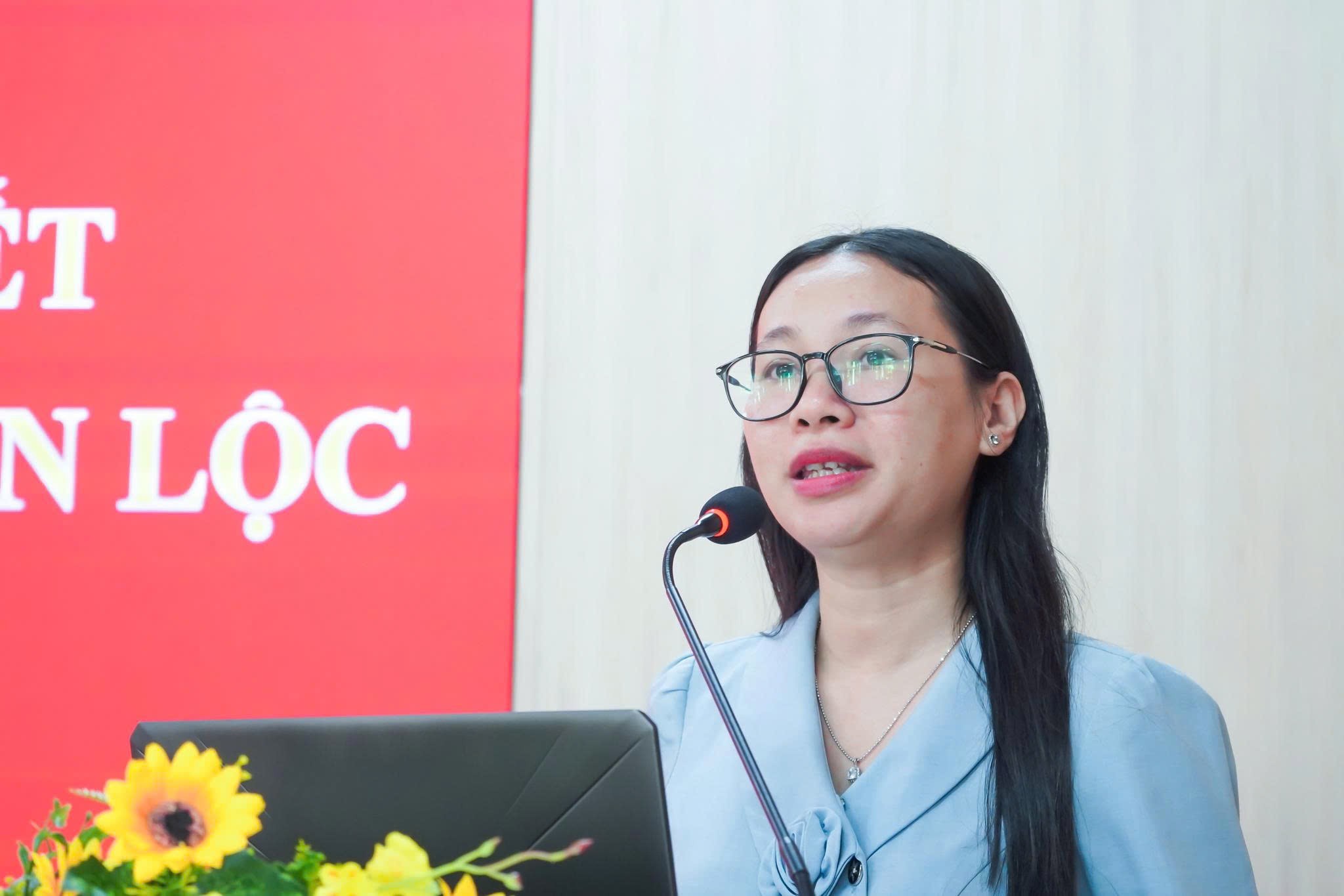 Tại hội nghị, đồng chí Lê Thị Hồng Phấn - Phó Bí thư Thường trực Đảng ủy phường phát biểu quán triệt một số nội dung quan trọng về ý nghĩa, mục đích và yêu cầu của việc học tập, triển khai thực hiện Nghị quyết Đại hội Đảng bộ phường nhiệm kỳ 2025 - 2030, đồng thời đề nghị các chi bộ, đảng viên nghiêm túc tiếp thu, nghiên cứu và vận dụng phù hợp vào thực tiễn công tác tại từng lĩnh vực, đơn vị.