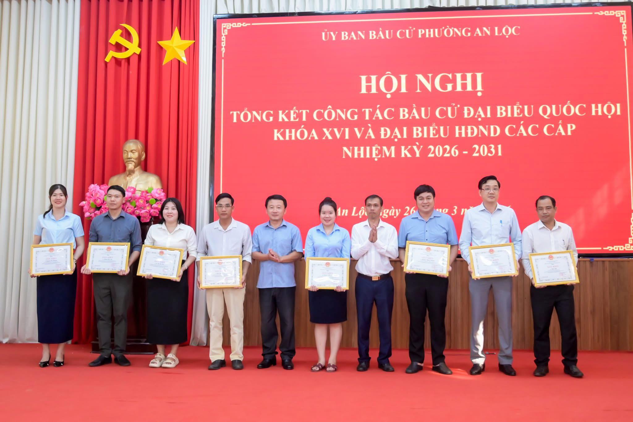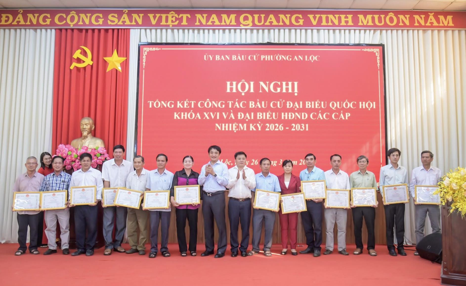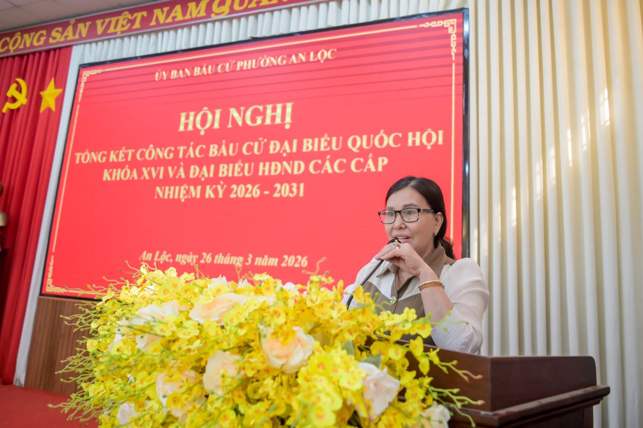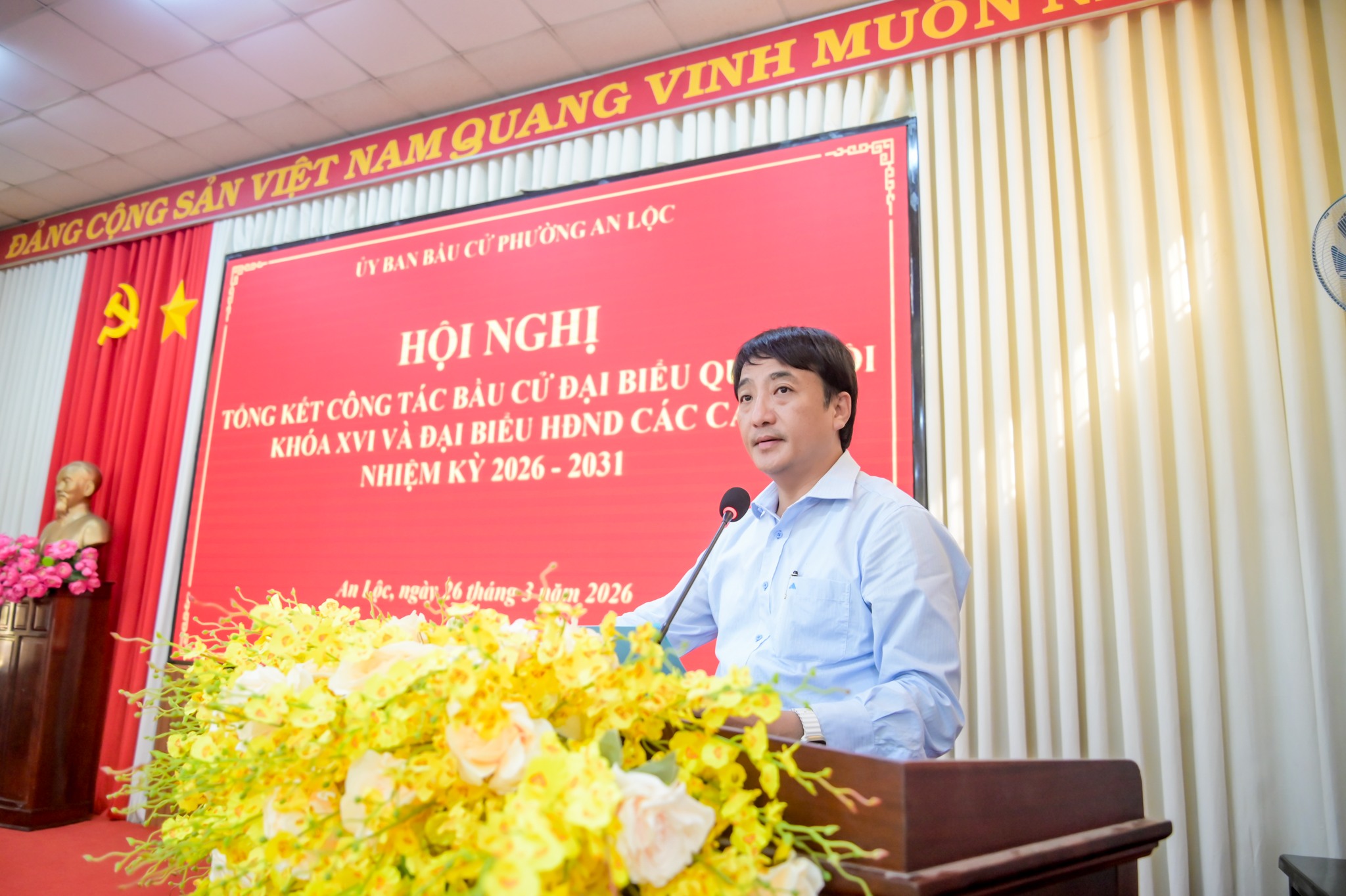 Ngày 26/3, Ủy ban bầu cử phường An Lộc tổ chức Hội nghị tổng kết công tác bầu cử đại biểu Quốc hội khóa XVI và đại biểu HĐND các cấp nhiệm kỳ 2026 - 2031. Tham dự hội nghị có đồng chí Đỗ Minh Trung - Bí thư Đảng ủy, Chủ tịch HĐND phường, Chủ tịch Ủy ban bầu cử phường; đồng chí Trần Thanh Long - Phó Bí thư Đảng ủy, Chủ tịch UBND phường cùng các đồng chí Ủy viên Ban Thường vụ Đảng ủy, thành viên Ủy ban bầu cử phường, bí thư chi bộ, trưởng các khu phố.