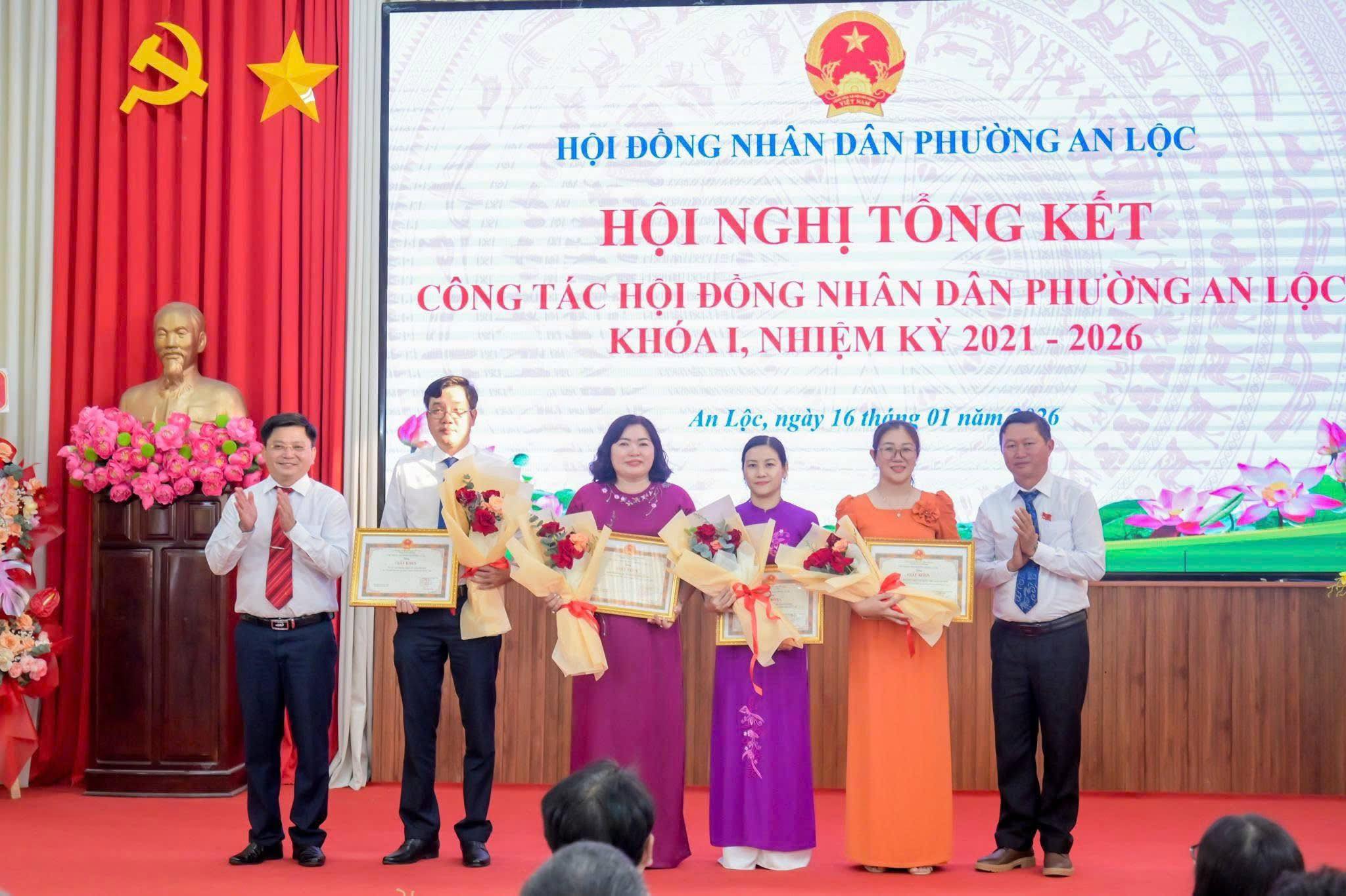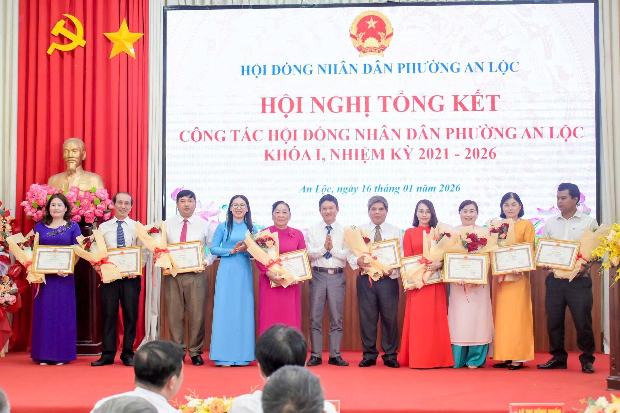Dịp này, HĐND phường An Lộc đã khen thưởng 5 tập thể và 20 cá nhân có thành tích xuất sắc trong hoạt động HĐND phường nhiệm kỳ 2021 -2026, ghi nhận sự đóng góp tích cực của các tập thể, cá nhân vào kết quả chung của HĐND phường.
