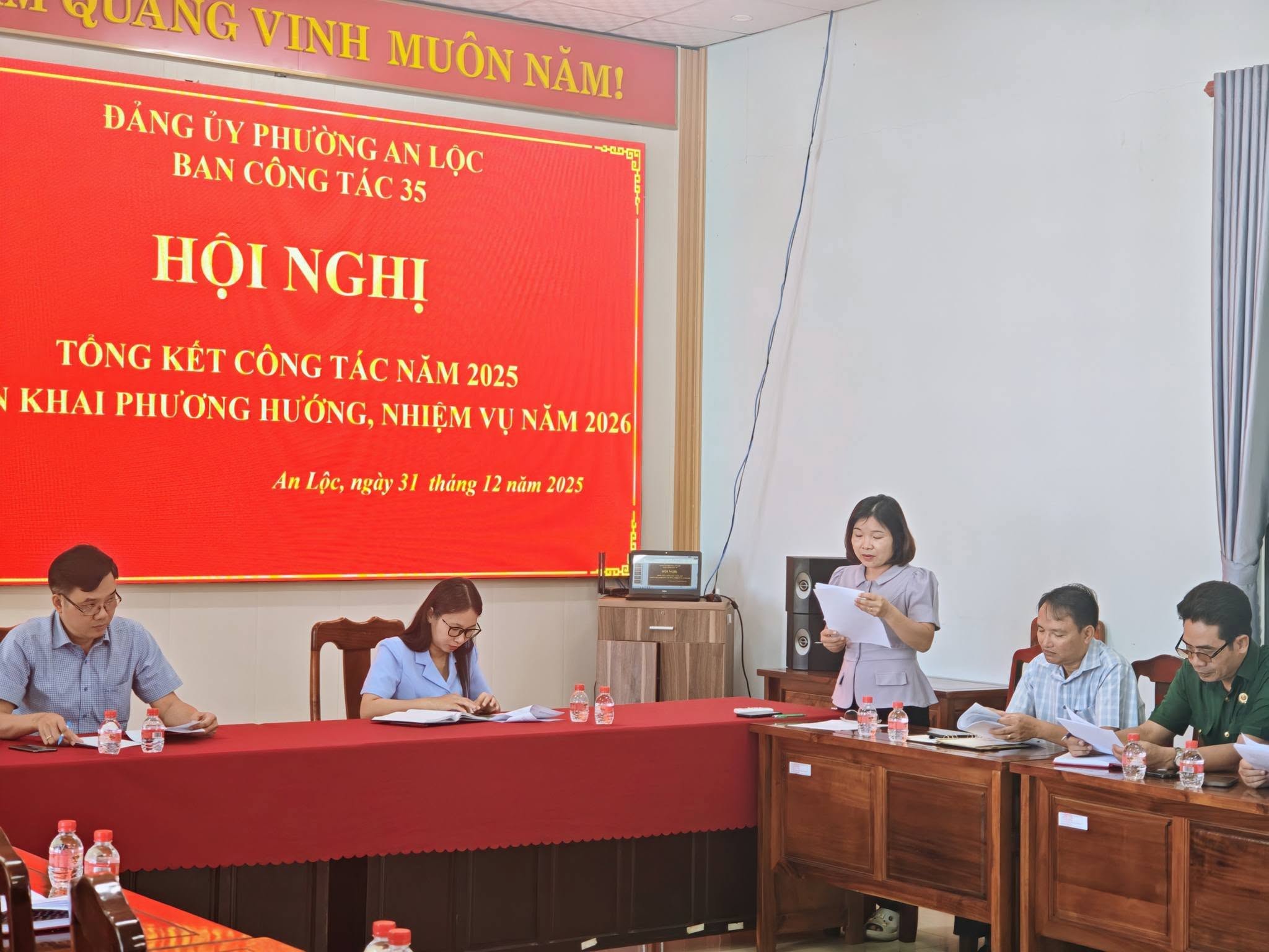 Phát biểu chỉ đạo, đồng chí Lê Thị Hồng Phấn ghi nhận, biểu dương những kết quả đạt được, đồng thời đề nghị Ban Công tác 35 phường tiếp tục phát huy vai trò nòng cốt, nâng cao hiệu quả phối hợp, góp phần giữ vững ổn định chính trị và tạo sự đồng thuận trong Nhân dân phường An Lộc.