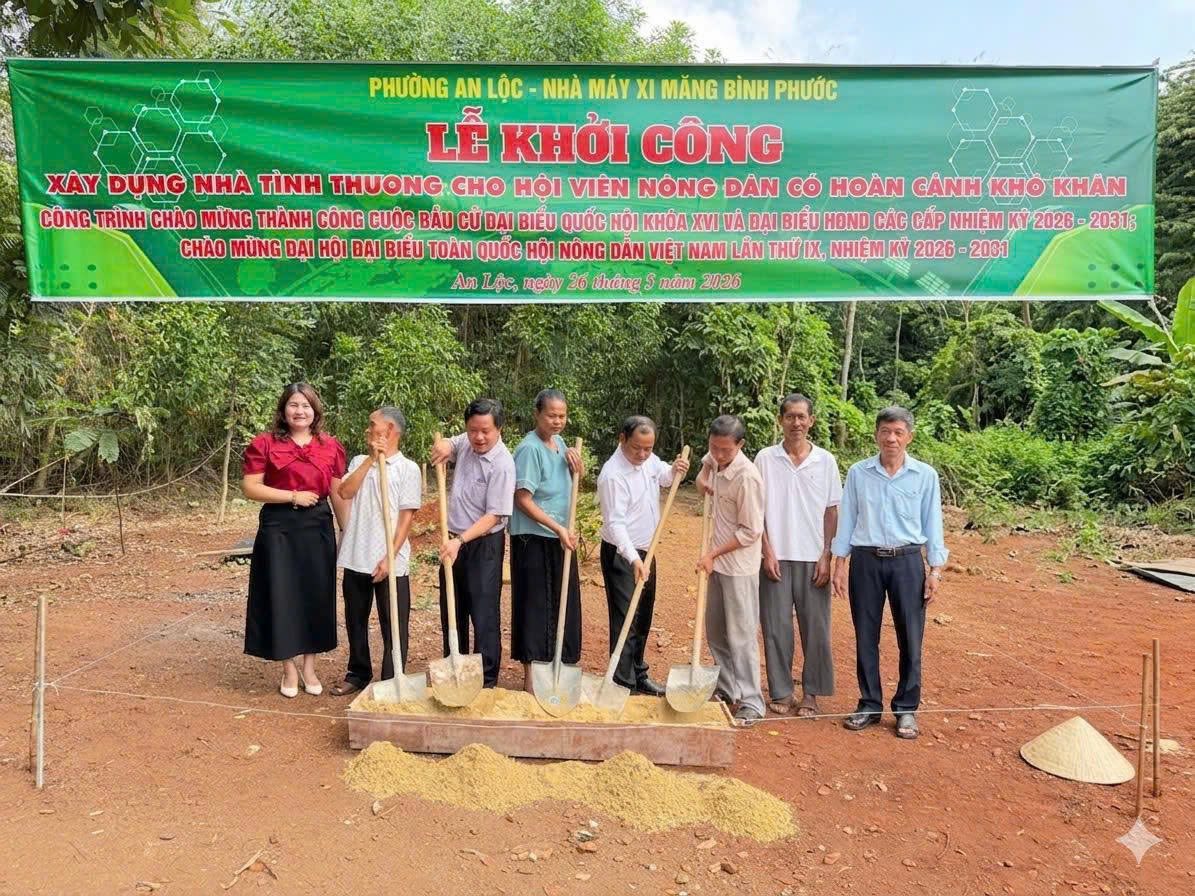 Sáng ngày 26/3/2026, trong chuỗi các hoạt động chào mừng thành công cuộc bầu cử đại biểu Quốc hội khóa XVI và đại biểu Hội đồng nhân dân các cấp nhiệm kỳ 2026–2031, phường An Lộc đã phối hợp cùng Nhà máy xi măng Bình Phước tổ chức Lễ khởi công xây dựng nhà tình thương dành cho hội viên nông dân có hoàn cảnh khó khăn trên địa bàn.