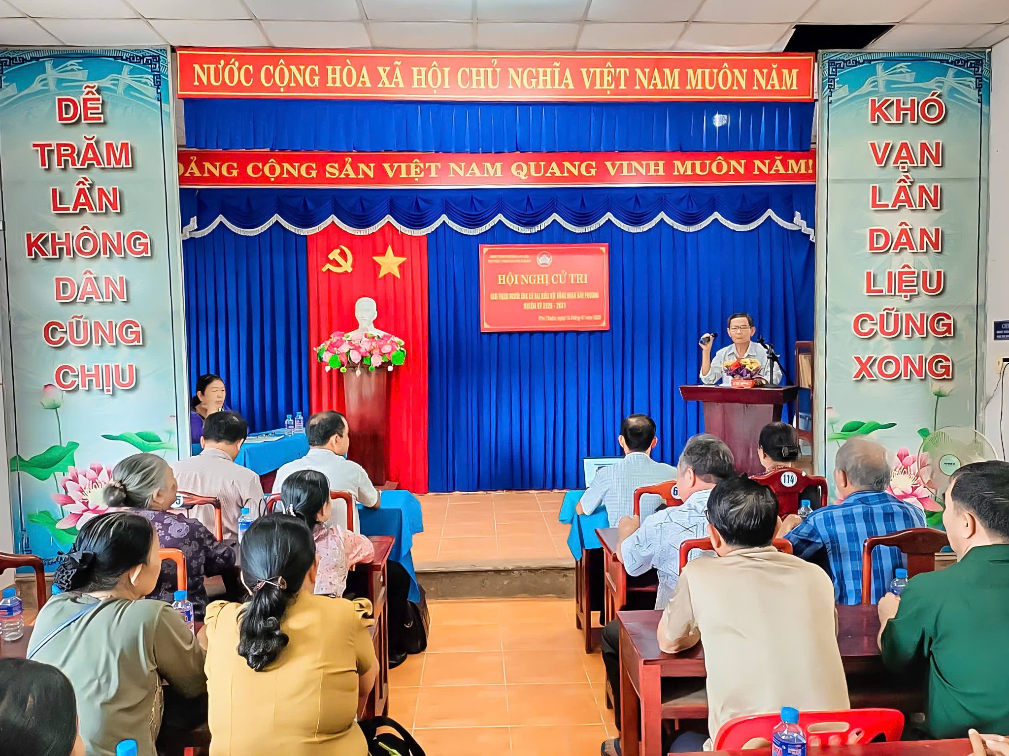 Đến dự hội nghị có đồng chí Võ Khắc Hổ - Ủy viên Ban Thường vụ Đảng ủy, Phó Chủ tịch HĐND phường; đồng chí Nguyễn Xuân Quang - Ủy viên Ban Thường vụ Đảng ủy, Phó Chủ tịch UBND phường; đồng chí Điểu Hải - Ủy viên Ban Thường vụ Đảng ủy, Chủ tịch Ủy ban MTTQ Việt Nam phường cùng đại diện ban điều hành khu phố và đông đảo cử tri khu phố Phú Thuận.