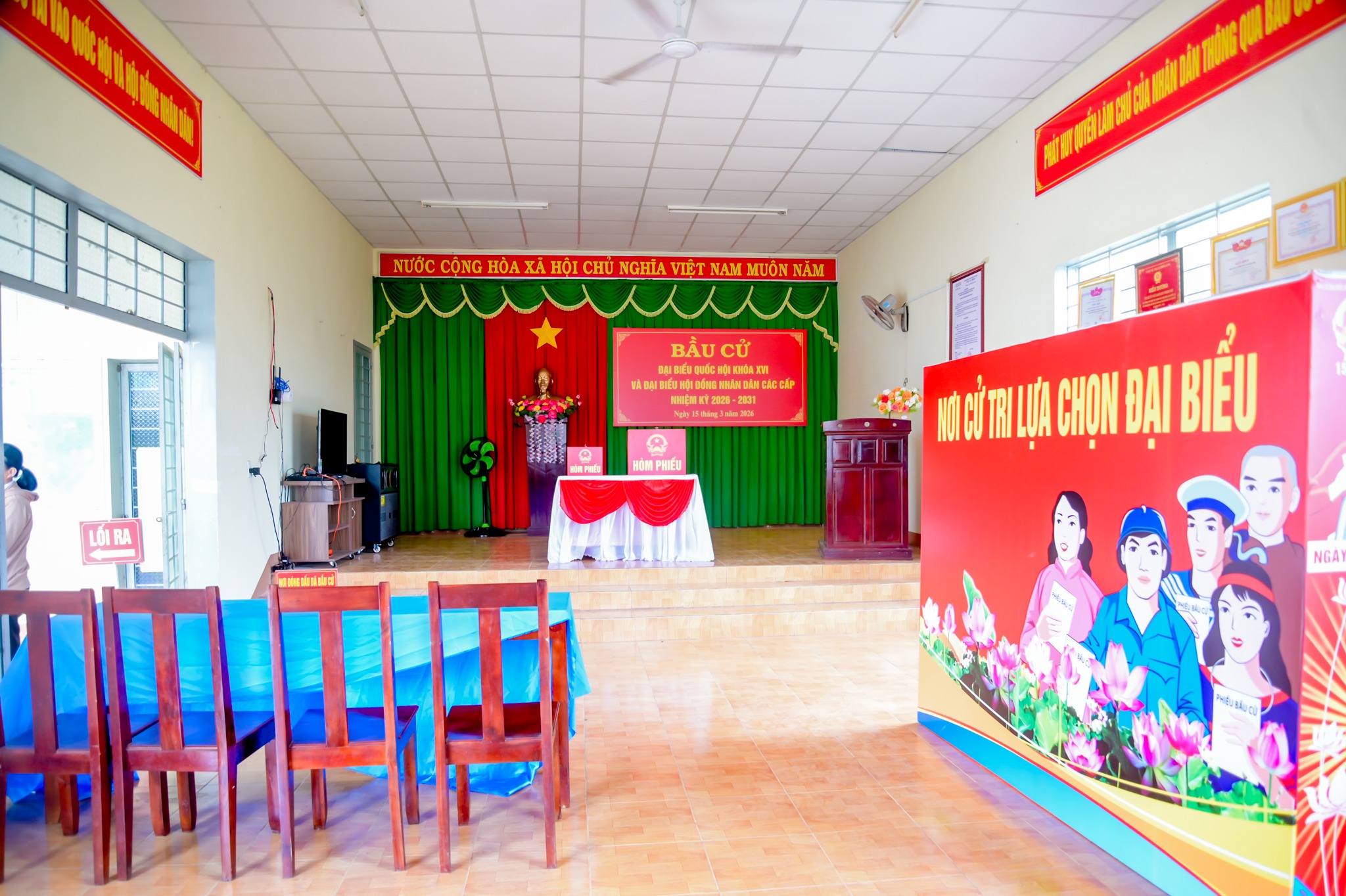 Qua kiểm tra thực tế tại khu vực bỏ phiếu số 7, công tác chuẩn bị cơ bản đã hoàn thành theo kế hoạch. Việc niêm yết danh sách cử tri và danh sách người ứng cử được thực hiện đầy đủ, đúng quy định; cơ sở vật chất, hòm phiếu, bàn ghế, khu vực bỏ phiếu được bố trí khoa học; công tác trang trí khánh tiết, tuyên truyền trực quan được triển khai đồng bộ; các phương án đảm bảo an ninh trật tự, phòng cháy chữa cháy và điều kiện phục vụ cử tri đã được chuẩn bị chu đáo.