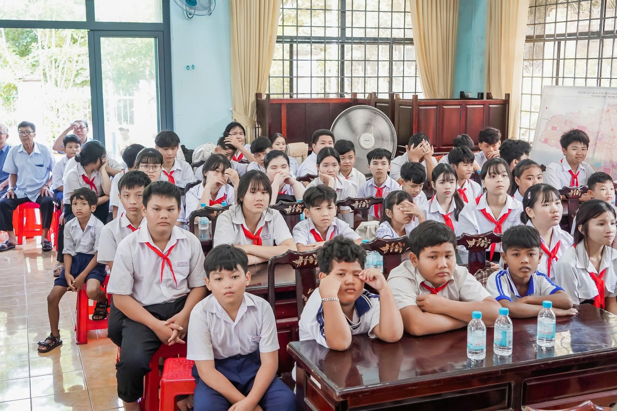 Dịp này, nhà tài trợ Đinh Mã Hoài Nam thuộc Công ty TNHH Chuyển phát nhanh Thanh Trà đã trao tặng 20 thẻ bảo hiểm y tế cho học sinh nghèo vượt khó của Trường TH-THCS Thanh Phú.