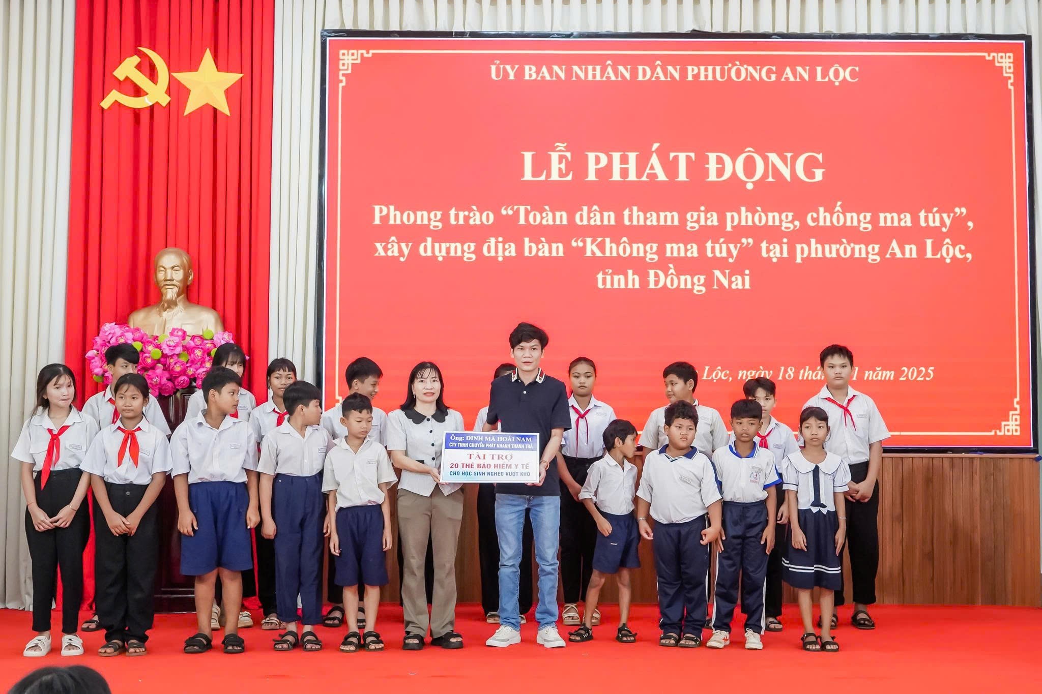 Sáng 18/11, UBND phường An Lộc tổ chức Lễ phát động phong trào “Toàn dân tham gia phòng, chống ma túy”, hướng đến xây dựng địa bàn “không ma túy” trên địa bàn phường. Dự có đồng chí Lê Thị Hồng Phấn - Phó Bí thư Thường trực Đảng uỷ phường, đồng chí Trần Thanh Long - Phó Bí thư Đảng ủy, Chủ tịch UBND phường, đồng chí Nguyễn Thế Nhật - Ủy viên Ban Thường vụ Đảng ủy, Trưởng Công an phường cùng các đồng chí đại diện phòng, ban, ngành, đoàn thể; các đồng chí là Phó Trưởng Công an phường, cán bộ chiến sỹ Công an phường; bí thư, trưởng khu phố, tổ trưởng tổ ANTT; đại diện các trường học và 50 em học sinh Trường TH–THCS Thanh Phú.