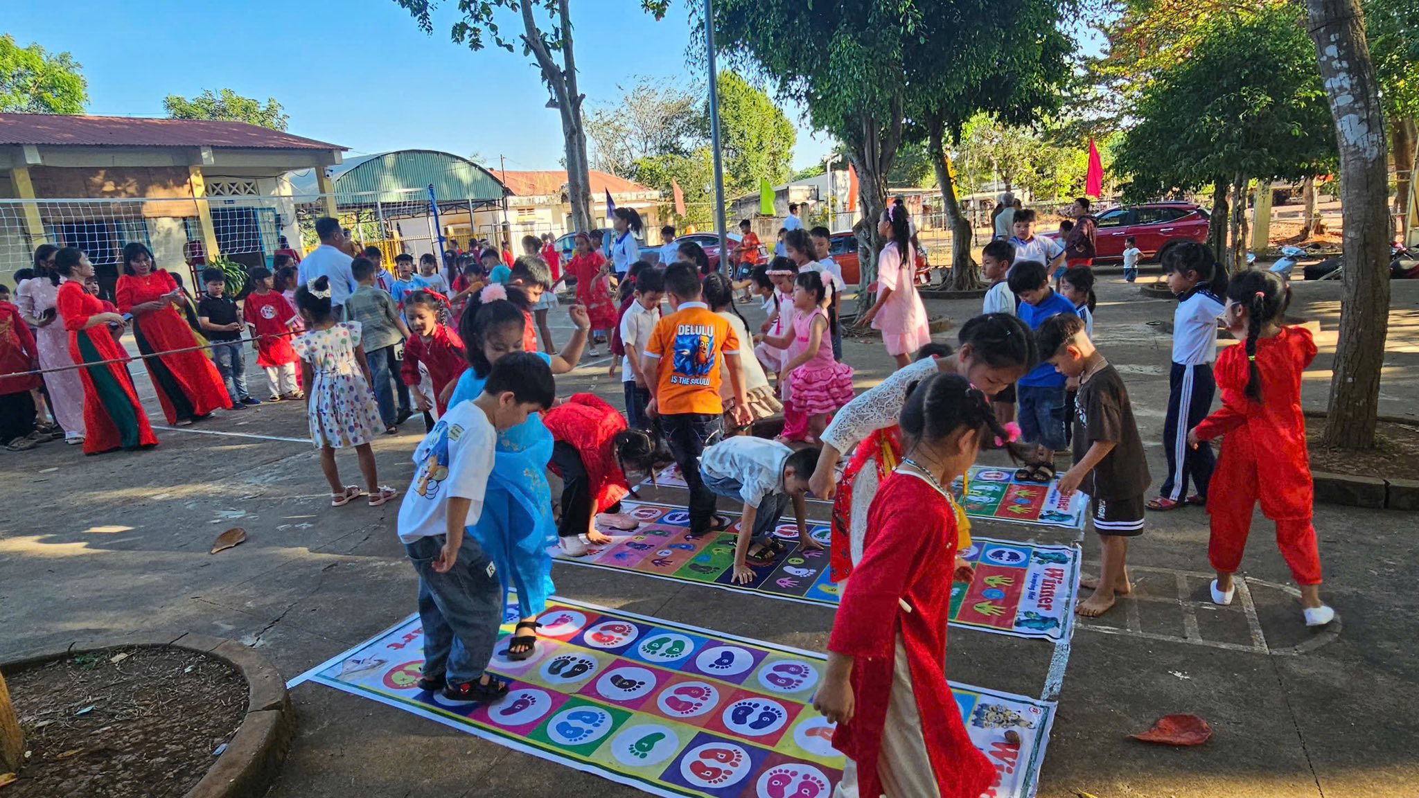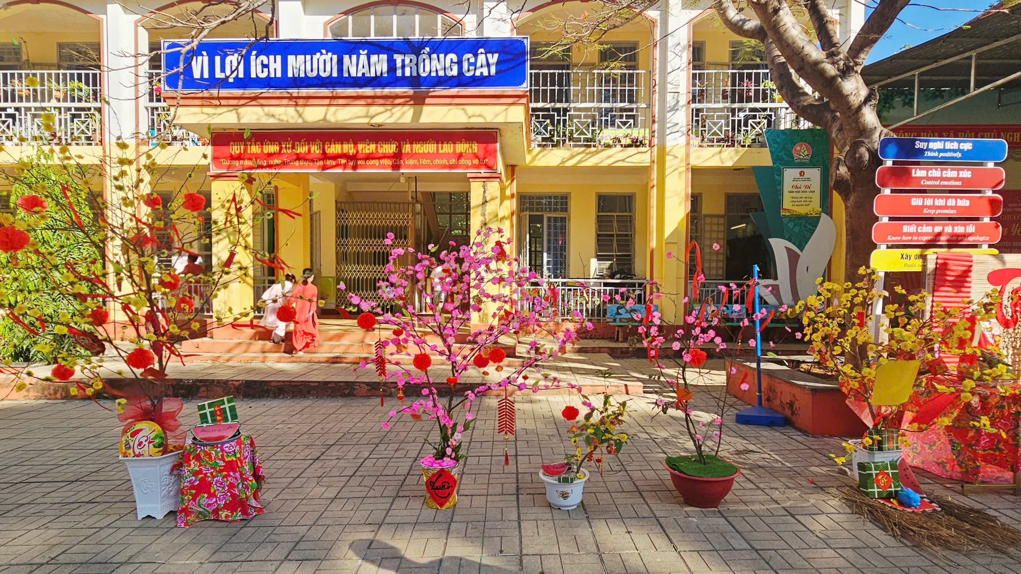 Chương trình diễn ra trong không khí vui tươi, ấm áp với các tiết mục văn nghệ mừng Đảng, mừng Xuân đặc sắc do các em học sinh biểu diễn; hoạt động khéo tay đón Tết với việc trang trí mai vàng, đào thắm mang đậm sắc xuân; cùng các hoạt động trải nghiệm sáng tạo, trò chơi dân gian và hiện đại như kéo co, bước nhảy tài năng, cầu lông, ô ăn quan, nhảy cò bẹp… tạo sân chơi lành mạnh, giúp các em học sinh được giao lưu, rèn luyện kỹ năng và lưu giữ những kỷ niệm đẹp trước thềm năm mới.