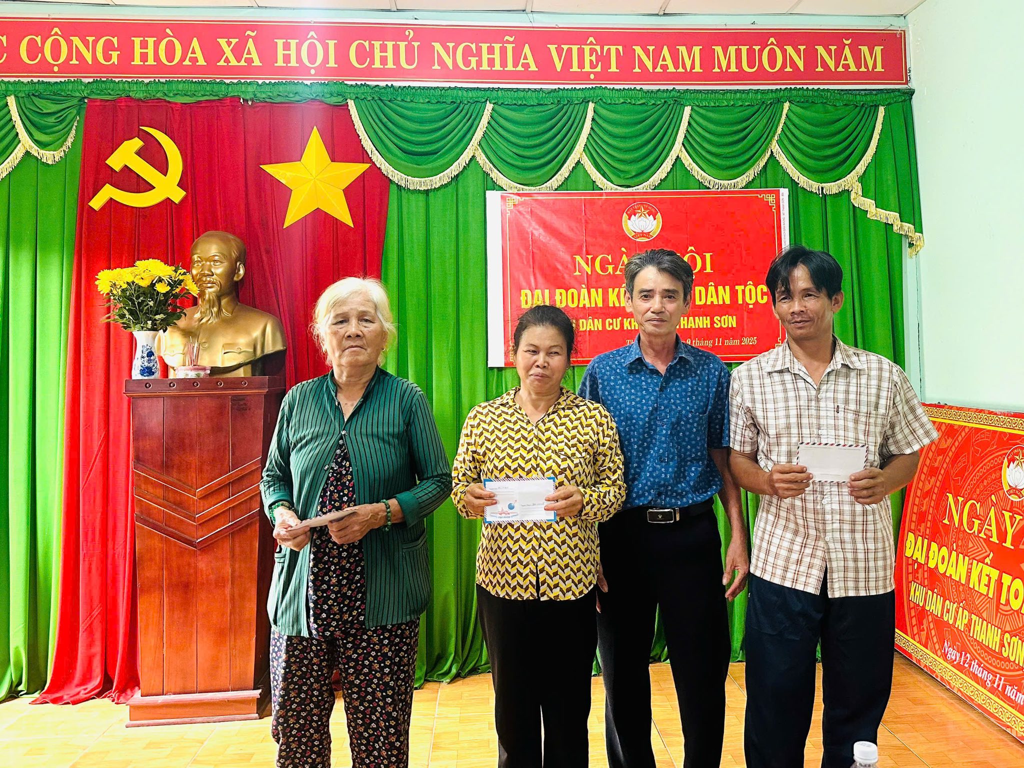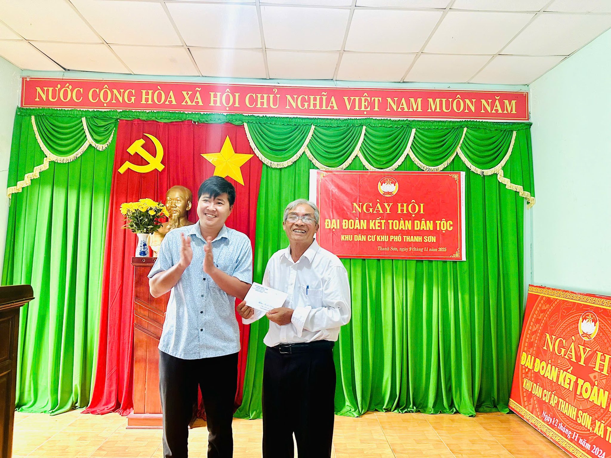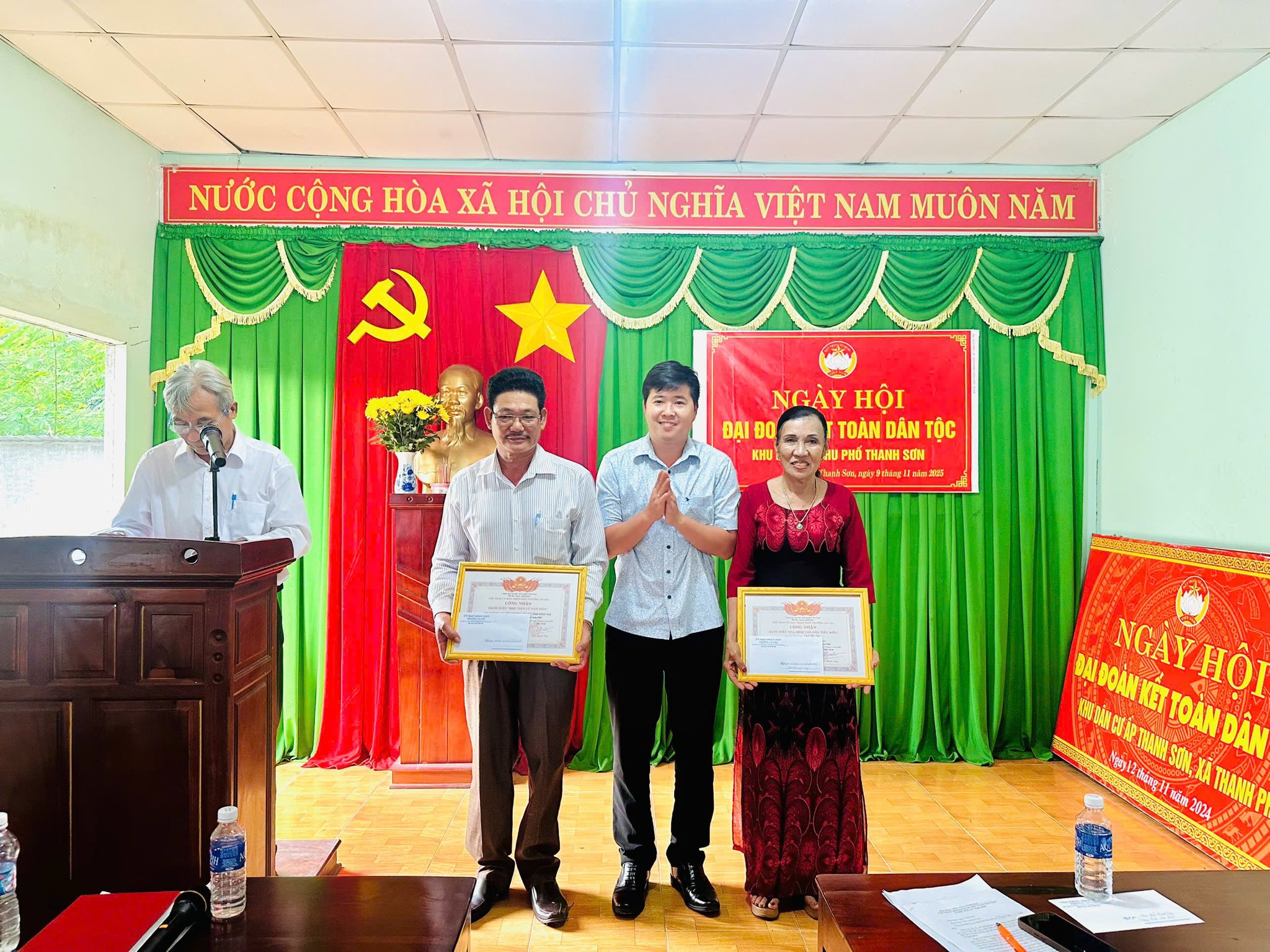 Cũng trong dịp này, lãnh đạo phường đã trao quyết định công nhận khu phố Thanh Sơn là Khu dân cư văn hoá năm 2025 và công nhận 1 gia đình văn hoá tiêu biểu; đồng thời khu dân cư tặng quà cho 3 hộ gia đình có hoàn cảnh khó khăn nhằm động viên, khích lệ hộ gia đình phấn đấu, vươn lên trong cuộc sống.