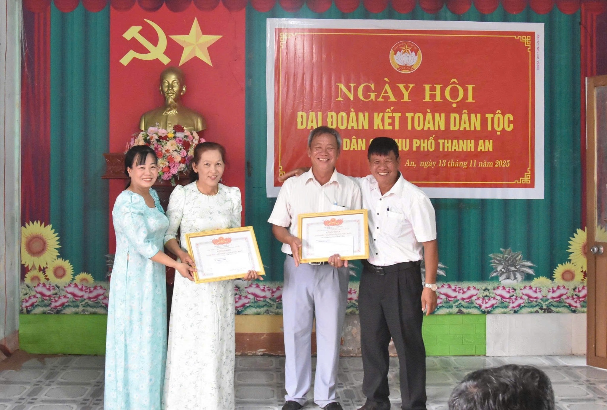 Ghi nhận kết quả khu phố Thanh An đạt được, lãnh đạo phường đã trao quyết định công nhận khu phố Thanh An là Khu dân cư văn hoá năm 2025, đồng thời trao tặng danh hiệu gia đình văn hoá tiêu biểu cho 2 hộ gia đình. Chương trình cũng đã trao Thư Cảm ơn cho doanh nghiệp, trang trại trên địa bàn đã ủng hộ, giúp đỡ khu phố trong thời gian qua.