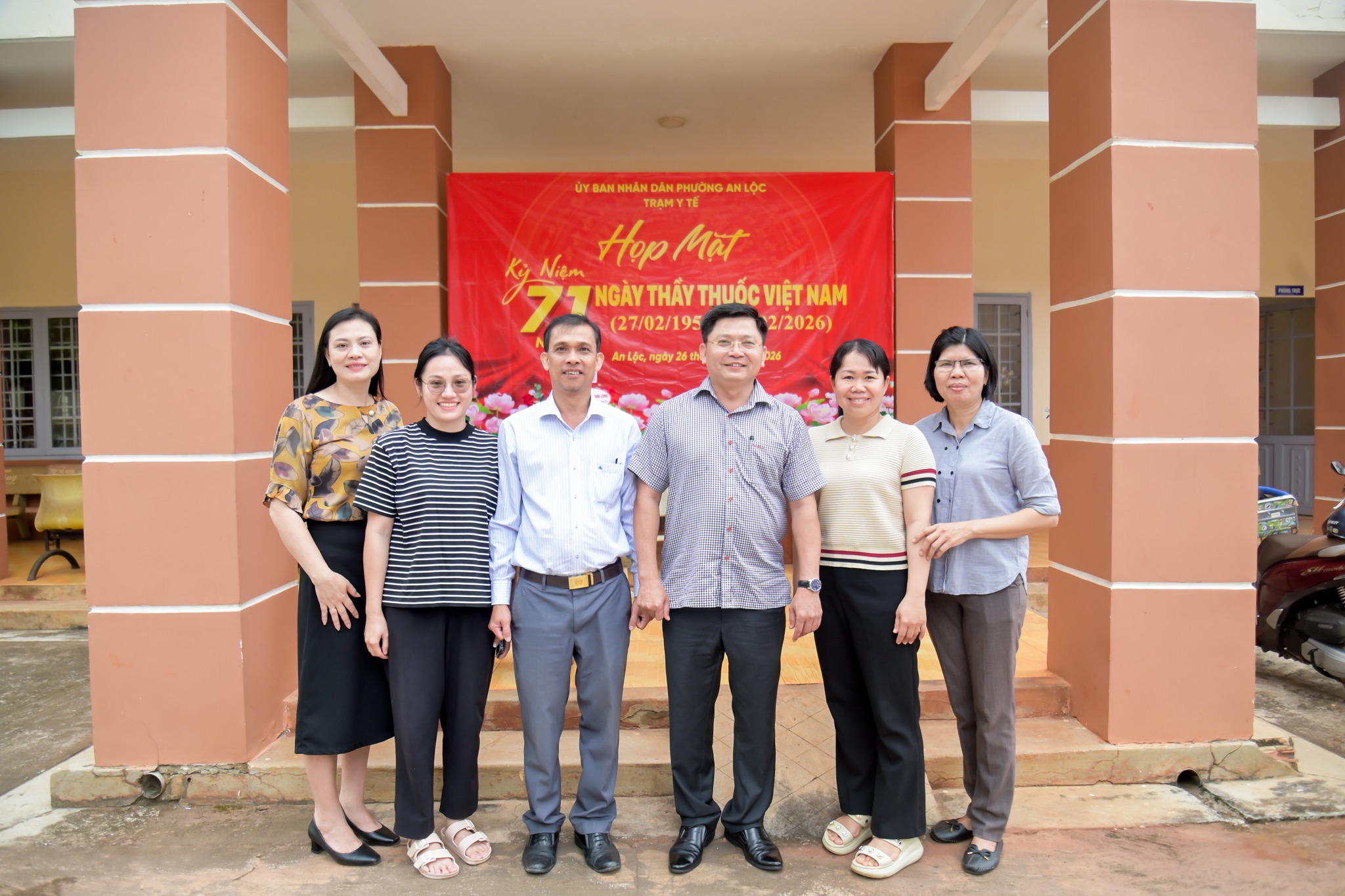 Ngày 26/2, đồng chí Trần Thanh Long - Phó Bí thư Đảng ủy, Chủ tịch UBND phường An Lộc đã đến thăm, chúc mừng đội ngũ y, bác sĩ và toàn thể cán bộ, nhân viên Trạm Y tế phường An Lộc nhân kỷ niệm 71 năm Ngày Thầy thuốc Việt Nam (27/2/1955 - 27/2/2026), cùng đi có đồng chí Nguyễn Xuân Quang - UV.BTV Đảng ủy, Phó Chủ tịch UBND phường.