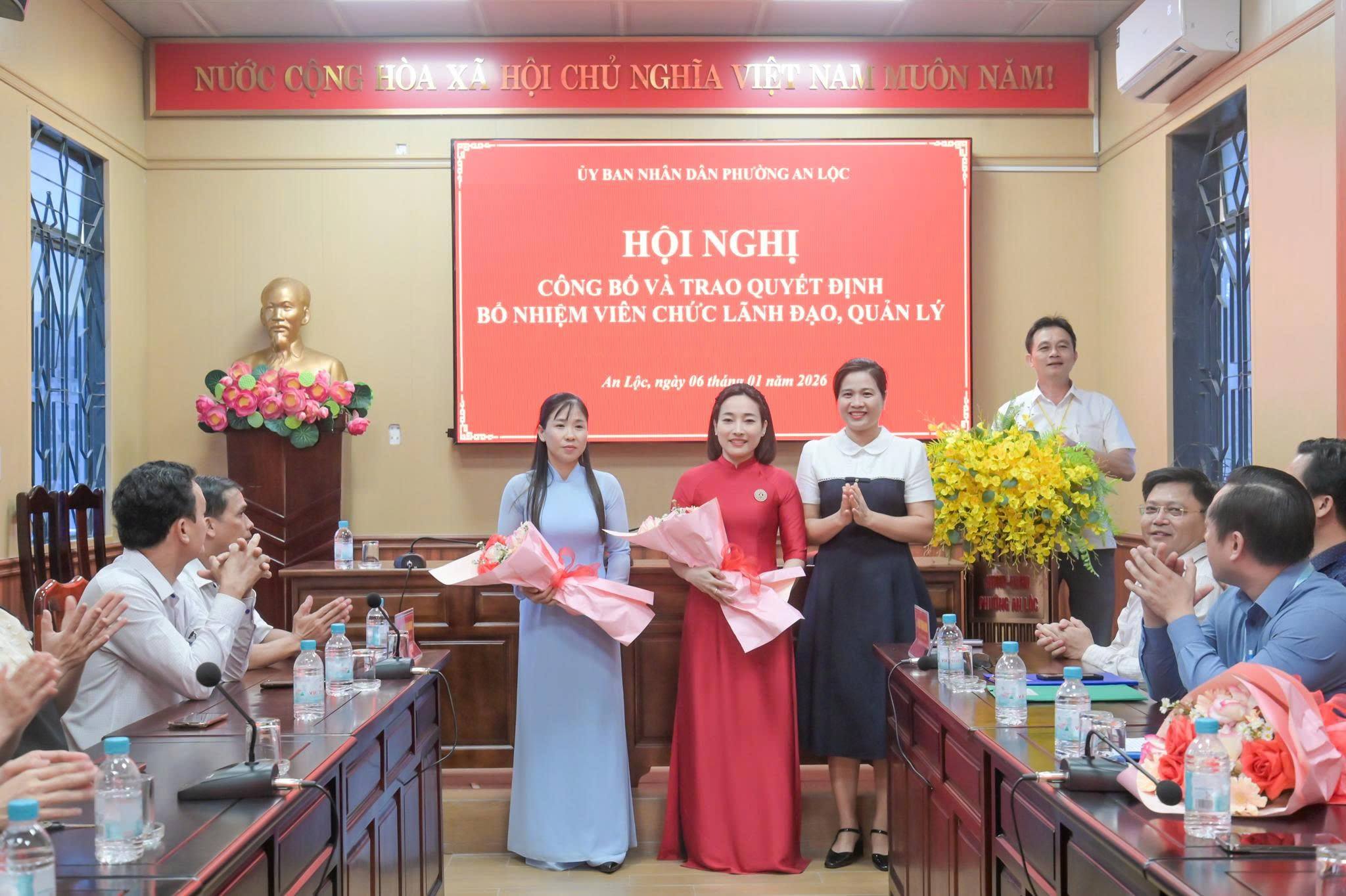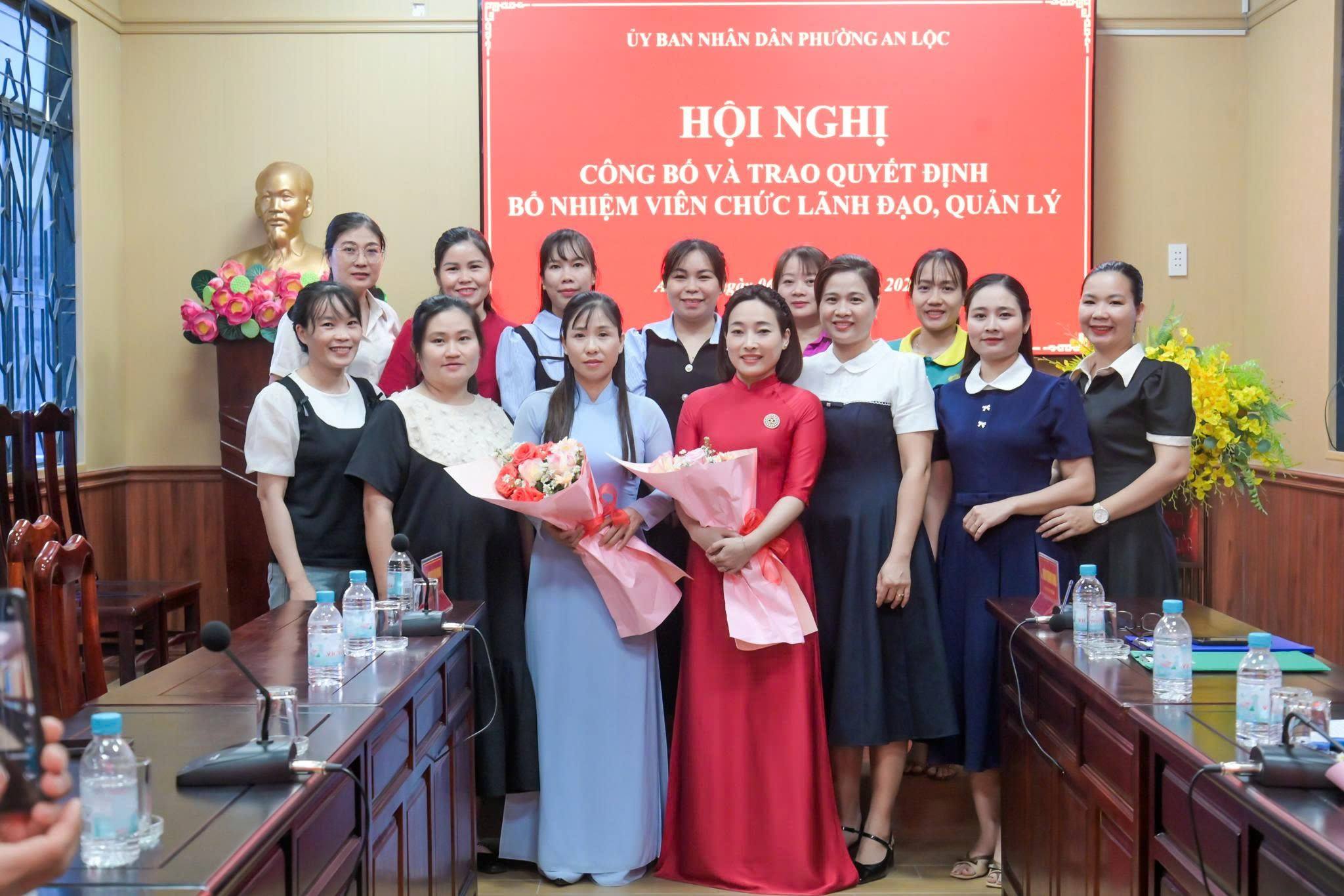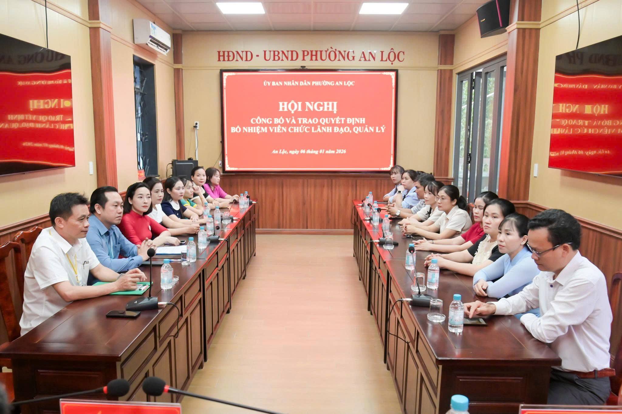 Tại hội nghị, UBND phường An Lộc đã công bố và trao quyết định bổ nhiệm chức vụ Phó Hiệu trưởng Trường Mầm non Vành Khuyên cho cô Hoàng Thị Thu Hằng và cô Nguyễn Thị Hài. Đây là bước kiện toàn đội ngũ cán bộ quản lý, đáp ứng yêu cầu nâng cao chất lượng công tác quản lý, điều hành hoạt động giáo dục mầm non trong giai đoạn mới, nhất là khi phường An Lộc đang từng bước ổn định tổ chức và phát triển sau sắp xếp đơn vị hành chính.