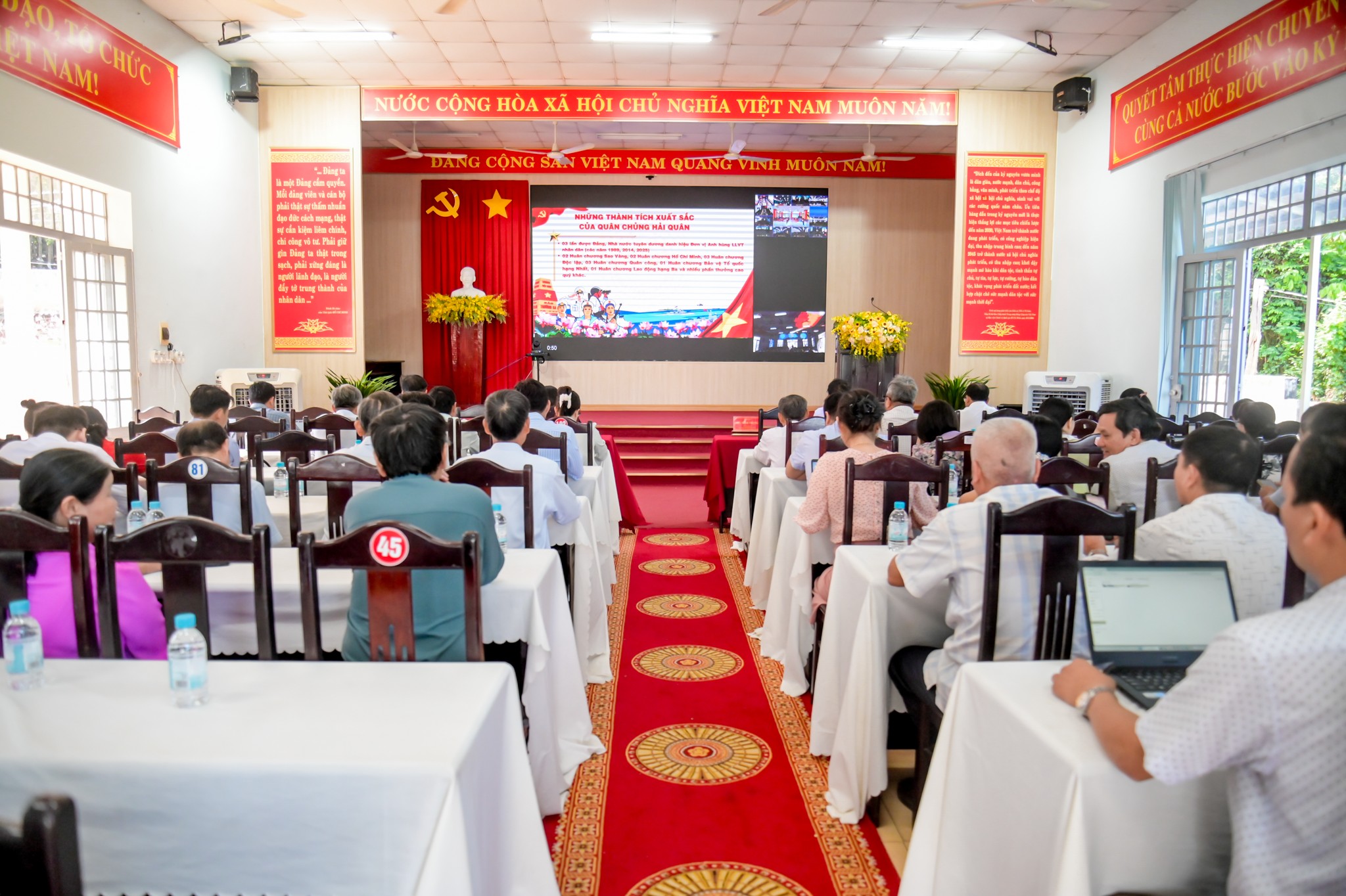Tại hội nghị, các đại biểu đang được nghe lãnh đạo Bộ Tư lệnh Vùng 2 Hải quân thông tin chuyên đề “Vị trí, vai trò, tiềm năng, thế mạnh của biển, đảo Việt Nam đối với sự nghiệp xây dựng và bảo vệ Tổ quốc; kết quả đấu tranh bảo vệ chủ quyền biển, đảo, biên giới trên đất liền năm 2025 và phương hướng, nhiệm vụ năm 2026”. Theo chương trình hội nghị, các đại biểu sẽ nghe lãnh đạo Ủy ban MTTQ Việt Nam tỉnh thông tin chuyên đề về công tác chuẩn bị bầu cử đại biểu Quốc hội khóa XVI và đại biểu Hội đồng nhân dân các cấp nhiệm kỳ 2026 - 2031; lãnh đạo Ban Tuyên giáo và Dân vận Tỉnh ủy thông tin tổng quan tình hình kinh tế - xã hội năm 2025, dự báo tình hình và các giải pháp trọng tâm nhằm phấn đấu đạt mục tiêu tăng trưởng hai con số trong năm 2026, đồng thời định hướng công tác tuyên truyền trong thời gian tới.