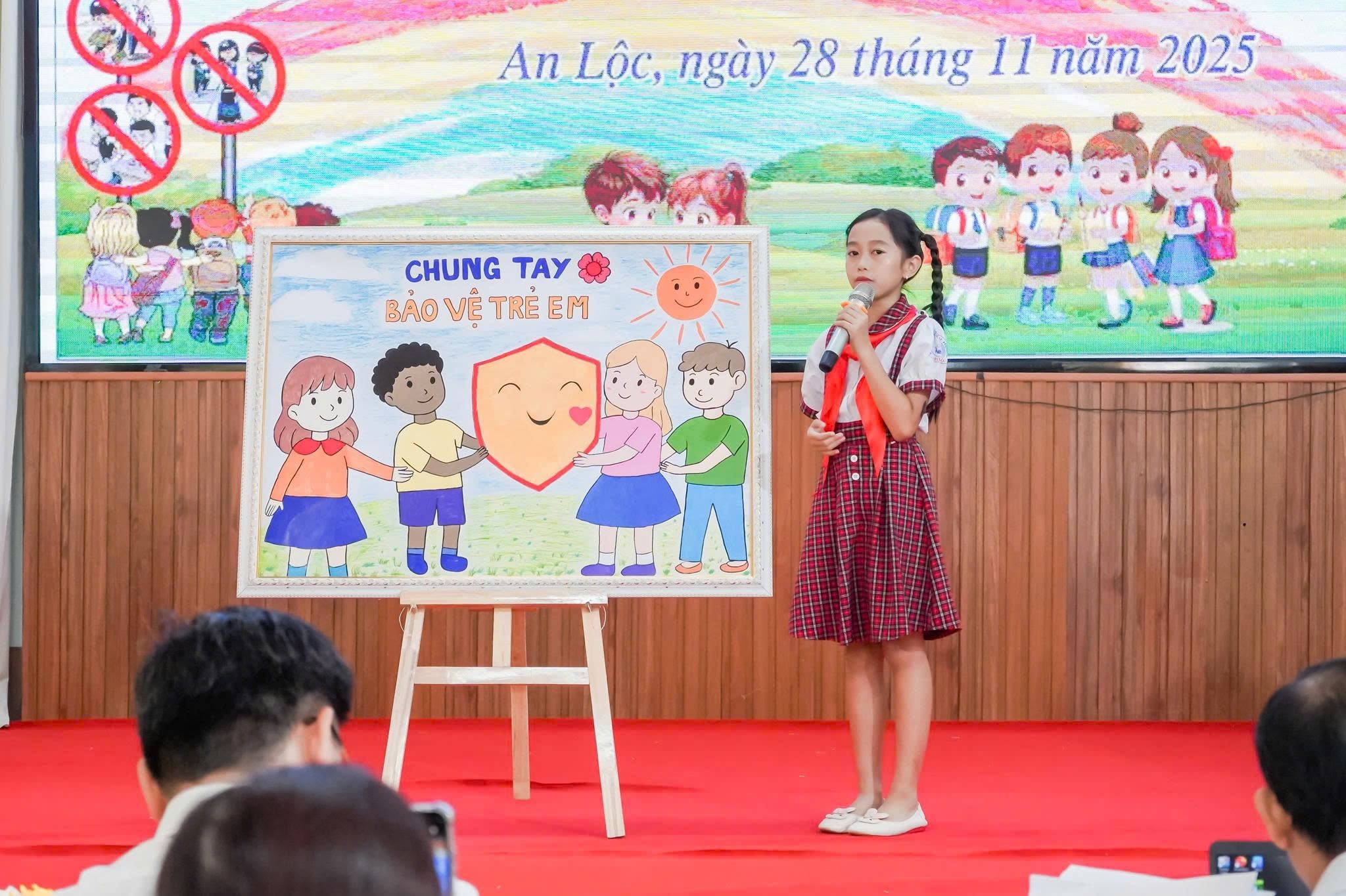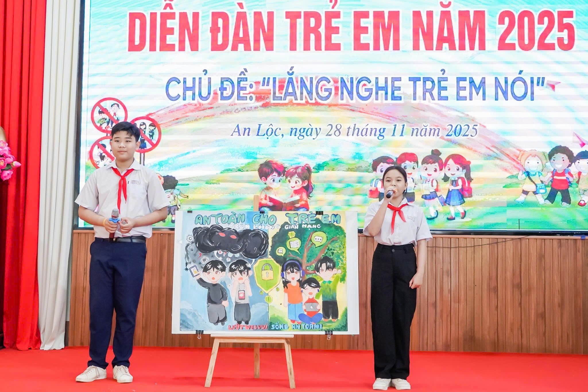 Không chỉ là diễn đàn lắng nghe, chương trình còn trở thành sân chơi sáng tạo khi các em học sinh của Trường TH An Lộc B, Trường THCS An Lộc B, Trường TH - THCS Thanh Phú, Trường TH Nguyễn Bá Ngọc, Trường TH - THCS Thanh Lương, Trường TH Thanh Lương B và Trường TH Thanh Phú A mang đến những thông điệp nhiều màu sắc bằng tranh vẽ, hò vè, tiểu phẩm bằng những câu chuyện về phòng chống đuối nước, xây dựng trường học an toàn, đến lời kêu gọi nói không với bạo lực, bảo vệ trẻ em trên không gian mạng, tất cả đều phản ánh khát vọng được sống trong một môi trường an toàn, yêu thương và tôn trọng.