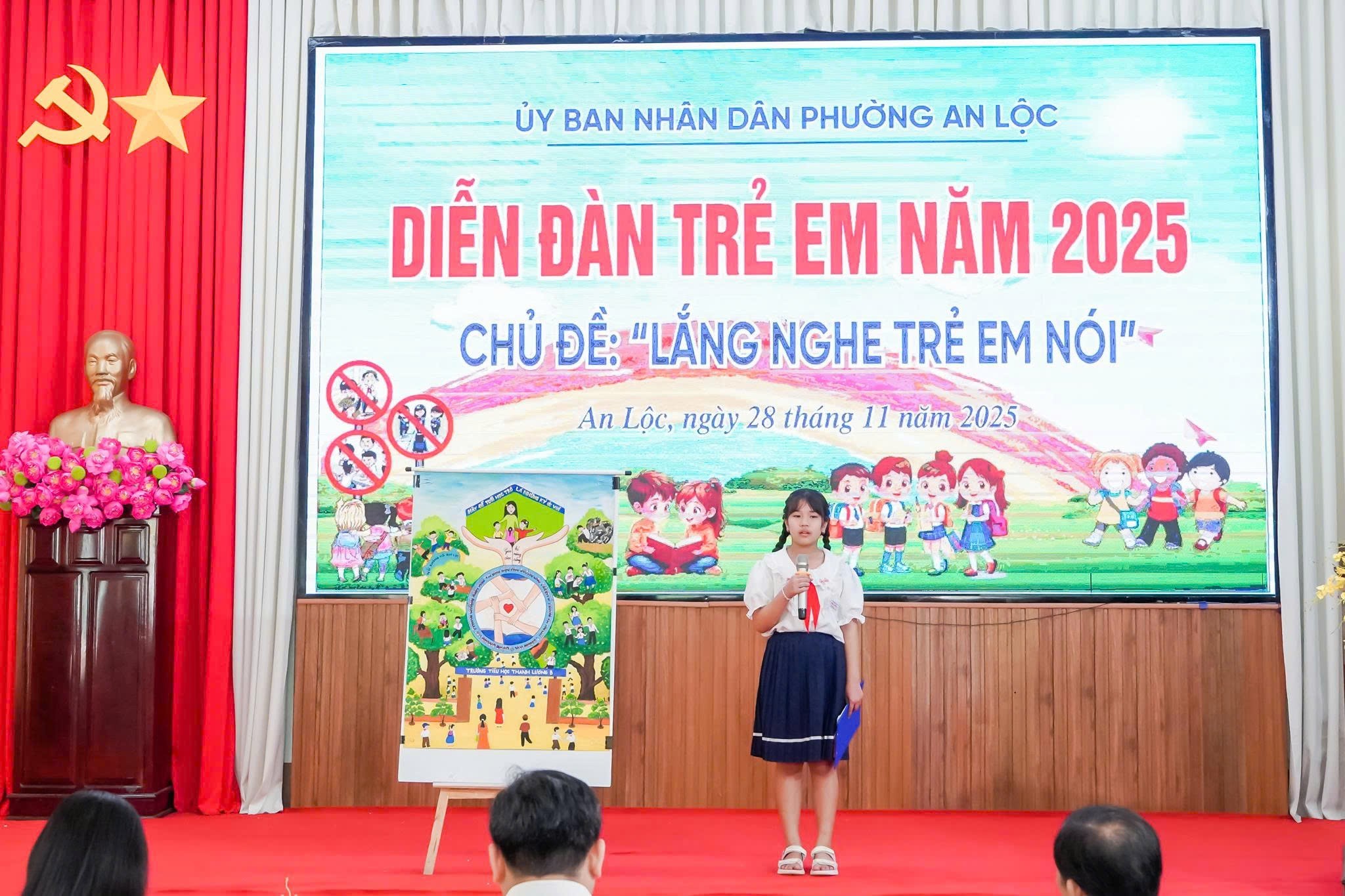 Khép lại diễn đàn, chủ đề “Lắng nghe trẻ em nói” một lần nữa khẳng định sự quan tâm của phường An Lộc đối với trẻ em - những mầm xanh tương lai của địa phương. Đây không chỉ là hoạt động lắng nghe tiếng nói trẻ thơ, mà còn là cam kết đồng hành, bảo vệ và tạo điều kiện để mọi trẻ em được phát triển toàn diện, góp phần xây dựng cộng đồng văn minh, an toàn và hạnh phúc.