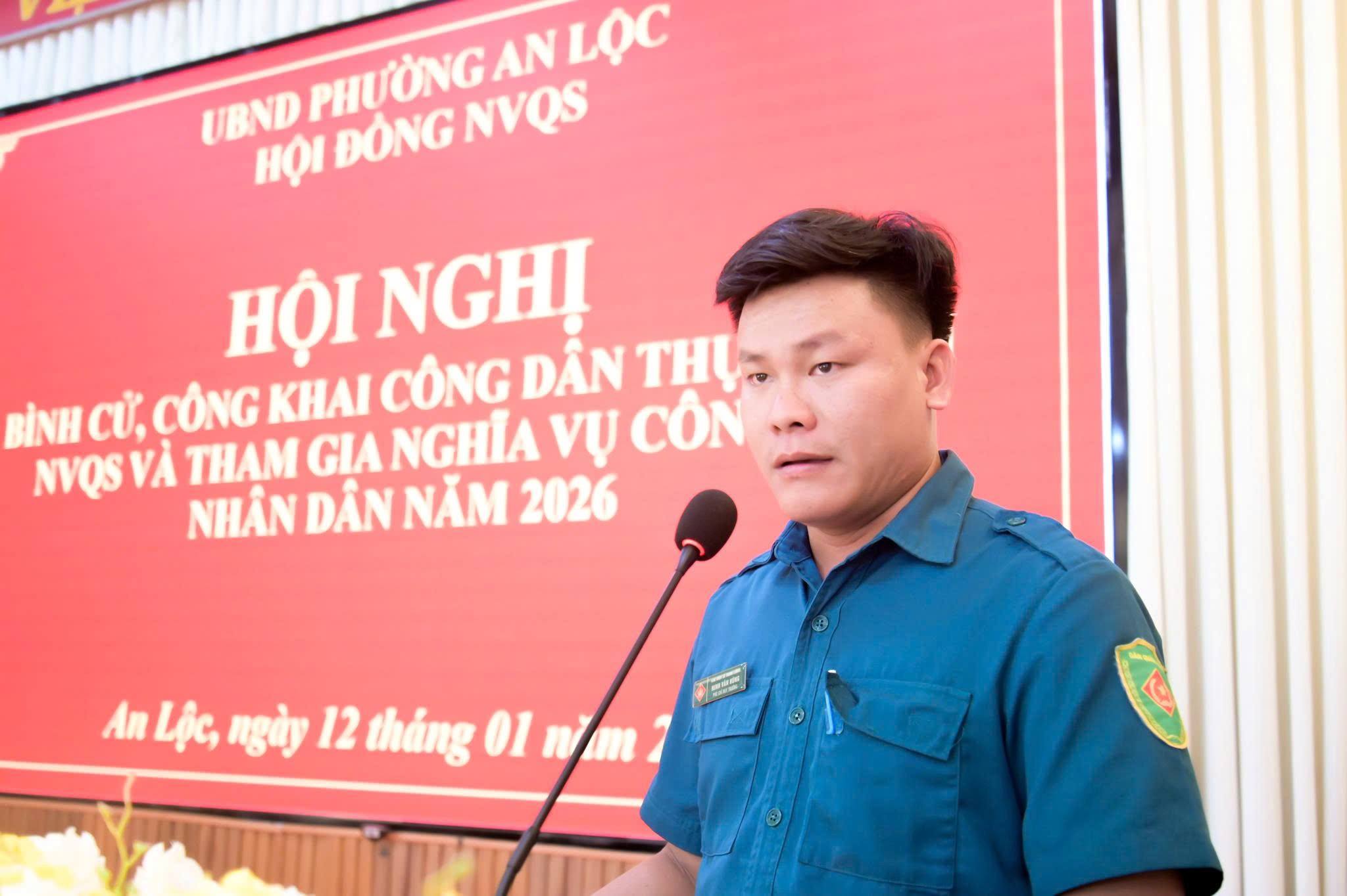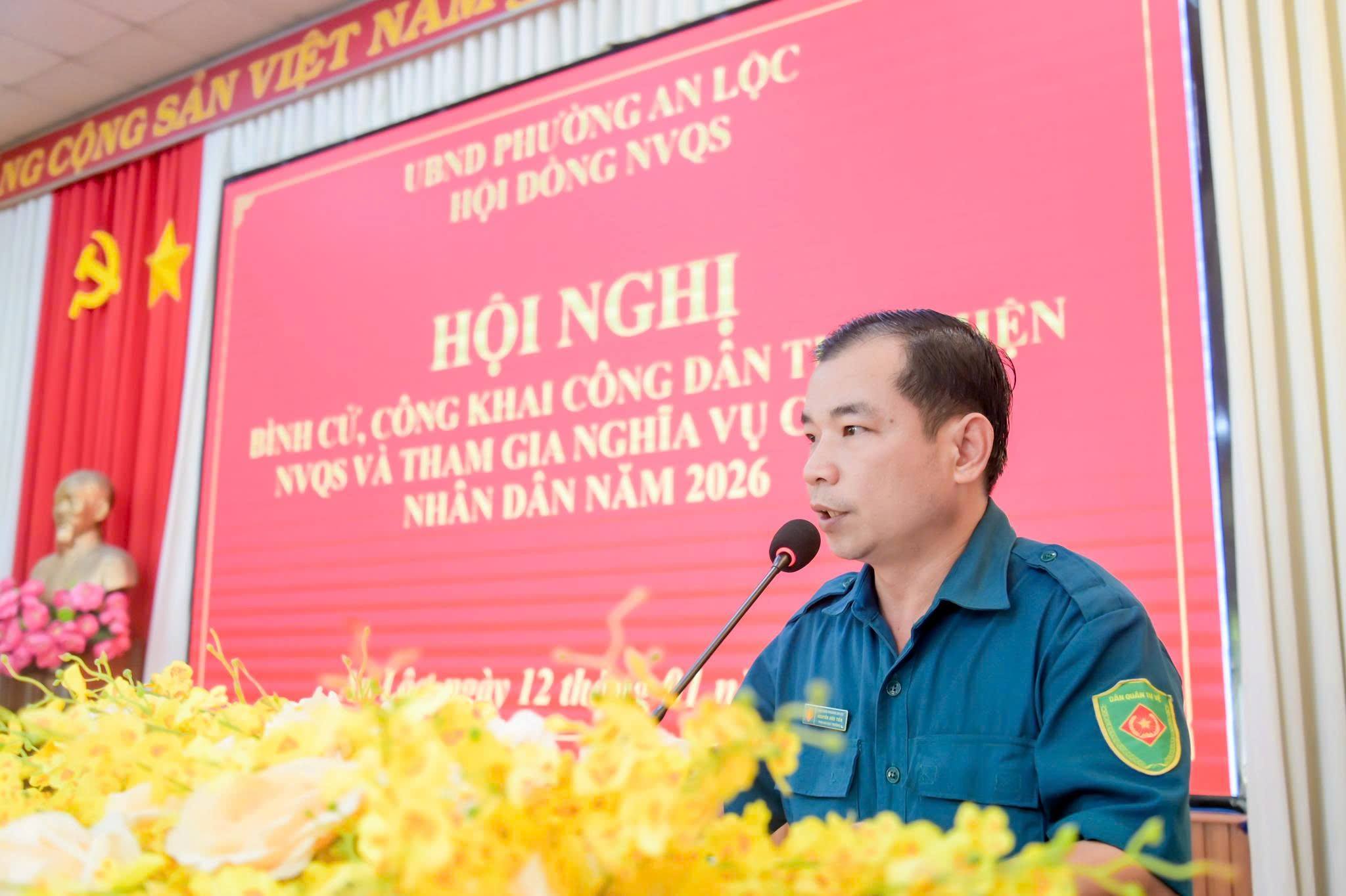 Kết luận hội nghị, đồng chí Trần Thanh Long - Phó Bí thư Đảng ủy, Chủ tịch UBND phường - Chủ tịch Hội đồng NVQS phường đề nghị các thành viên Hội đồng NVQS phường tiếp tục phát huy tinh thần trách nhiệm, tăng cường phối hợp với các khu phố trong công tác quản lý nguồn thanh niên; chủ động nắm bắt tình hình tư tưởng, kịp thời tuyên truyền, vận động thanh niên và gia đình chấp hành nghiêm Luật Nghĩa vụ quân sự và Luật Nghĩa vụ tham gia Công an nhân dân, góp phần thực hiện thắng lợi chỉ tiêu tuyển quân năm 2026 trên địa bàn phường.