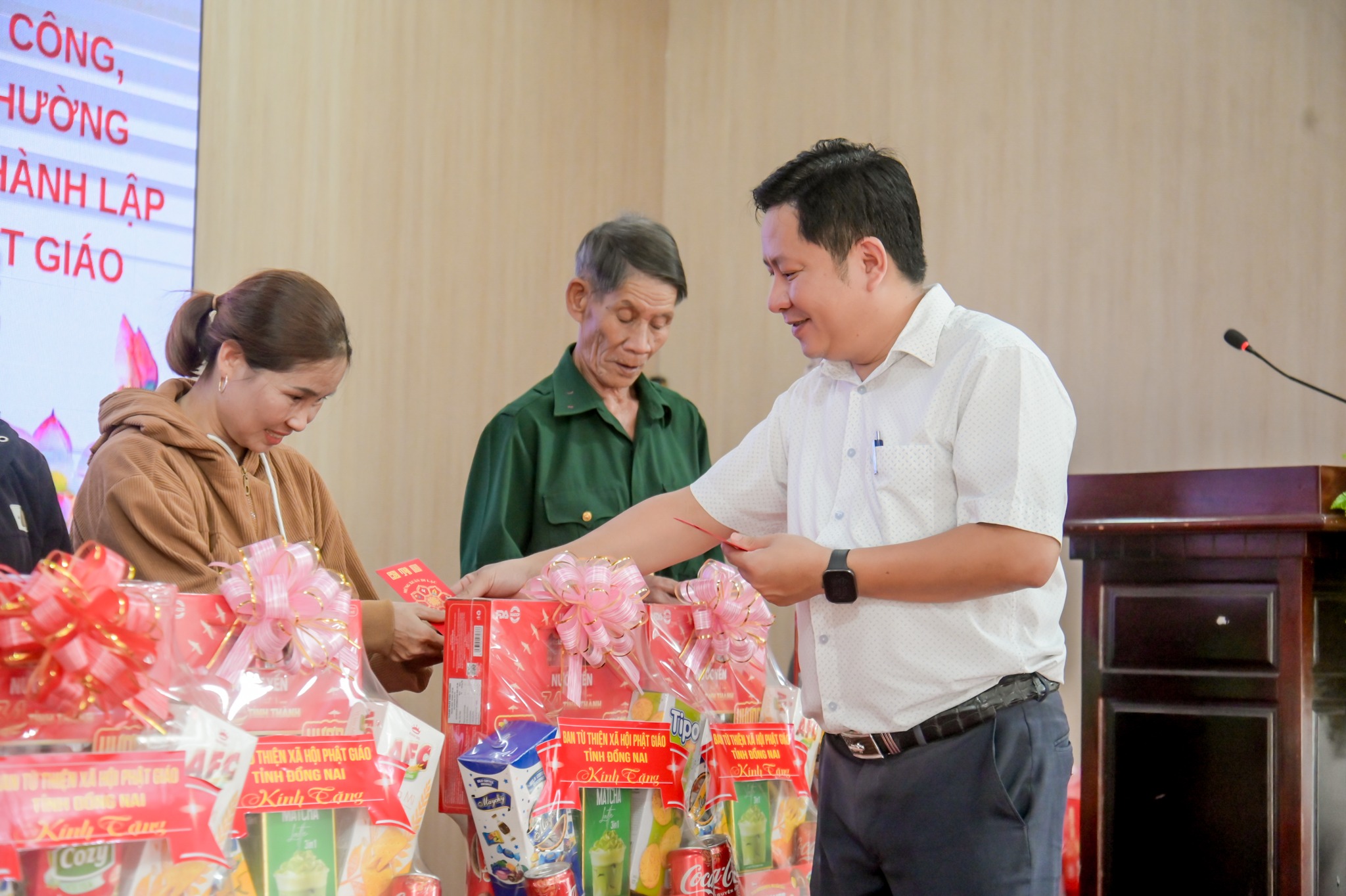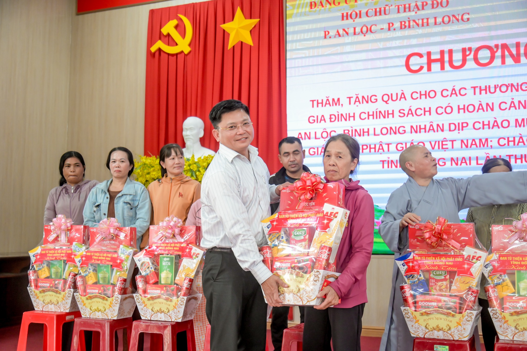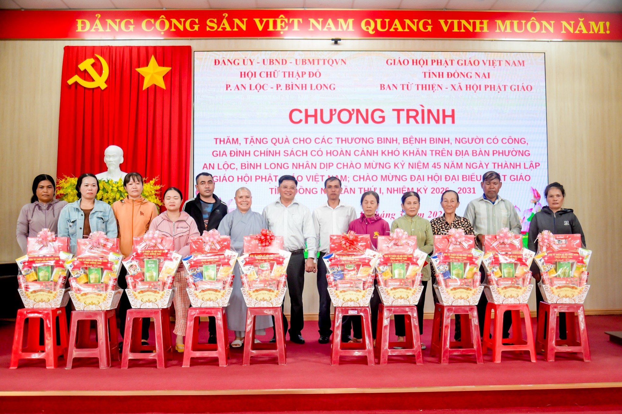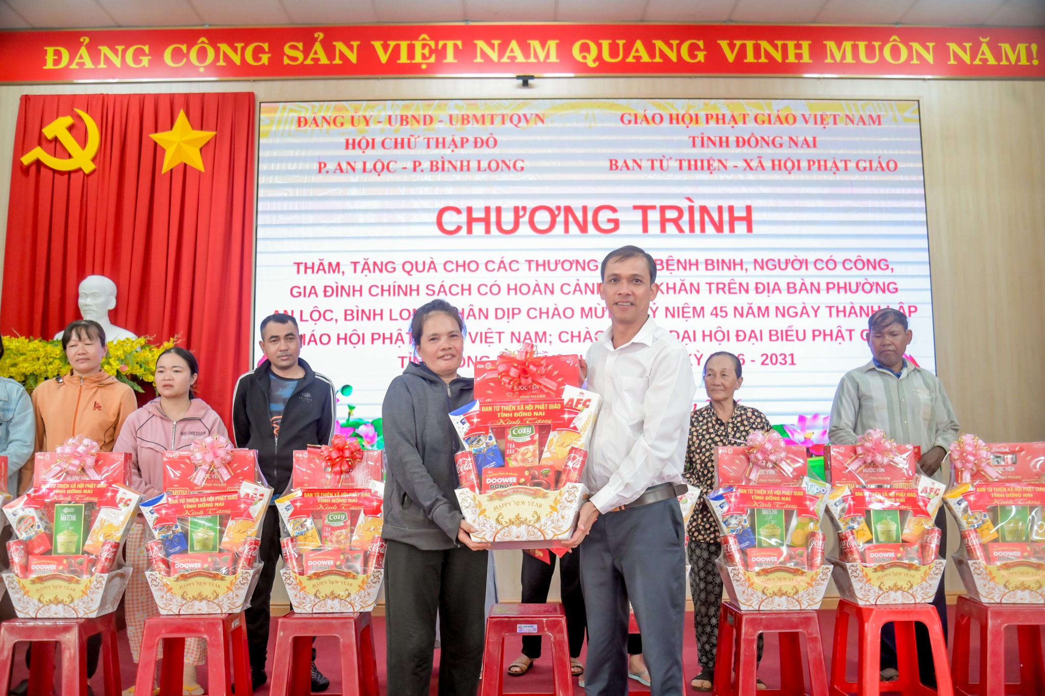Tại chương trình, Ban Từ thiện - Xã hội Phật giáo tỉnh Đồng Nai đã trao tặng tổng cộng 50 phần quà đến các đối tượng chính sách và hộ gia đình khó khăn; trong đó phường An Lộc nhận 30 phần quà, phường Bình Long nhận 20 phần quà. Mỗi phần quà gồm các nhu yếu phẩm thiết yếu, góp phần hỗ trợ các gia đình giảm bớt khó khăn, ổn định đời sống. Đối với một số thương binh, bệnh binh do điều kiện sức khỏe không thể đến tham dự chương trình, đoàn công tác của phường An Lộc đã trực tiếp đến tận nhà để thăm hỏi, động viên và trao quà. Trong đó, đoàn đã đến trao quà cho 02 hộ gia đình thương binh, bệnh binh tại khu phố Thanh Thủy, ân cần thăm hỏi sức khỏe, đời sống sinh hoạt của các gia đình. Hoạt động thể hiện sự quan tâm sâu sắc của cấp ủy, chính quyền, Mặt trận Tổ quốc và các đoàn thể địa phương đối với những người đã có nhiều cống hiến cho đất nước.