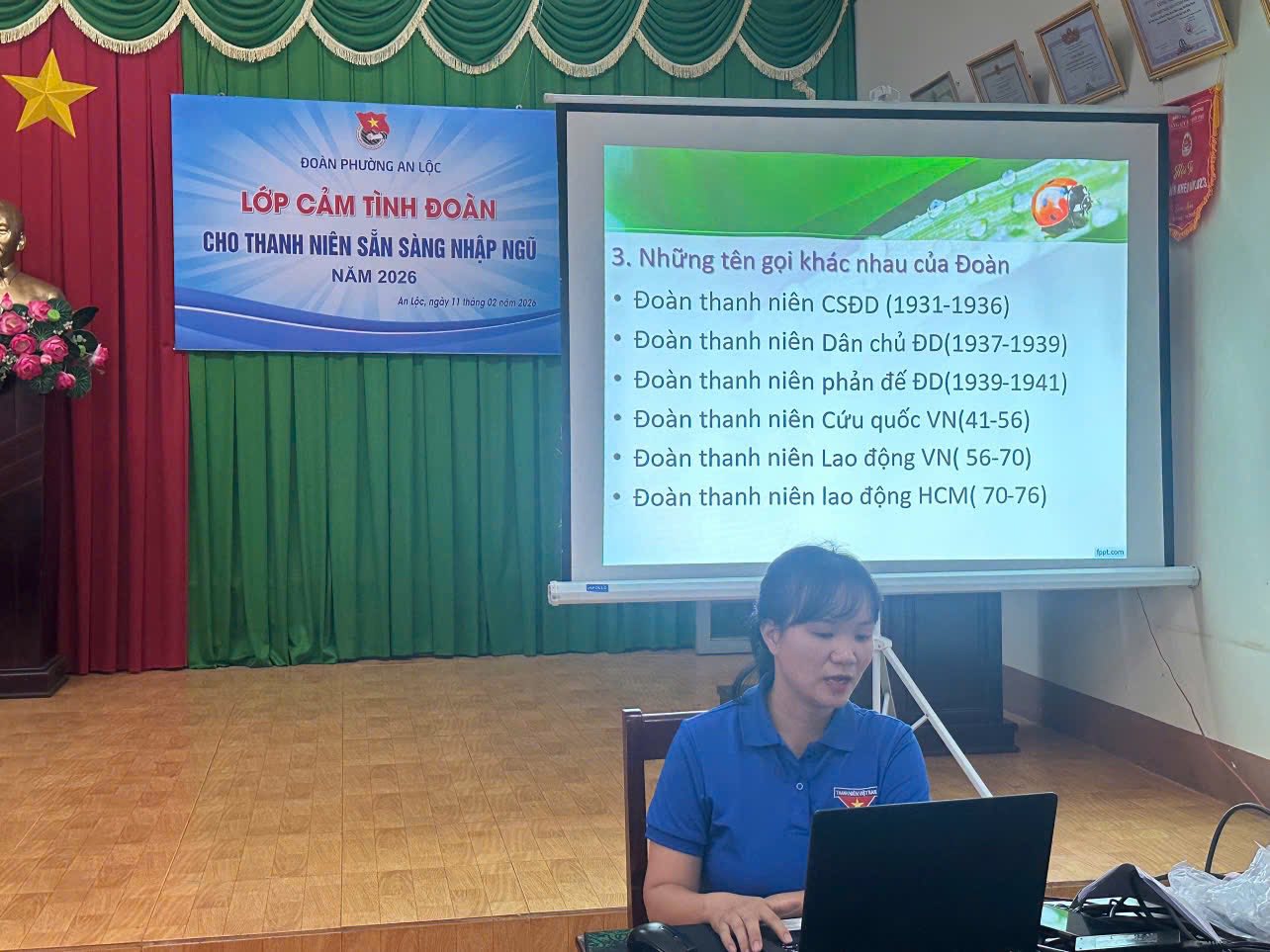 Sáng ngày 11/02/2026, Đoàn phường An Lộc tổ chức Lớp cảm tình Đoàn dành cho thanh niên trúng tuyển nghĩa vụ quân sự và nghĩa vụ Công an nhân dân năm 2026 trên địa bàn phường. Hoạt động nhằm bồi dưỡng lý tưởng cách mạng, nâng cao nhận thức chính trị và tạo nguồn phát triển đoàn viên trong lực lượng thanh niên chuẩn bị lên đường thực hiện nhiệm vụ bảo vệ Tổ quốc.