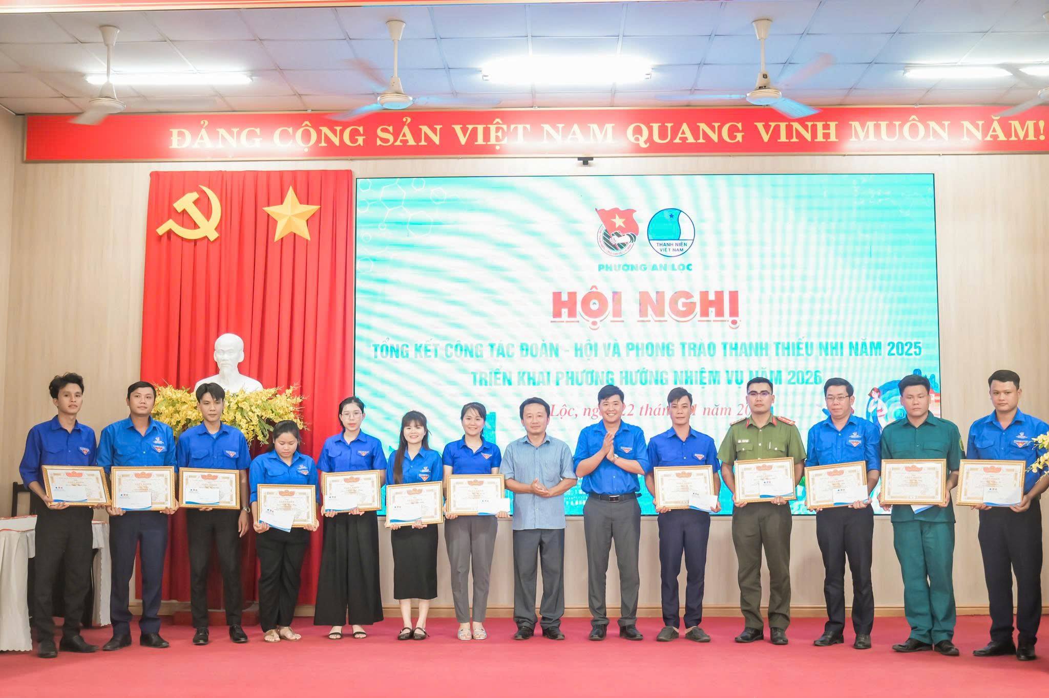 Dịp này, Đoàn phường An Lộc đã khen thưởng các tập thể đạt thành tích xuất sắc và cá nhân tiêu biểu trong công tác Đoàn và phong trào Thanh thiếu nhi; trao giải Cuộc thi Liên hoan các đội tuyên truyền măng non về phòng, chống tệ nạn bắt cóc, xâm hại trẻ em năm 2025; trao giải cá nhân Cuộc thi trực tuyến hưởng ứng Ngày Pháp luật Việt Nam năm 2025; khen thưởng các cá nhân có thành tích xuất sắc trong tham gia hoạt động tình nguyện năm 2025.