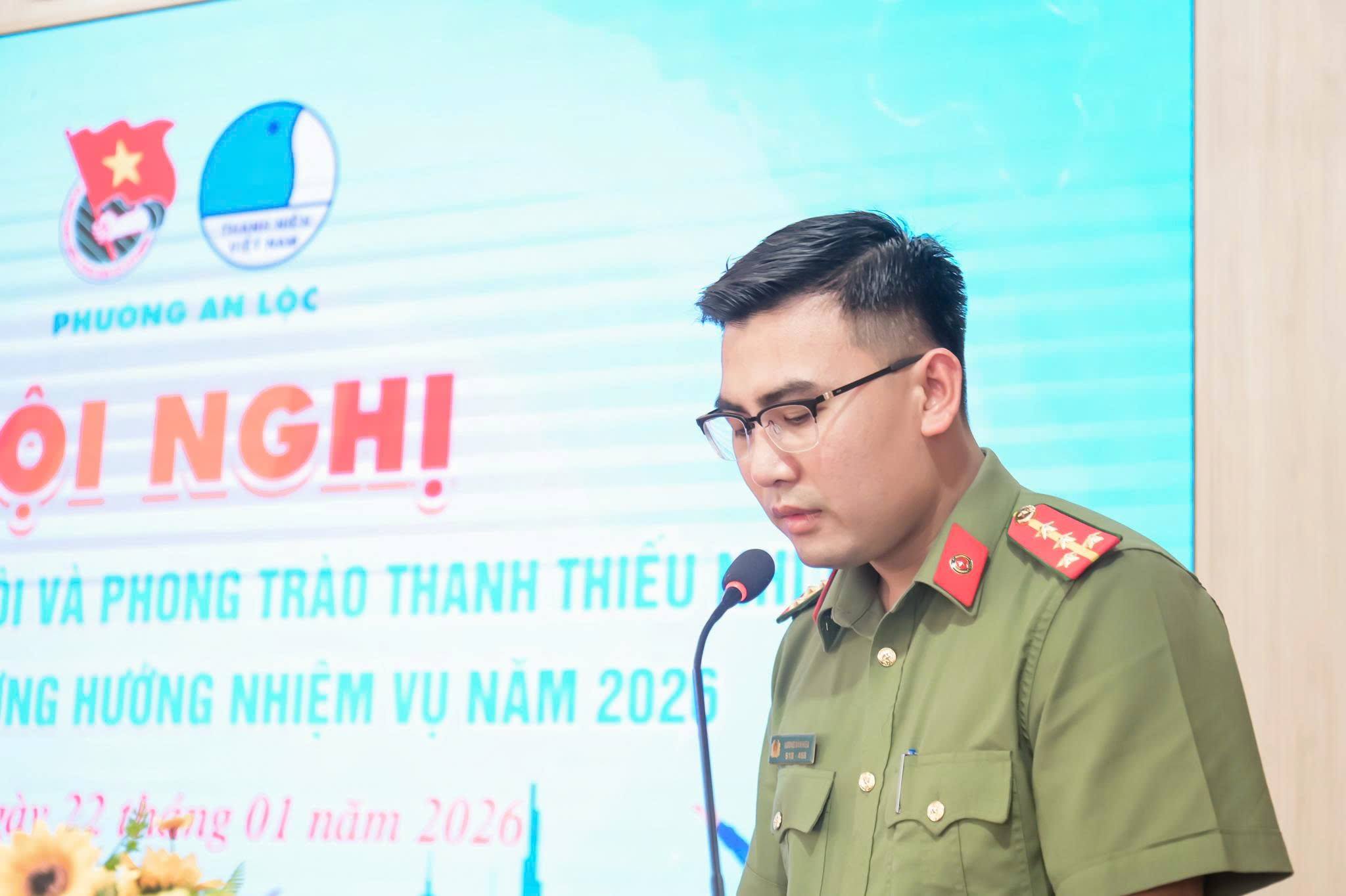 Tại hội nghị, các đại biểu đã nghe thông qua báo cáo tổng kết công tác Đoàn - Hội và phong trào thanh thiếu nhi phường An Lộc năm 2025; Chi đoàn Công an phường trình bày tham luận với chủ đề “Phát huy vai trò của thanh niên lực lượng vũ trang trong xây dựng và thực hiện các mô hình tiêu biểu tại đơn vị”.
