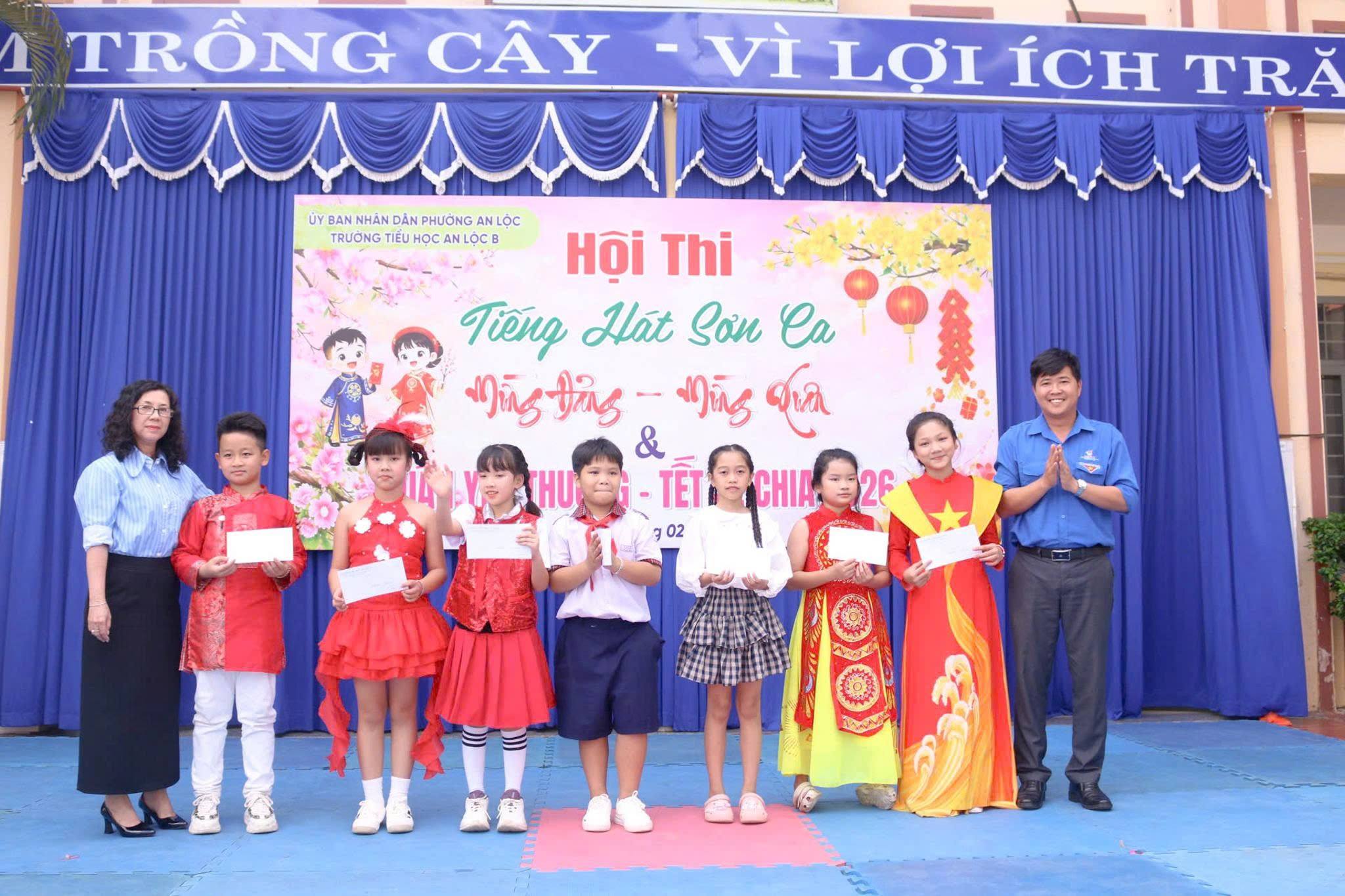 Song hành cùng hoạt động sẻ chia, Hội thi “Tiếng hát chim sơn ca” mừng Đảng – mừng Xuân đã mang đến bầu không khí tươi vui, sôi nổi. Những giai điệu trong trẻo vang lên giữa sân trường như hòa cùng nhịp xuân. Sân khấu nhỏ nhưng đầy ắp tiếng cười và sự tự tin của các em học sinh. Đây là sân chơi bổ ích, góp phần nuôi dưỡng năng khiếu, khơi dậy tình yêu nghệ thuật và quê hương đất nước.