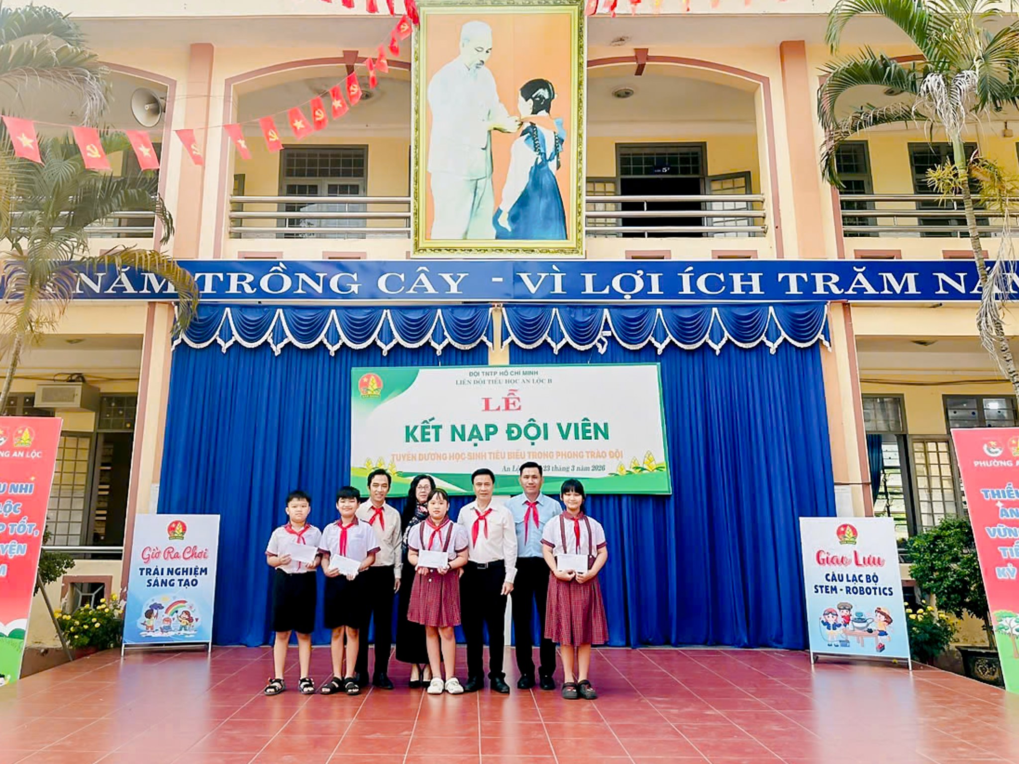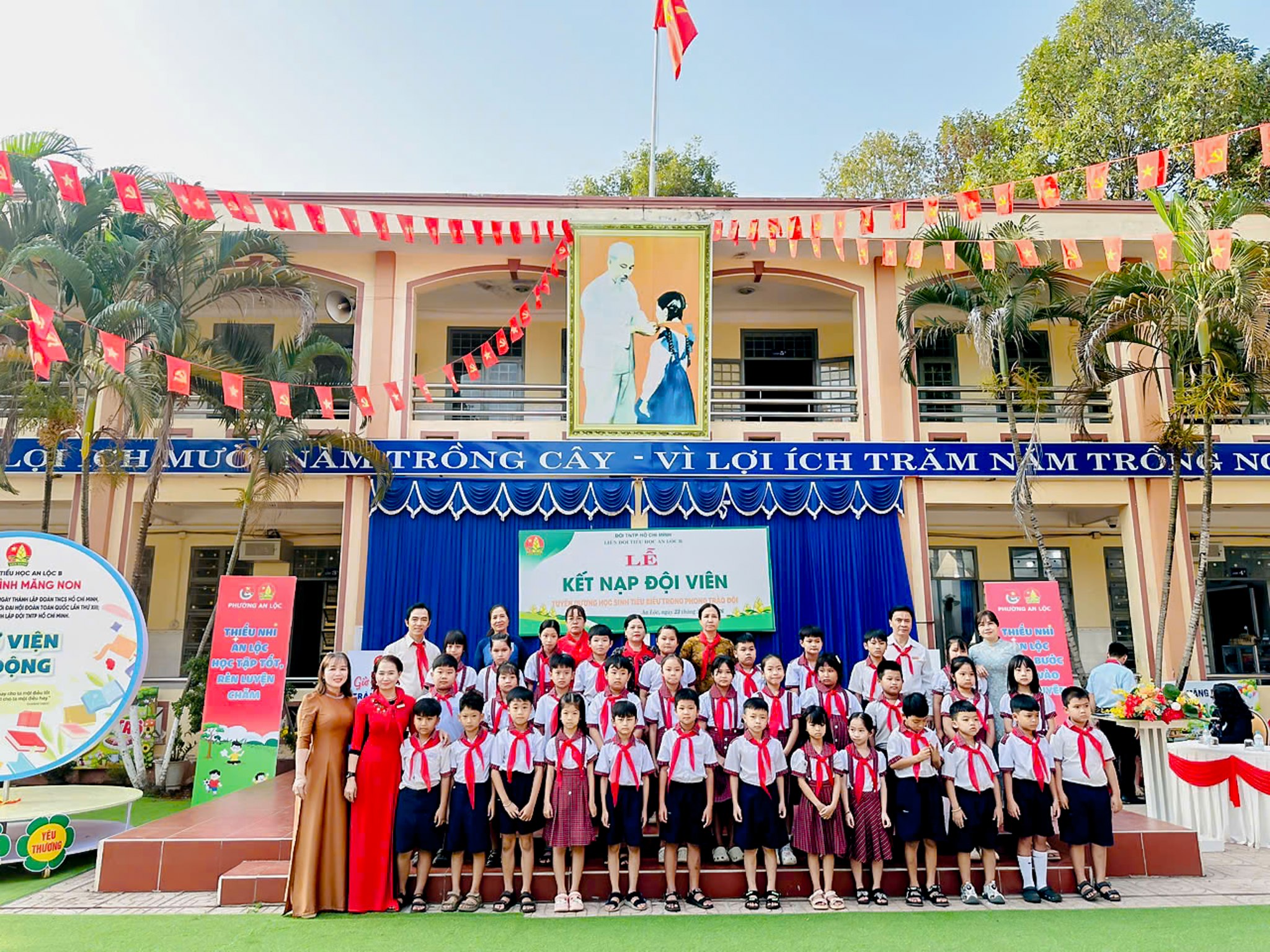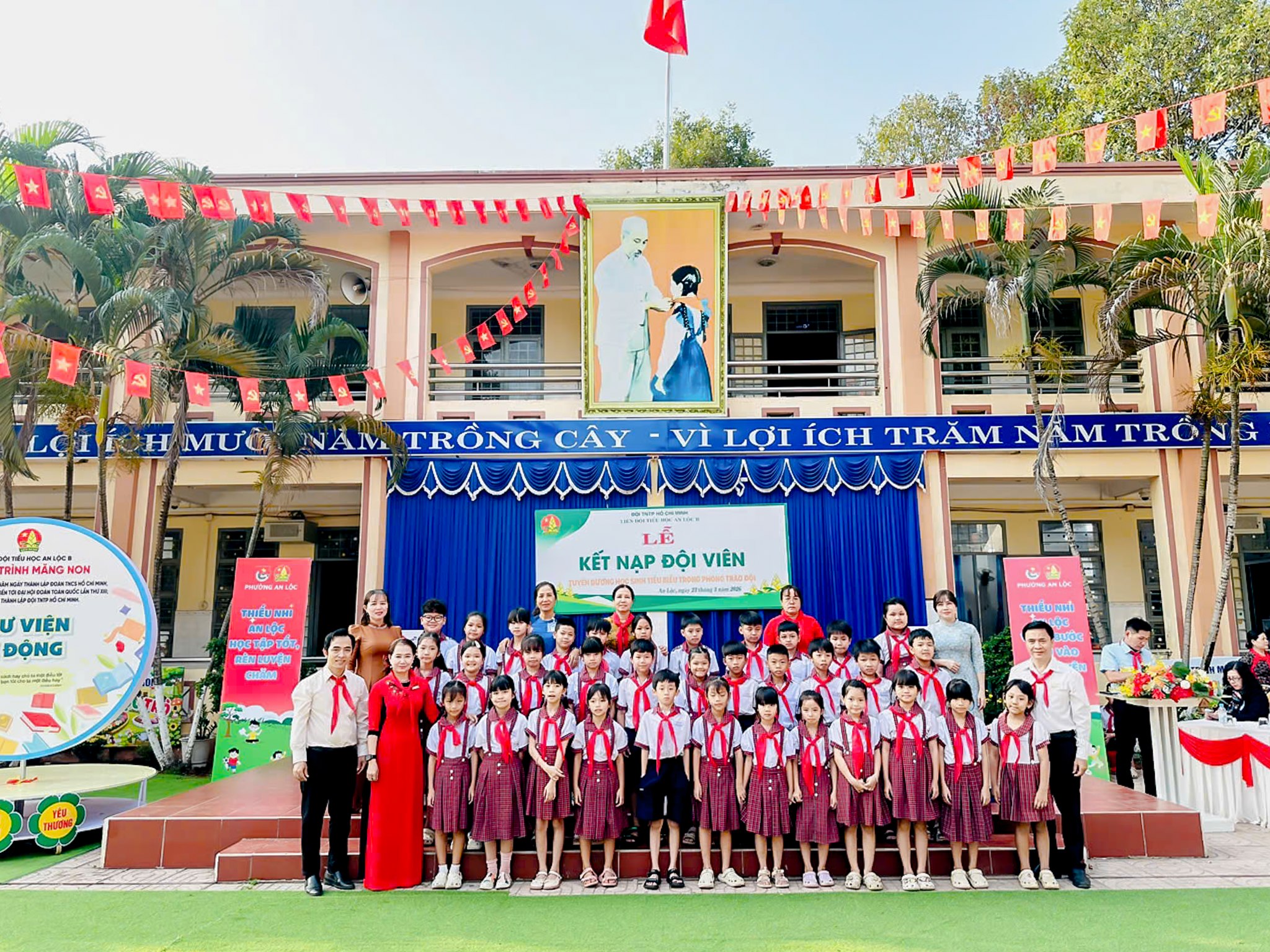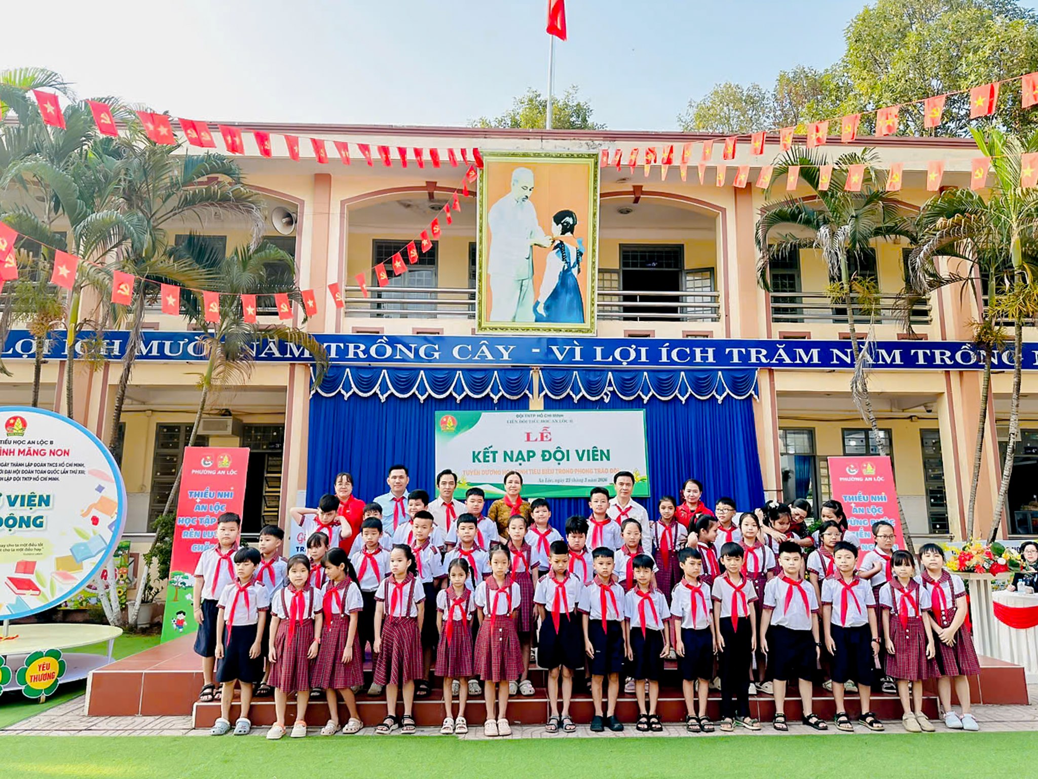 Thực hiện chương trình công tác Đội và phong trào thiếu nhi năm học 2025 - 2026; căn cứ Điều lệ Đội Thiếu niên Tiền phong Hồ Chí Minh và sự thống nhất của Chi bộ, Ban Giám hiệu nhà trường, ngày 23/3, Trường Tiểu học An Lộc B đã tổ chức Lễ kết nạp đội viên mới kết hợp tuyên dương học sinh tiêu biểu trong phong trào Đội. Tham dự buổi lễ có đồng chí Phạm Trọng Nghĩa - Đảng ủy viên, Phó Chánh Văn phòng Đảng ủy phường, Phó Chủ tịch Hội đồng Huấn luyện thanh thiếu nhi tỉnh Đồng Nai; thầy Bùi Thanh Hồng - Bí thư chi bộ, Hiệu trưởng nhà trường cùng tập thể thầy cô giáo và hơn 800 em học sinh toàn trường.