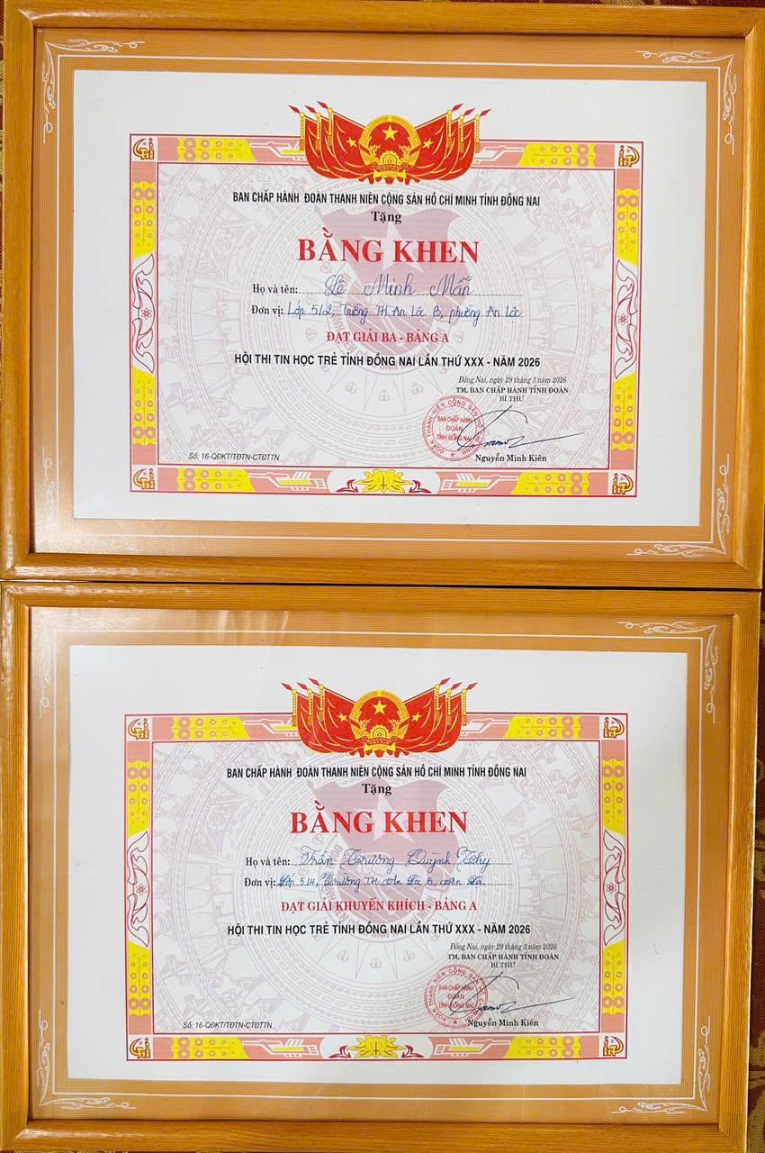 TRƯỜNG TIỂU HỌC AN LỘC B TUYÊN DƯƠNG HỌC SINH ĐẠT GIẢI TẠI HỘI THI TIN HỌC TRẺ TỈNH ĐỒNG NAI NĂM 2026