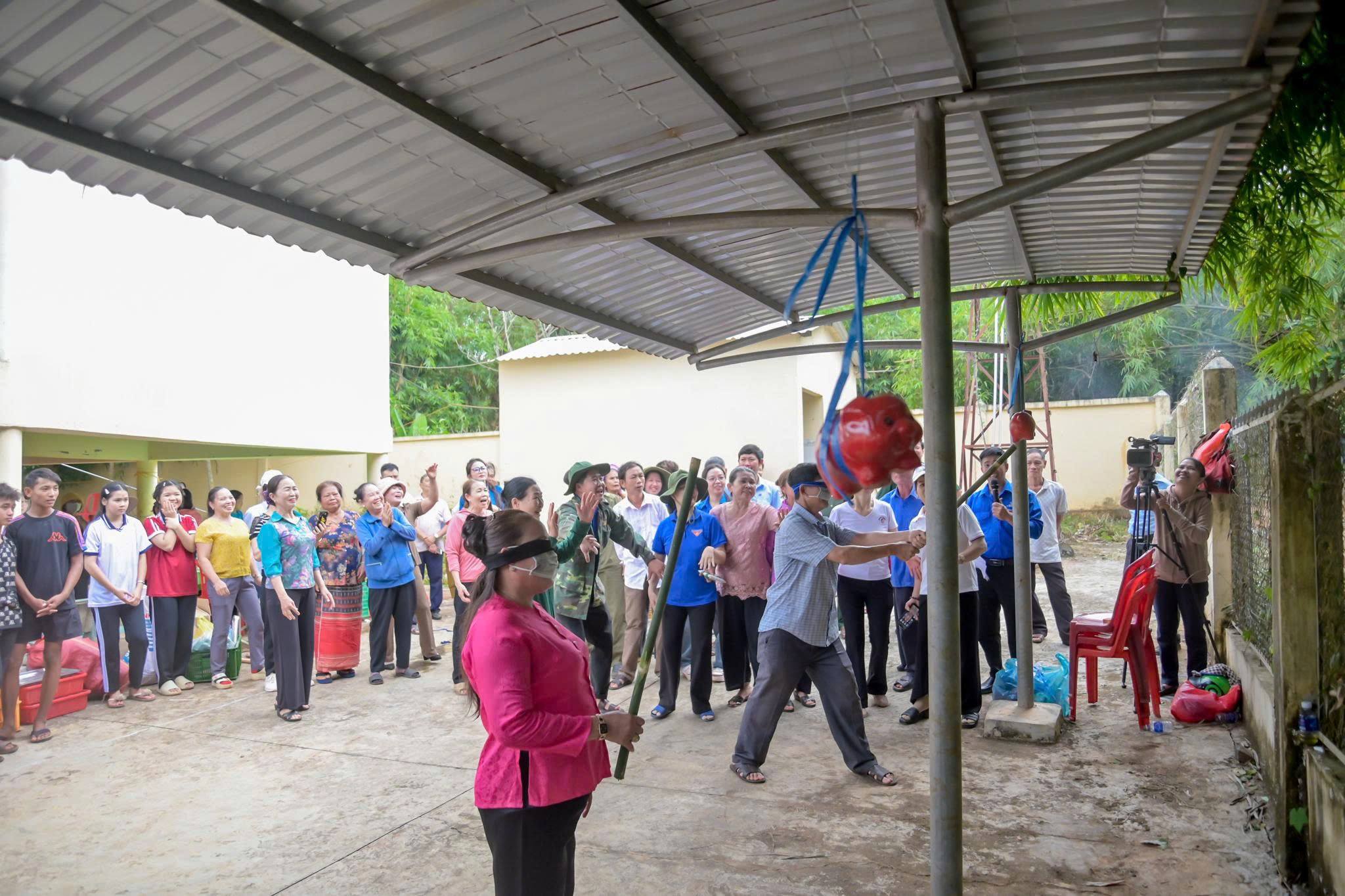 Ở một góc khác, tiếng reo vui vang lên từ các trò chơi dân gian quen thuộc như đập heo đất, ô ăn quan, tạt lon, đạp bóng. Những bước chạy hồn nhiên, những tiếng cười trong trẻo đã kéo mọi người lại gần nhau hơn. Không còn khoảng cách, không phân biệt tuổi tác hay vai trò, chỉ còn lại niềm vui mộc mạc của ngày Tết quê nhà.