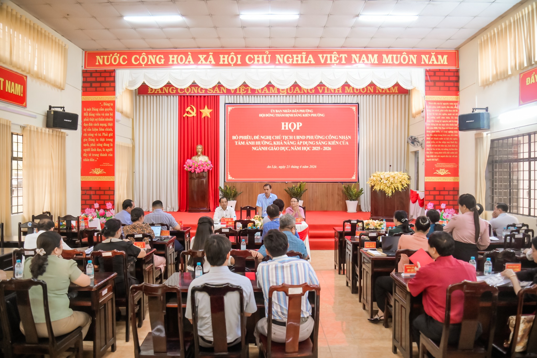 Ngày 21/4, UBND phường An Lộc tổ chức họp Hội đồng thẩm định sáng kiến, tiến hành bỏ phiếu đề nghị Chủ tịch UBND phường công nhận tầm ảnh hưởng, khả năng áp dụng sáng kiến của ngành giáo dục năm học 2025 – 2026. Chủ trì cuộc họp có đồng chí Nguyễn Xuân Quang - Ủy viên Ban Thường vụ Đảng ủy, Phó Chủ tịch UBND phường; cùng dự có đồng chí Nguyễn Thế Hòa - Ủy viên Ban Thường vụ Đảng ủy, Chủ nhiệm Ủy ban Kiểm tra; đồng chí Điểu Hải - Ủy viên Ban Thường vụ Đảng ủy, Chủ tịch Ủy ban MTTQ Việt Nam phường và các thành viên Hội đồng.
