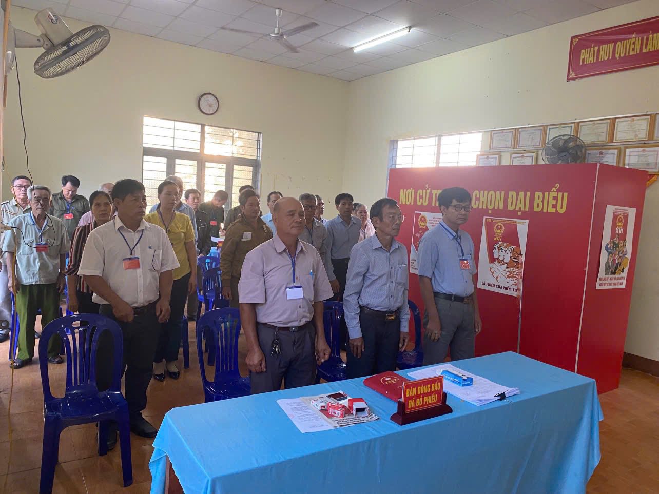 <div style="text-align: justify;"><span style="font-size:11pt"><span style="background:white"><span style="line-height:normal"><span style="font-family:Calibri,sans-serif"><span style="font-size:14.0pt"><span style="font-family:&#039;Times New Roman&#039;,serif"><span style="color:rgb(8, 8, 9);">Ngay từ sáng sớm, đông đảo cử tri đã có mặt tại các điểm bỏ phiếu với tinh thần phấn khởi, thực hiện quyền và nghĩa vụ công dân. Công tác trang trí, tuyên truyền, niêm yết danh sách cử tri và danh sách người ứng cử được chuẩn bị chu đáo, đảm bảo đúng quy định của pháp luật.</span></span></span></span></span></span></span><br />