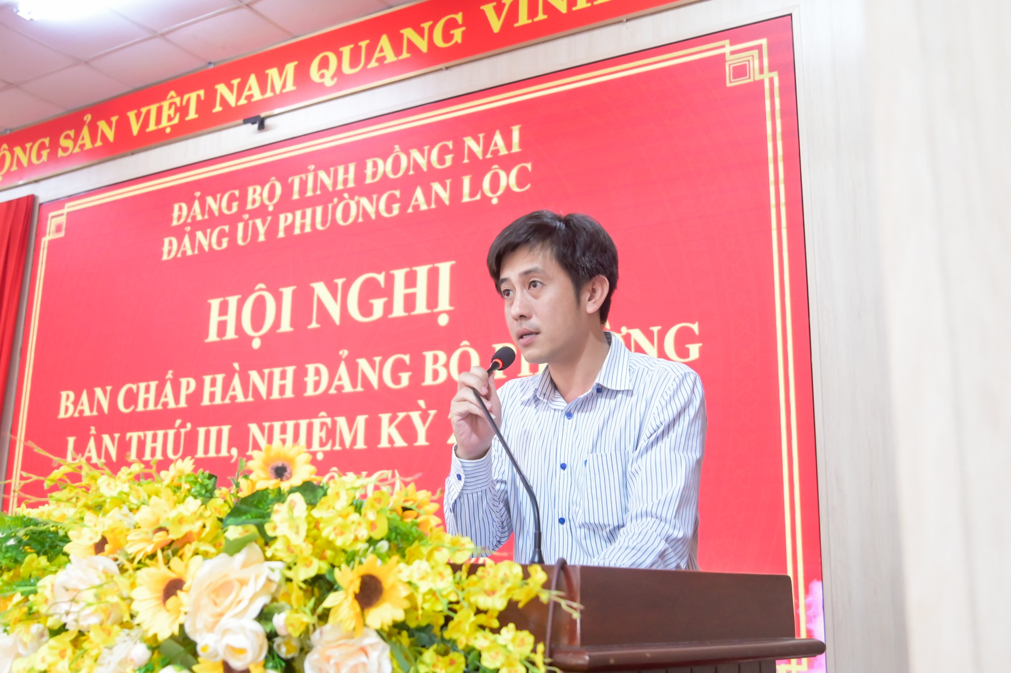 <div style="text-align: justify;"><span style="font-size:11pt"><span style="background:white"><span style="line-height:normal"><span style="font-family:Calibri,sans-serif"><span style="font-size:14.0pt"><span style="font-family:&#039;Times New Roman&#039;,serif"><span style="color:rgb(8, 8, 9);">Tham dự hội nghị có đồng chí Đỗ Văn Mạnh - Tỉnh ủy viên, Phó Trưởng Ban Nội chính Tỉnh ủy; đồng chí Lê Việt Hùng - Tỉnh ủy viên, Phó Chủ nhiệm Ủy ban Kiểm tra Tỉnh ủy. Về phía phường An Lộc có đồng chí Đỗ Minh Trung - Bí thư Đảng ủy, Chủ tịch HĐND phường; đồng chí Lê Thị Hồng Phấn - Phó Bí thư Thường trực Đảng ủy phường; đồng chí Trần Thanh Long - Phó Bí thư Đảng ủy, Chủ tịch UBND phường cùng các đồng chí trong Ban Thường vụ, Ban Chấp hành Đảng bộ phường và bí thư các chi bộ khu phố.</span></span></span></span></span></span></span><br />