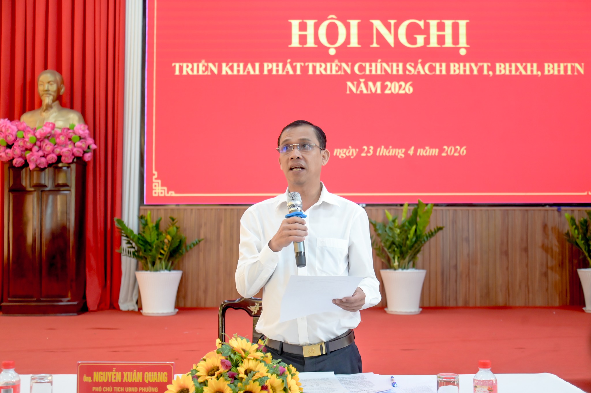 Ngày 23/4, UBND phường An Lộc tổ chức Hội nghị triển khai phát triển chính sách bảo hiểm xã hội (BHXH), bảo hiểm y tế (BHYT), bảo hiểm thất nghiệp (BHTN) năm 2026. Hội nghị do đồng chí Nguyễn Xuân Quang - Ủy viên Ban Thường vụ Đảng ủy, Phó Chủ tịch UBND phường chủ trì, cùng sự tham dự của lãnh đạo các ban, ngành, đoàn thể; đại diện BHXH cơ sở Tân Khai, Bưu điện Bình Long và các khu phố.