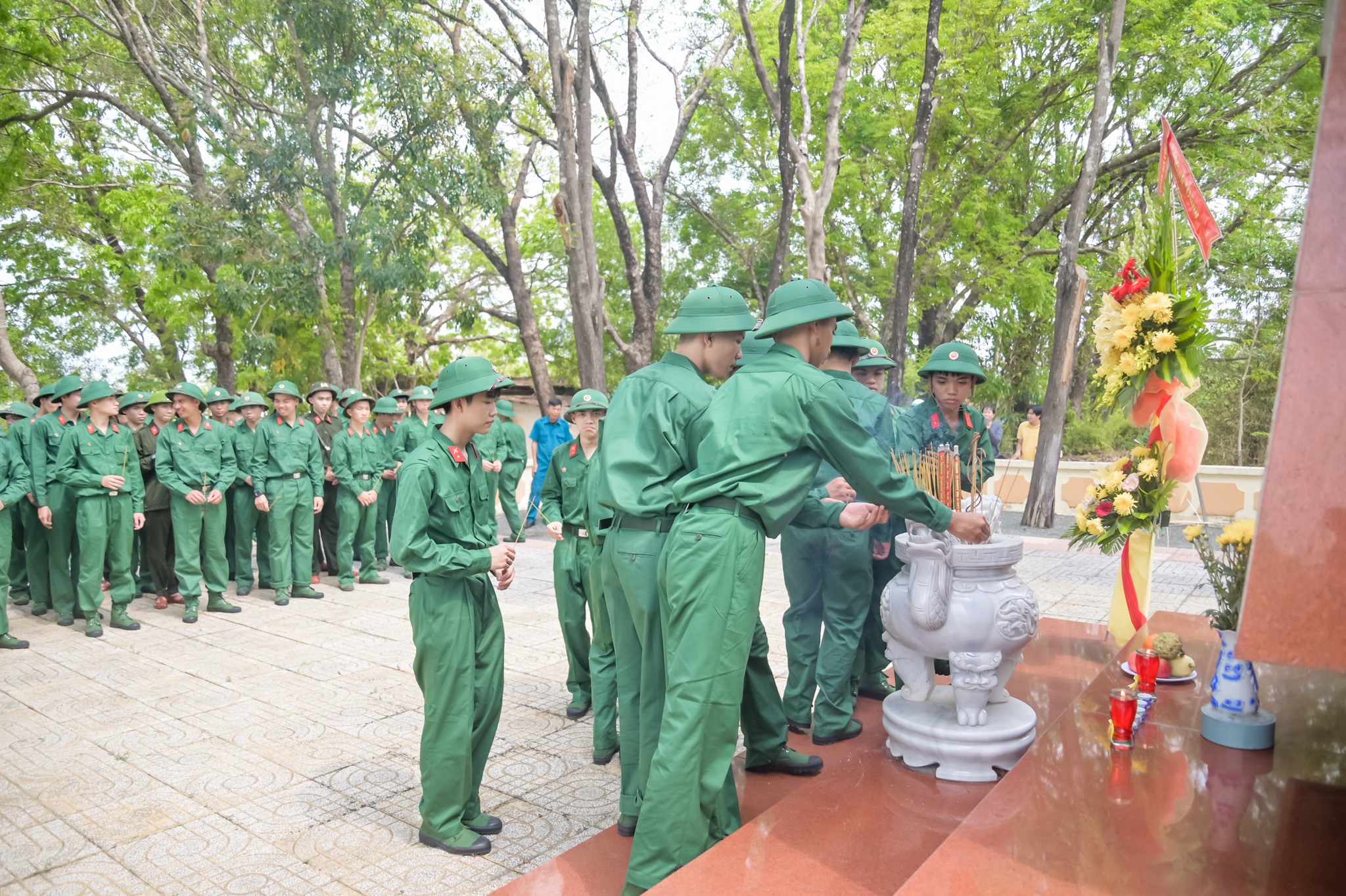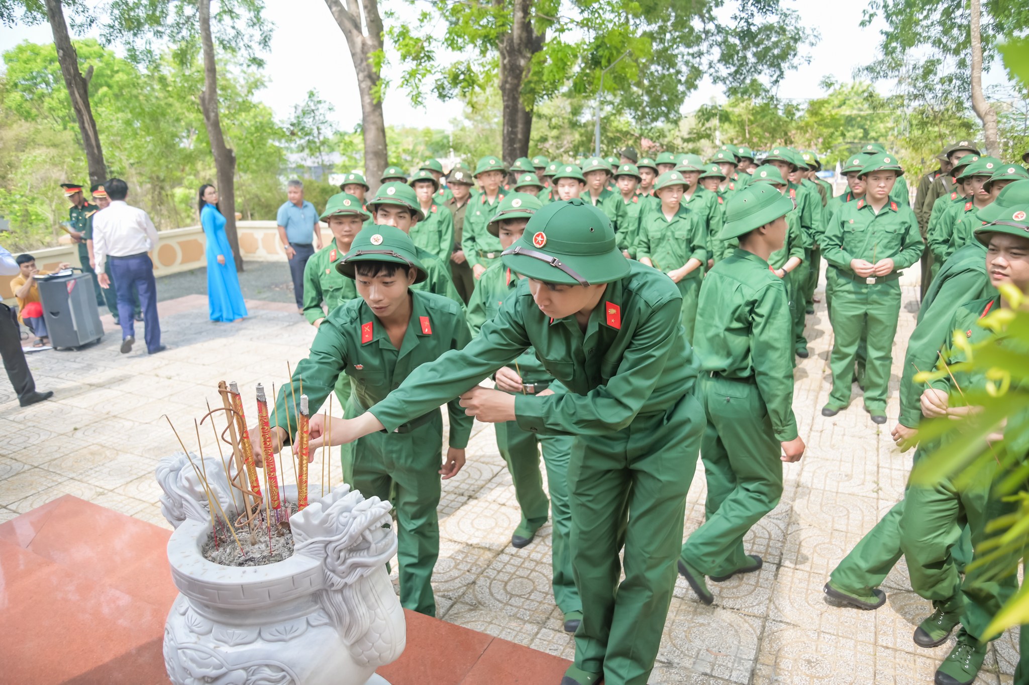 <div style="text-align: justify;"><span style="font-size:11pt"><span style="background:white"><span style="line-height:normal"><span style="font-family:Calibri,sans-serif"><span style="font-size:14.0pt"><span style="font-family:&#039;Times New Roman&#039;,serif"><span style="color:rgb(8, 8, 9);">Trước giờ khai mạc, các đồng chí lãnh đạo phường, đoàn viên thanh niên và các tân binh đã tổ chức viếng Đài tưởng niệm các anh hùng liệt sĩ, dâng hương bày tỏ lòng biết ơn sâu sắc đối với các thế hệ đi trước đã hy sinh vì sự nghiệp đấu tranh giải phóng dân tộc và bảo vệ Tổ quốc.</span></span></span></span></span></span></span><br />