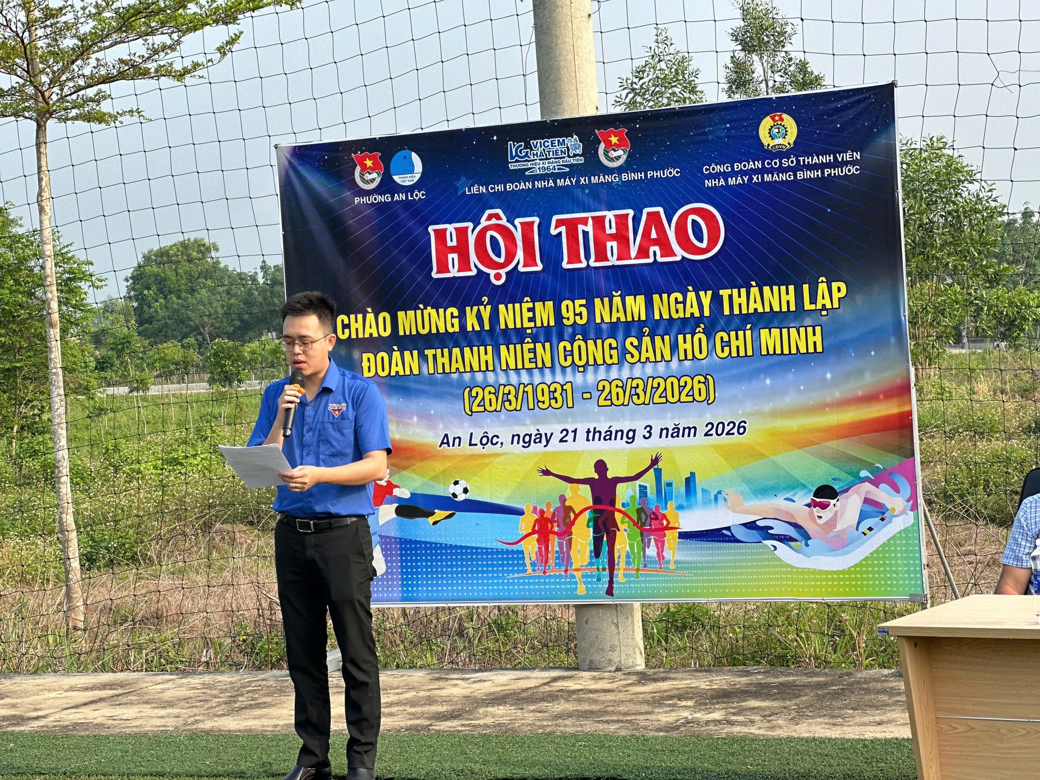 Hòa trong không khí thi đua sôi nổi của tuổi trẻ, Công đoàn cơ sở thành viên Nhà máy Xi măng Bình Phước, Liên Chi đoàn Nhà máy phối hợp với Đoàn phường An Lộc đã tổ chức thành công Hội thao chào mừng kỷ niệm 95 năm Ngày thành lập Đoàn TNCS Hồ Chí Minh (26/3/1931 – 26/3/2026).