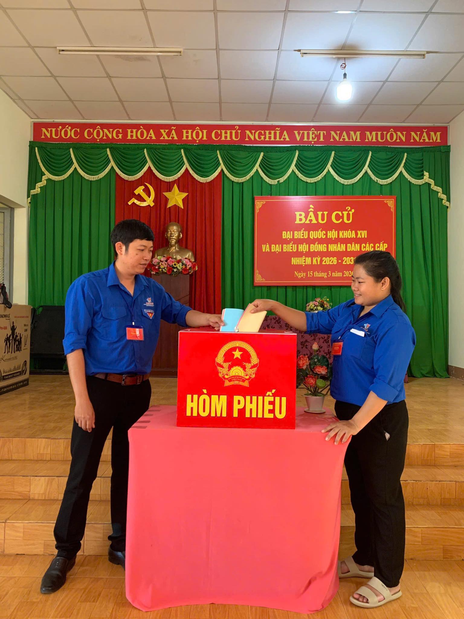 <span style="font-size:11pt"><span style="background:white"><span style="line-height:normal"><span style="font-family:Calibri,sans-serif"><span style="font-size:14.0pt"><span style="font-family:&#039;Times New Roman&#039;,serif"><span style="color:rgb(8, 8, 9);">Ngay từ sáng sớm ngày 15/3, lực lượng đoàn viên, thanh niên đã có mặt tại nhiều điểm bầu cử để hỗ trợ công tác hướng dẫn cử tri, sắp xếp khu vực bỏ phiếu, đồng thời giúp đỡ người cao tuổi và những cử tri cần hỗ trợ trong quá trình tham gia bầu cử. Tinh thần xung kích, trách nhiệm của tuổi trẻ đã góp phần giúp công tác tổ chức tại các điểm bỏ phiếu diễn ra thuận lợi, trật tự.</span></span></span></span></span></span></span><br />